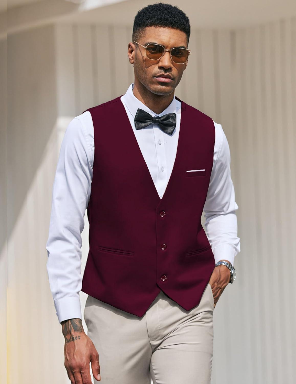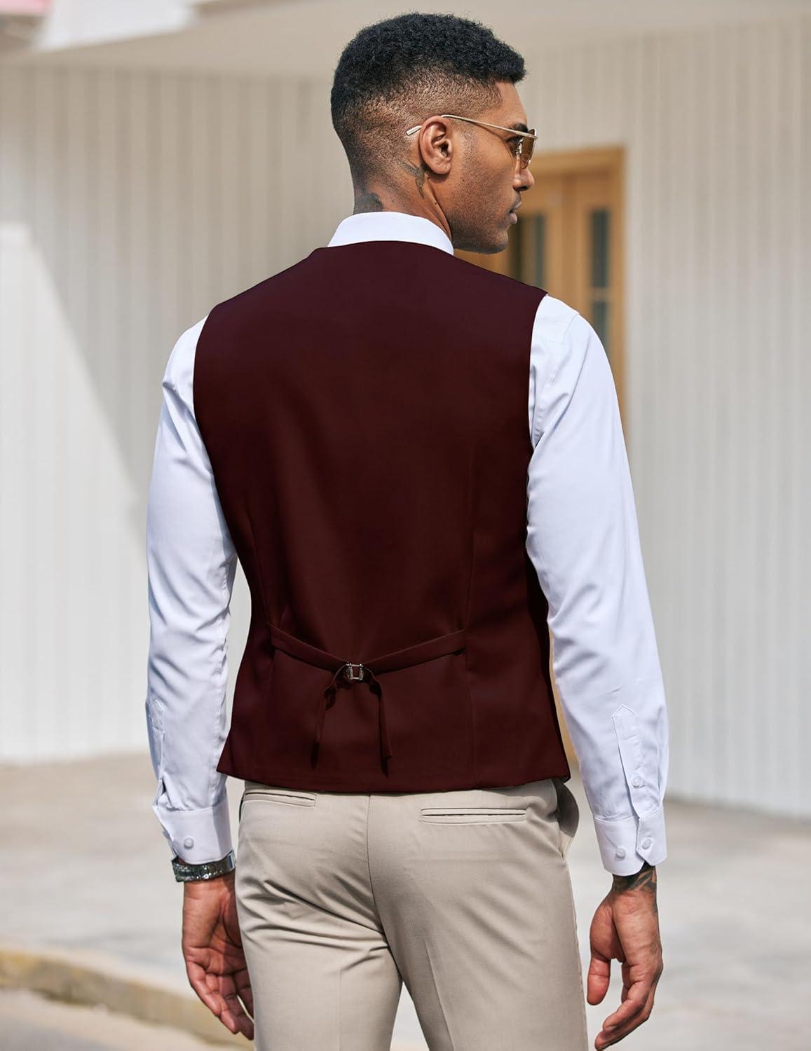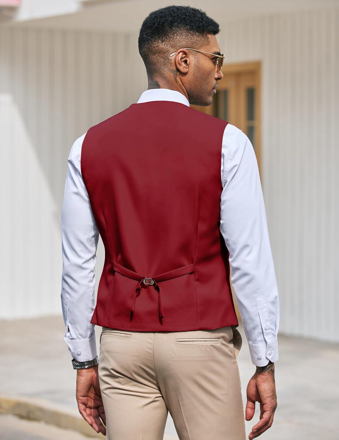 COOFANDY Men’s Suit Vest Slim Fit Formal Dress Waistcoat Casual Business Vests for Suit or Tuxedo(Burgundy)