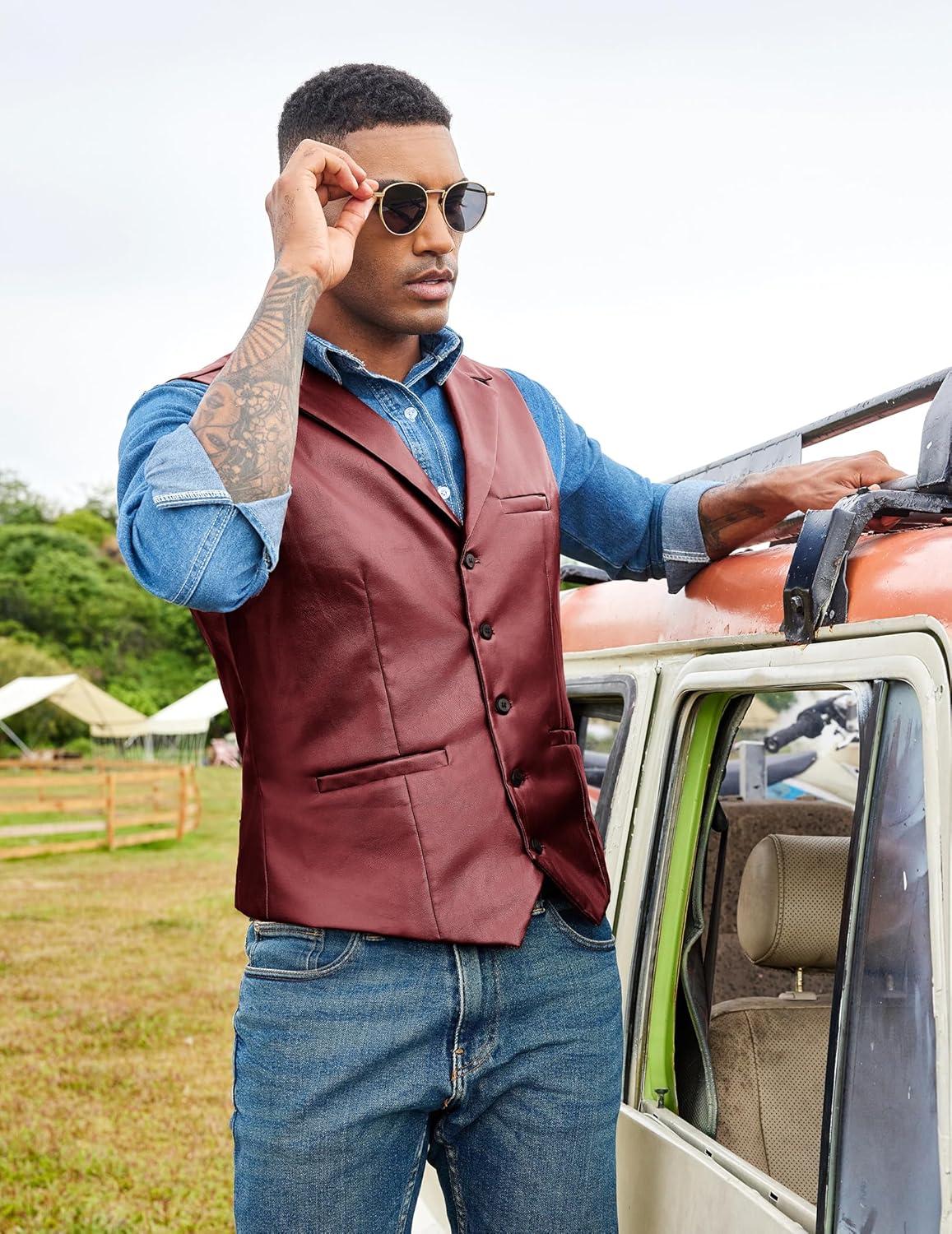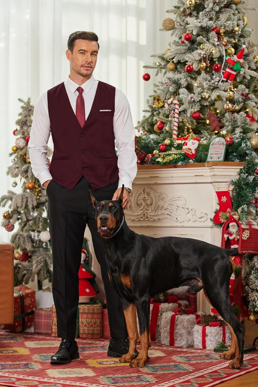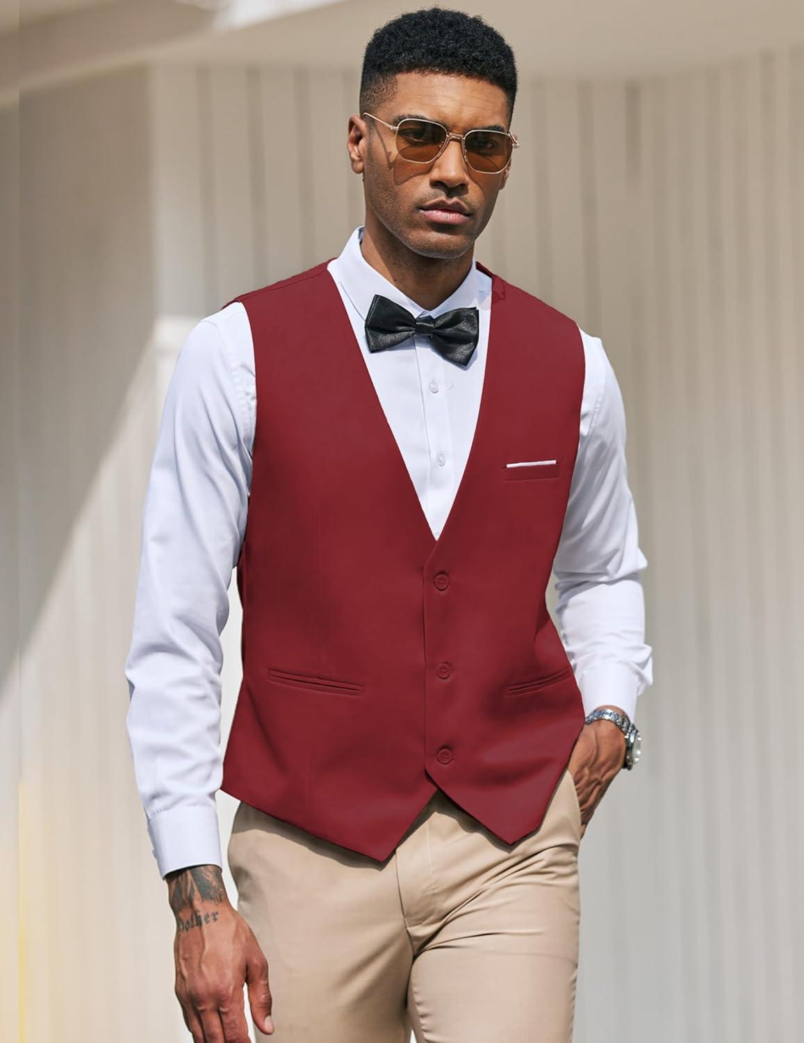 COOFANDY Men’s Suit Vest Slim Fit Formal Dress Waistcoat Casual Business Vests for Suit or Tuxedo(Burgundy)