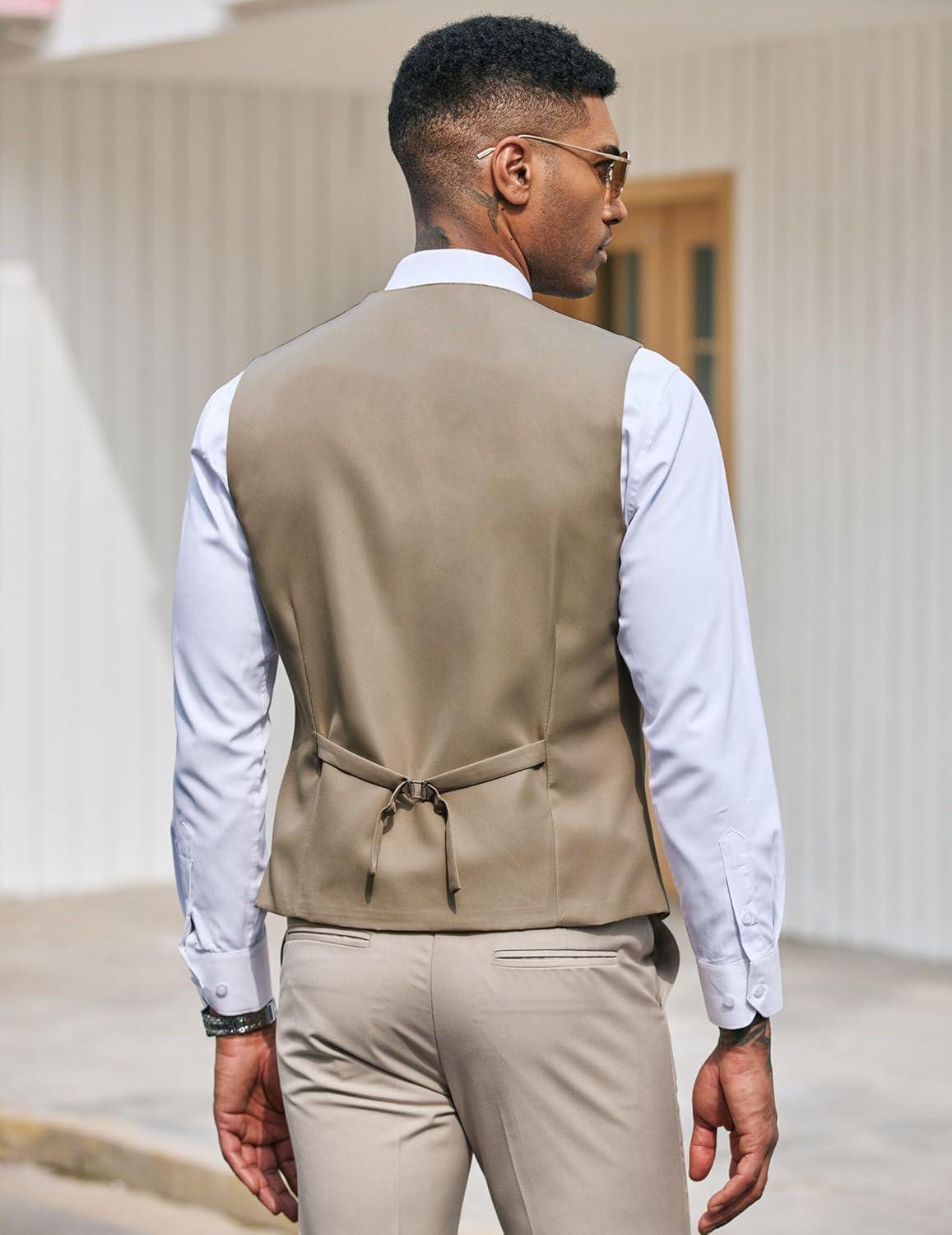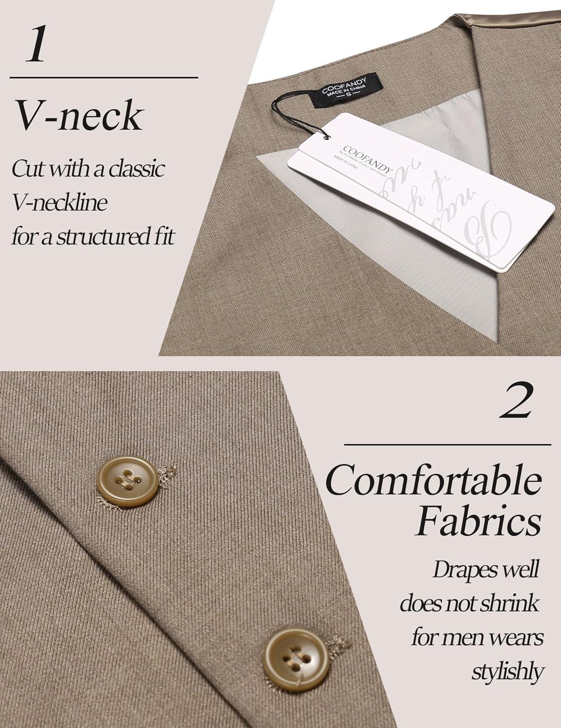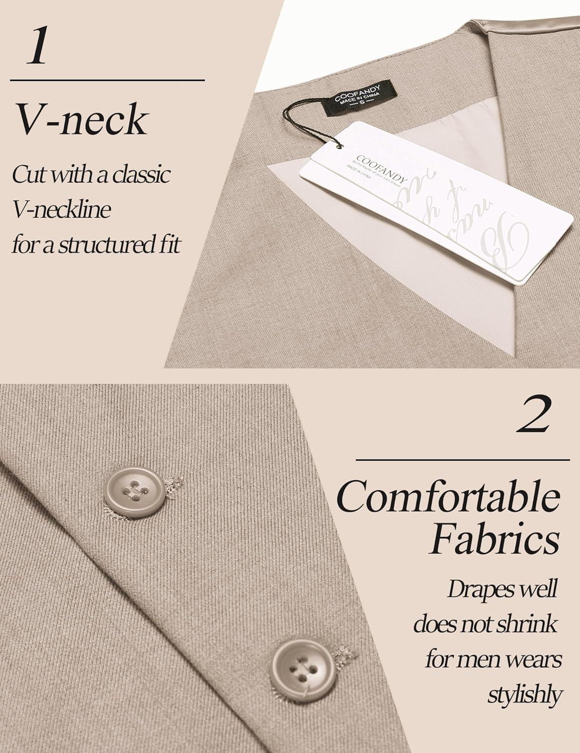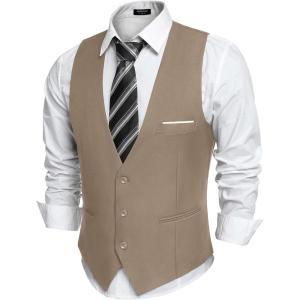 COOFANDY Men’s Suit Vest Slim Fit Formal Dress Waistcoat Casual Business Vests for Suit or Tuxedo(Khaki)