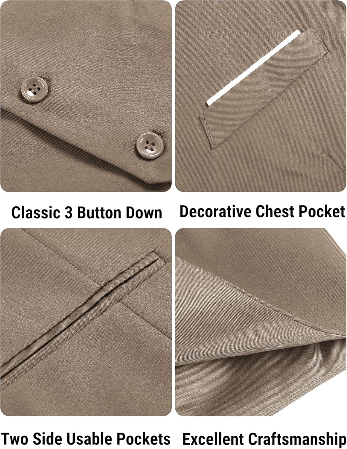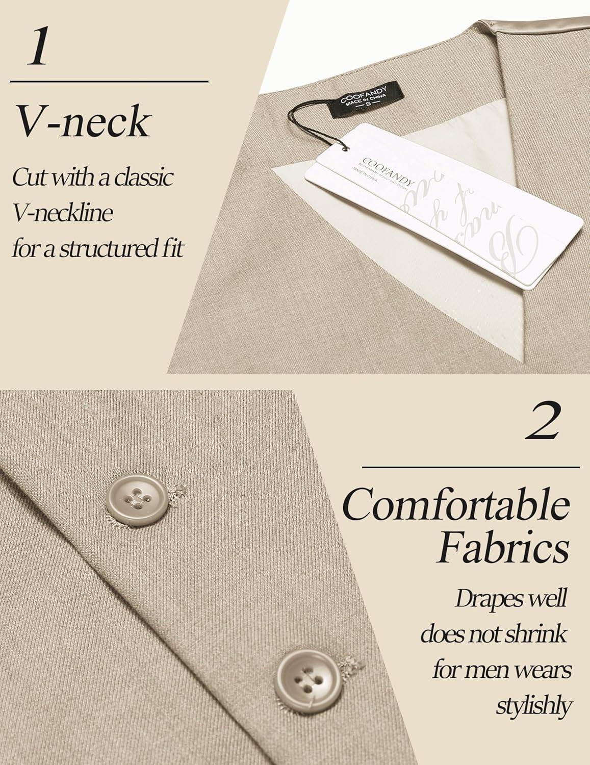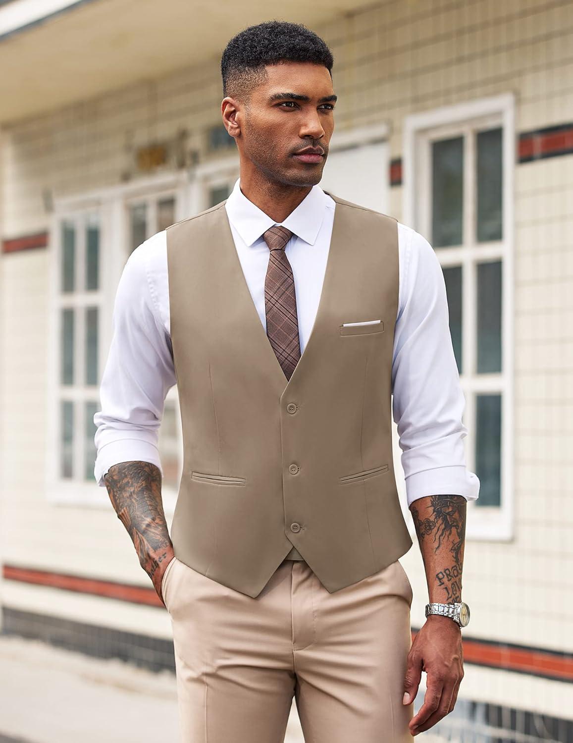 COOFANDY Men’s Suit Vest Slim Fit Formal Dress Waistcoat Casual Business Vests for Suit or Tuxedo(Khaki)