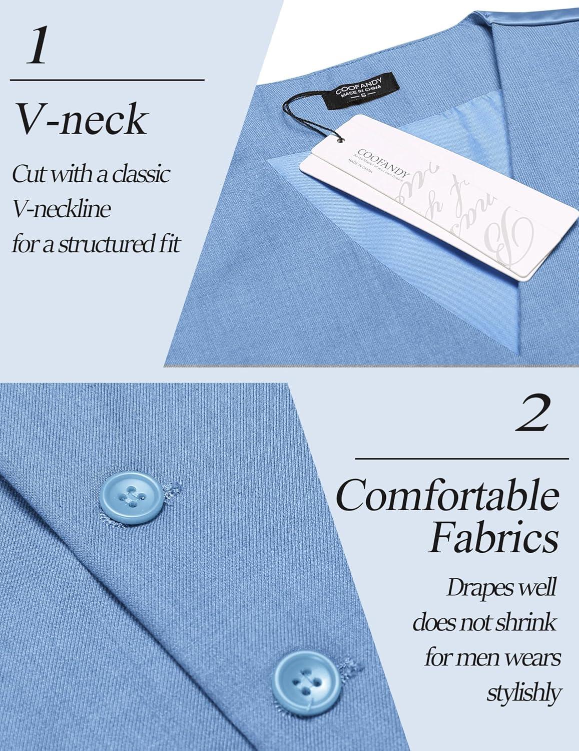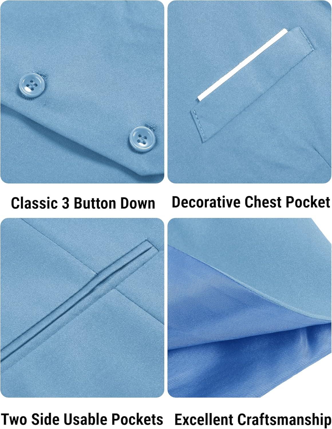 COOFANDY Men’s Suit Vest Slim Fit Formal Dress Waistcoat Casual Business Vests for Suit or Tuxedo(Clear Blue)