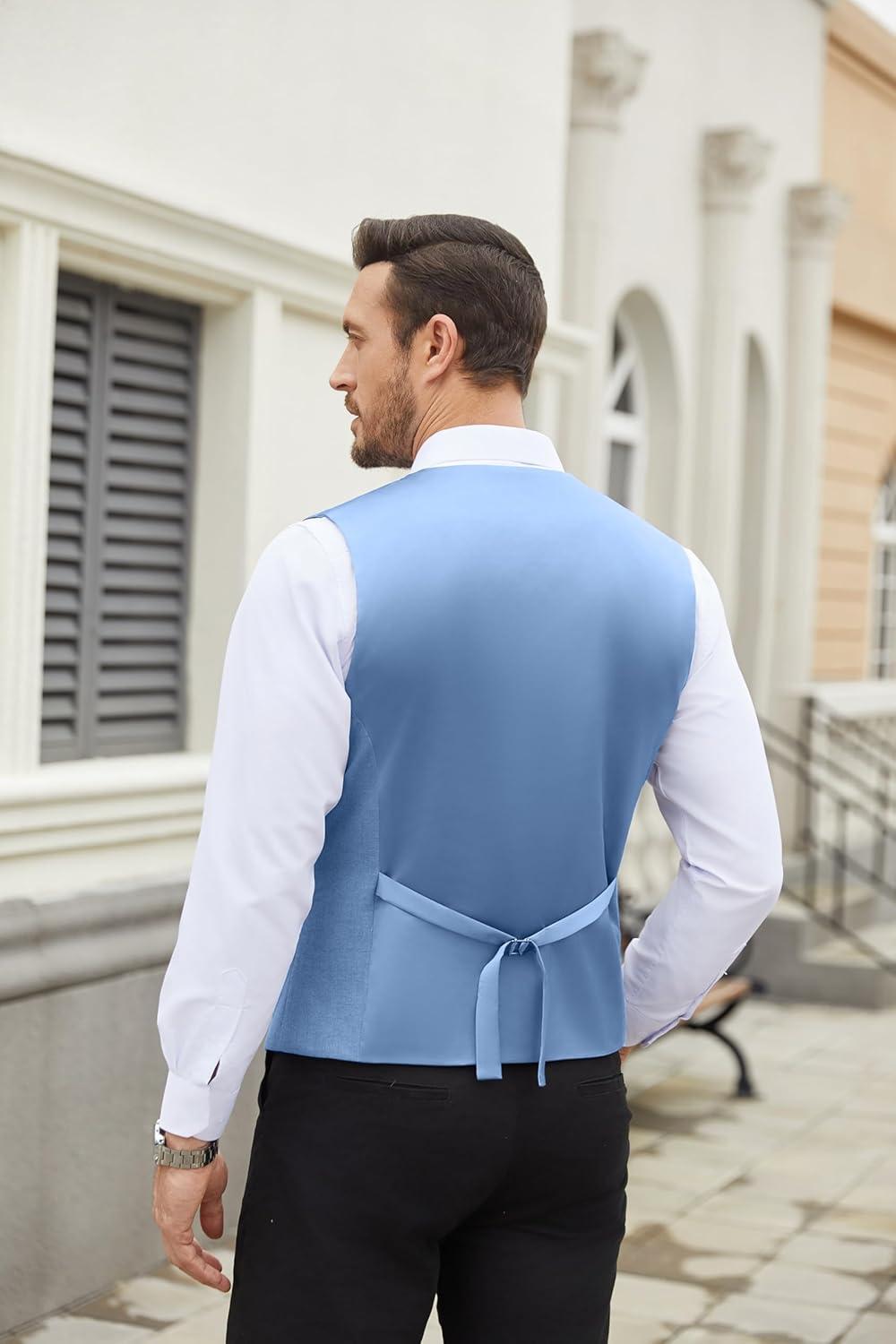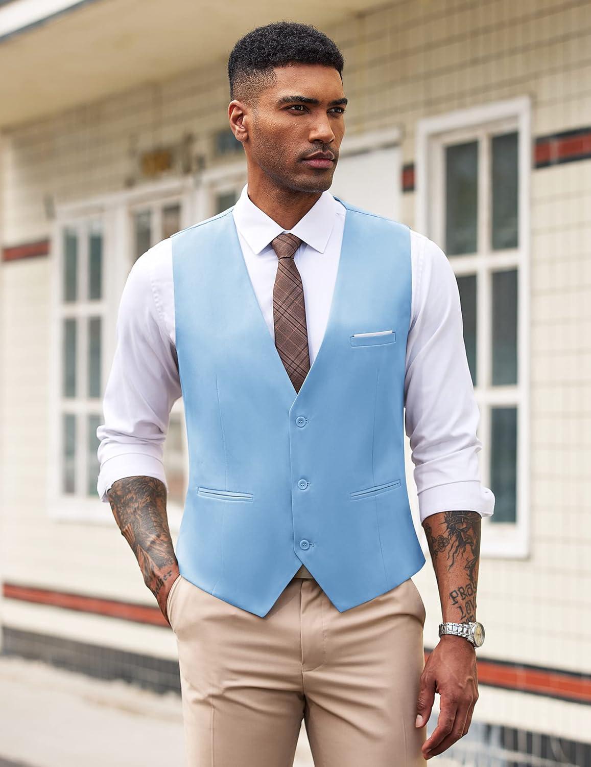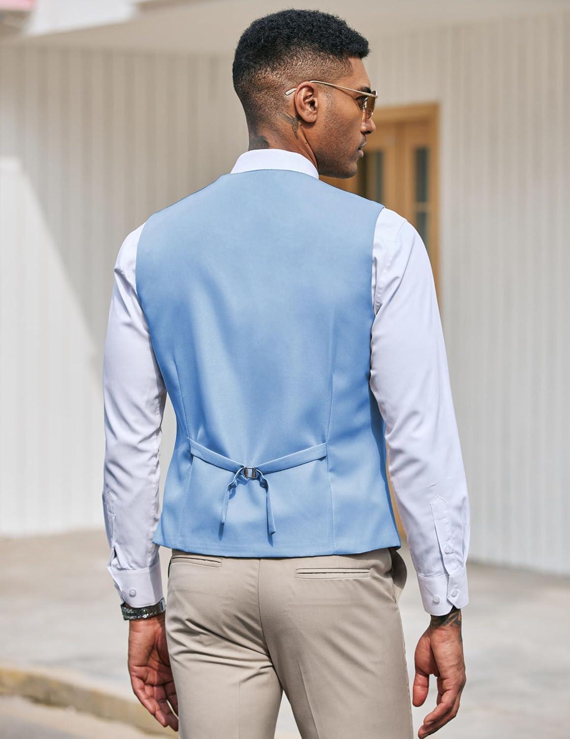 COOFANDY Men’s Suit Vest Slim Fit Formal Dress Waistcoat Casual Business Vests for Suit or Tuxedo(Light Blue)