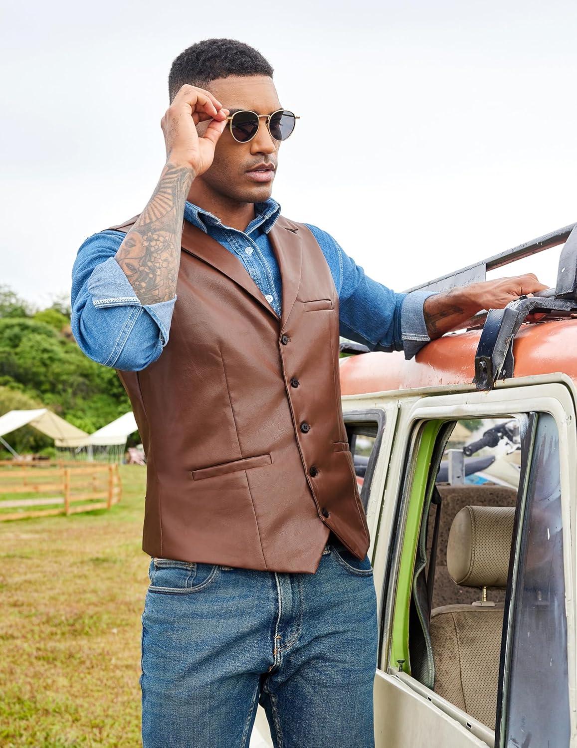 COOFANDY Men’s Suit Vest Slim Fit Formal Dress Waistcoat Casual Business Vests for Suit or Tuxedo(Brown)