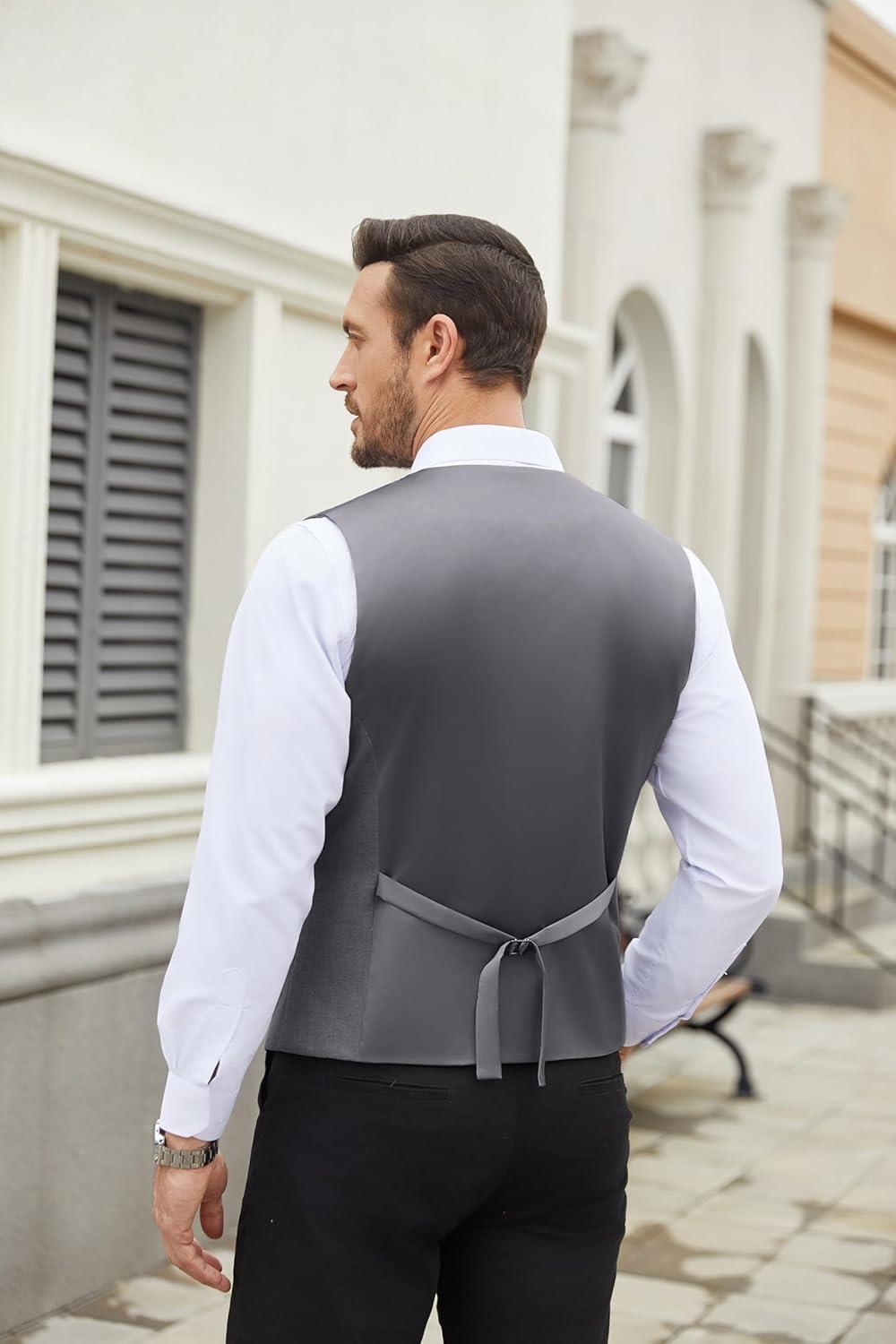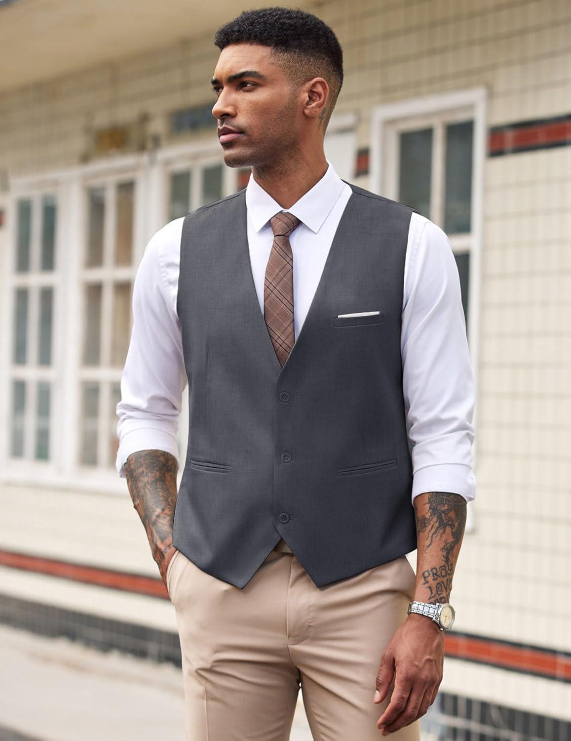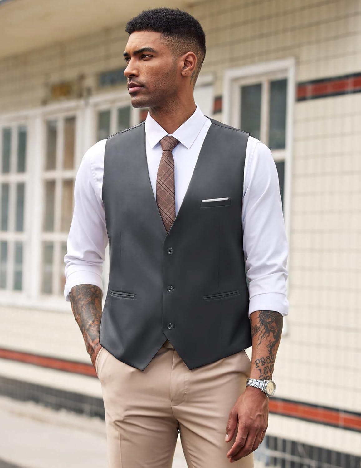 COOFANDY Men’s Suit Vest Slim Fit Formal Dress Waistcoat Casual Business Vests for Suit or Tuxedo(Dark Heather Gray)