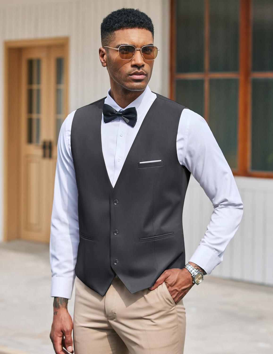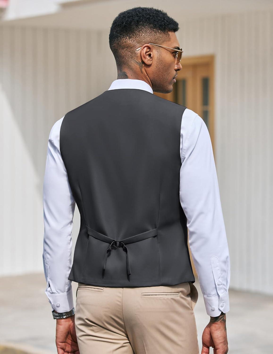 COOFANDY Men’s Suit Vest Slim Fit Formal Dress Waistcoat Casual Business Vests for Suit or Tuxedo(Dark Grey)