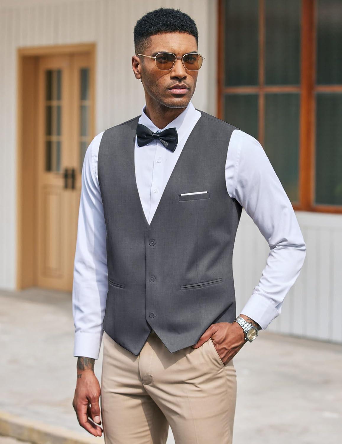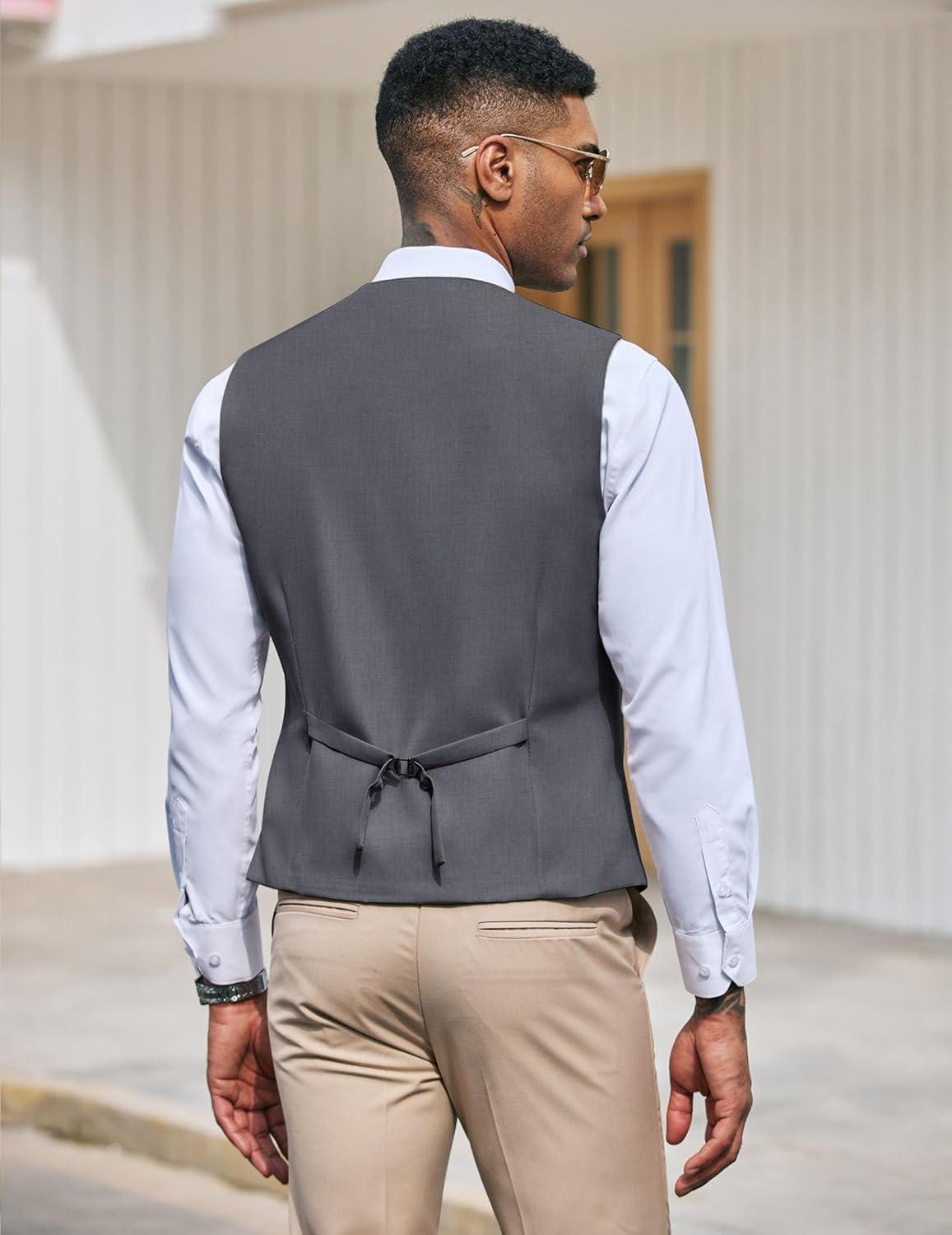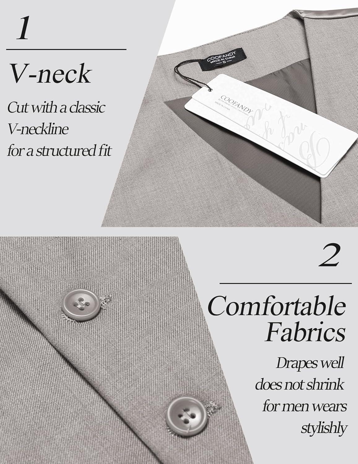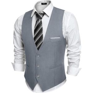 COOFANDY Men’s Suit Vest Slim Fit Formal Dress Waistcoat Casual Business Vests for Suit or Tuxedo(Gray)