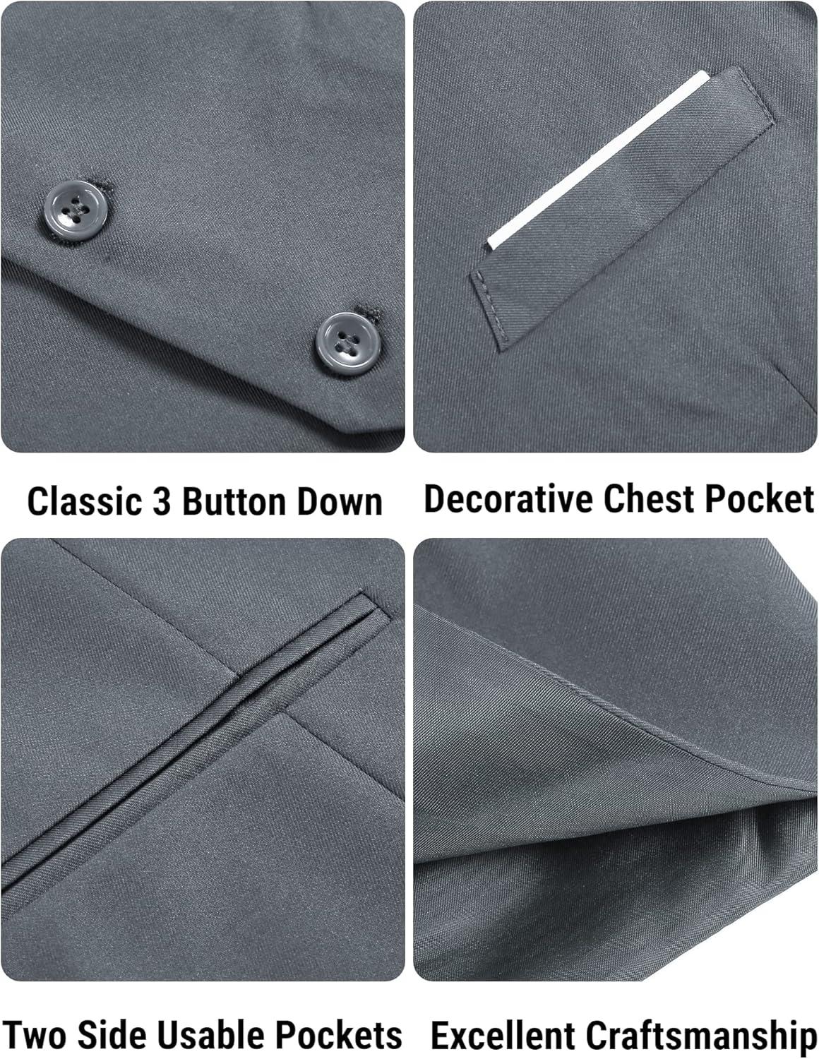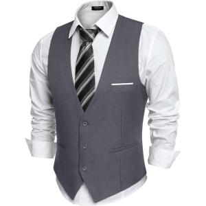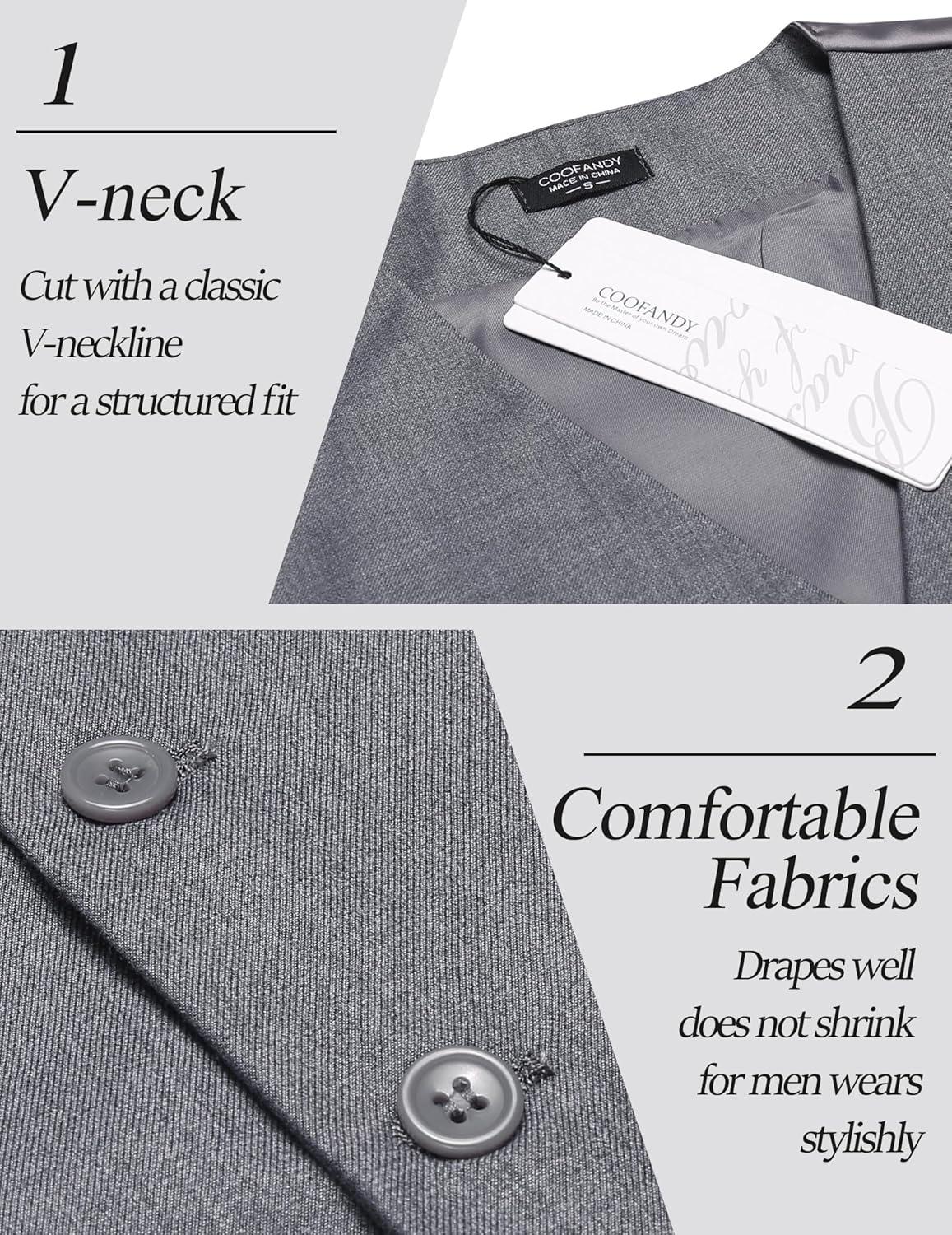 COOFANDY Men’s Suit Vest Slim Fit Formal Dress Waistcoat Casual Business Vests for Suit or Tuxedo(Grey)