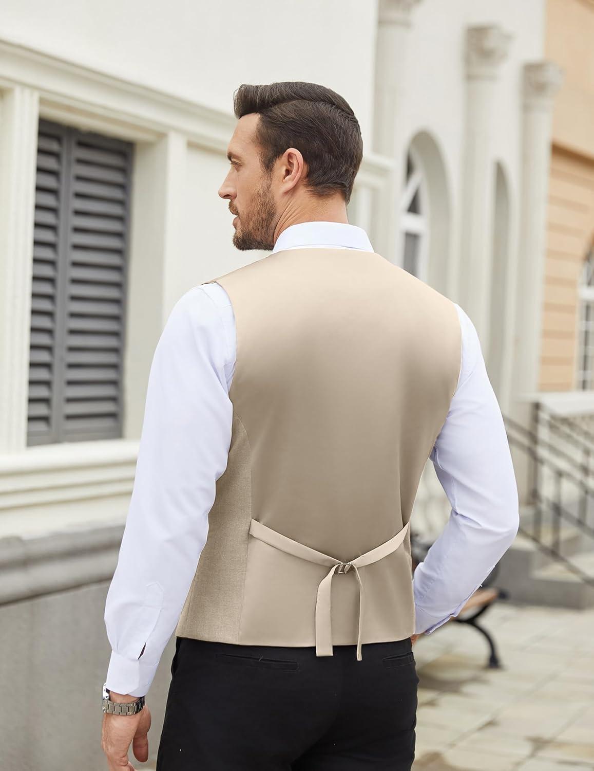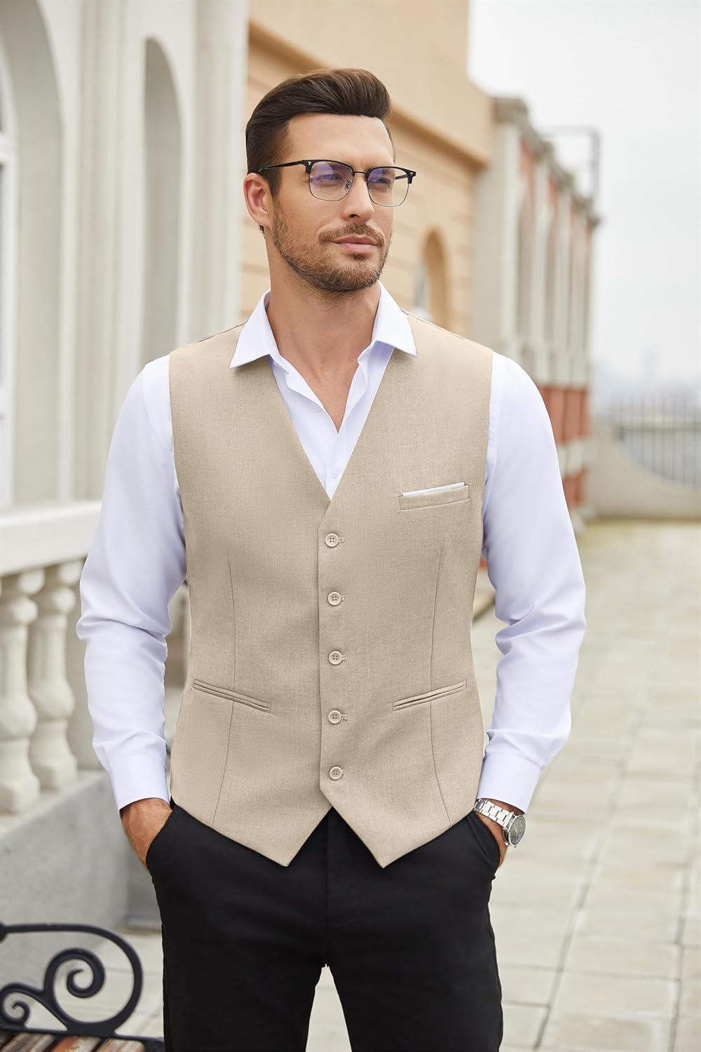 COOFANDY Men’s Suit Vest Slim Fit Formal Dress Waistcoat Casual Business Vests for Suit or Tuxedo(Light Khaki)