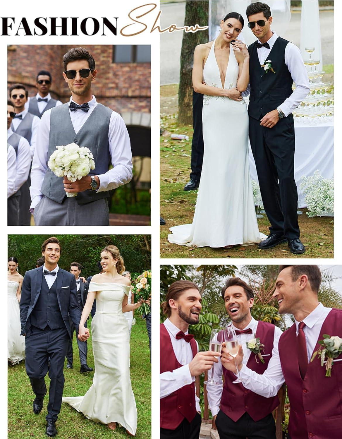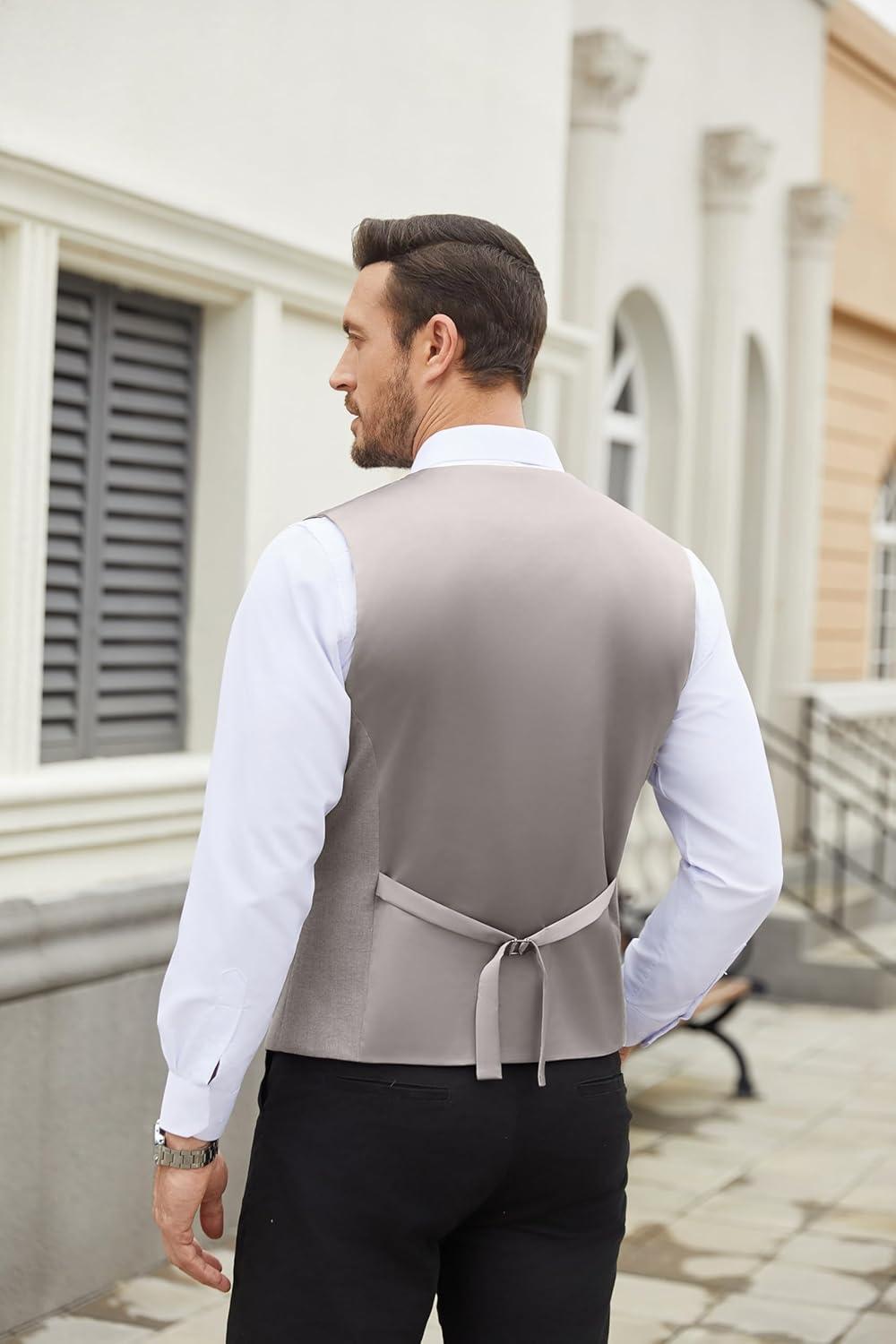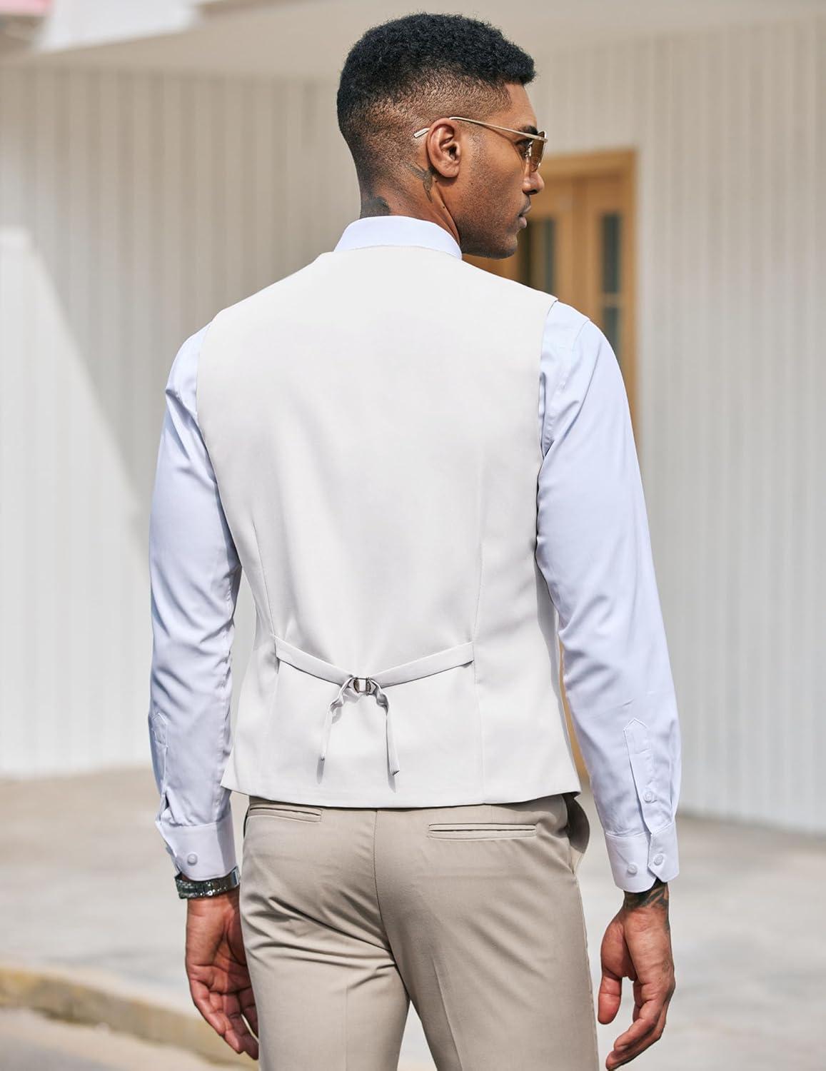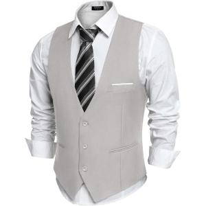 COOFANDY Men’s Suit Vest Slim Fit Formal Dress Waistcoat Casual Business Vests for Suit or Tuxedo(Light Grey)