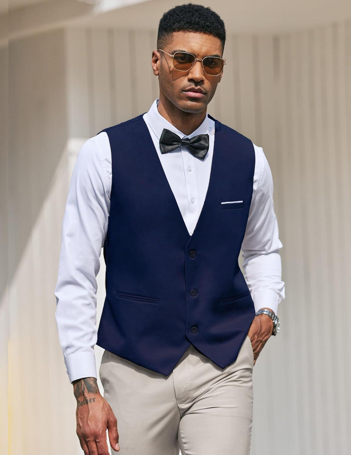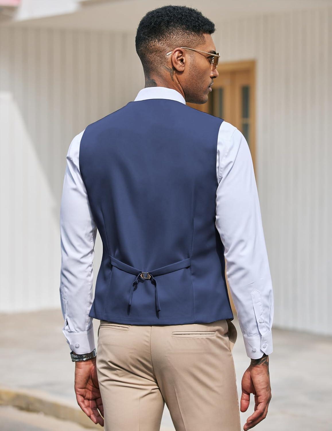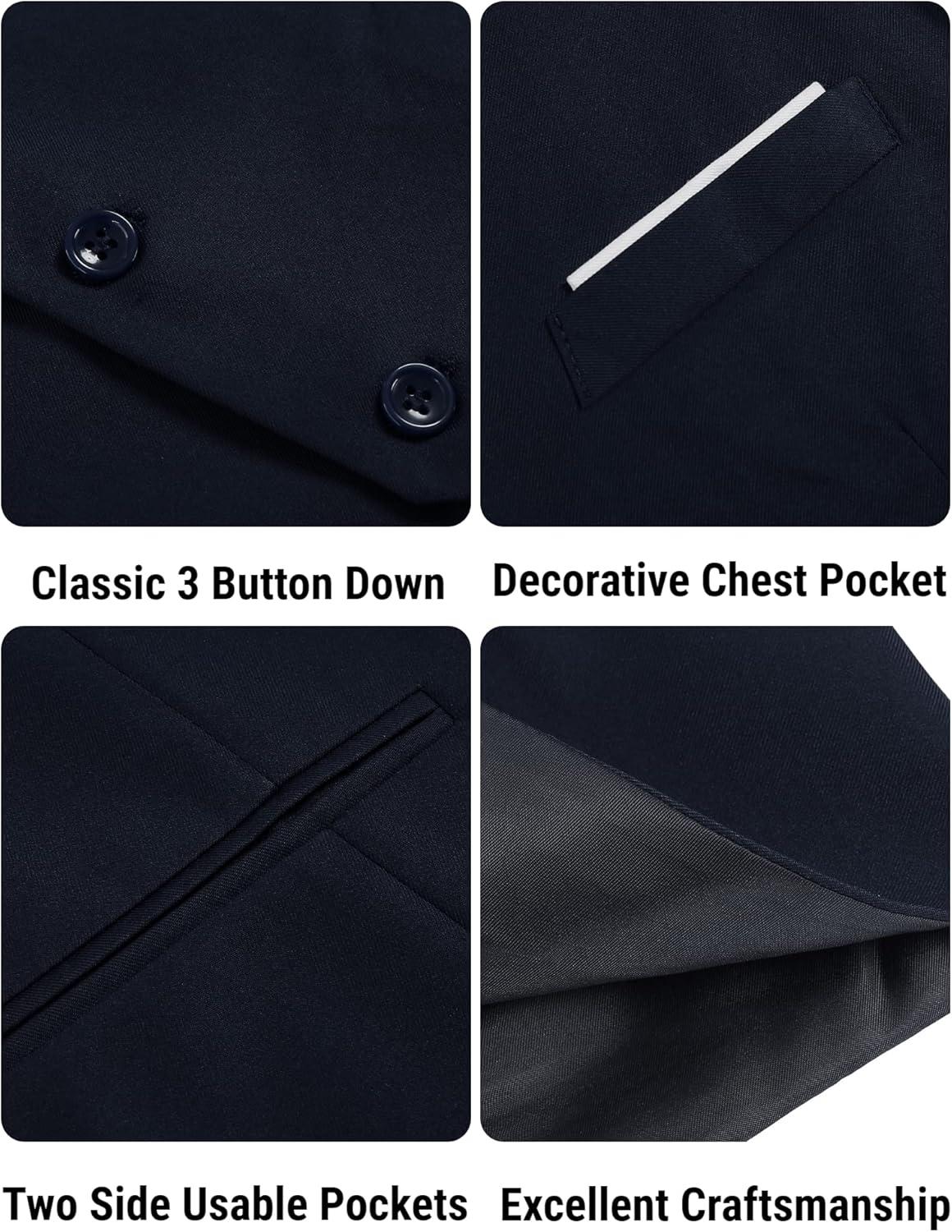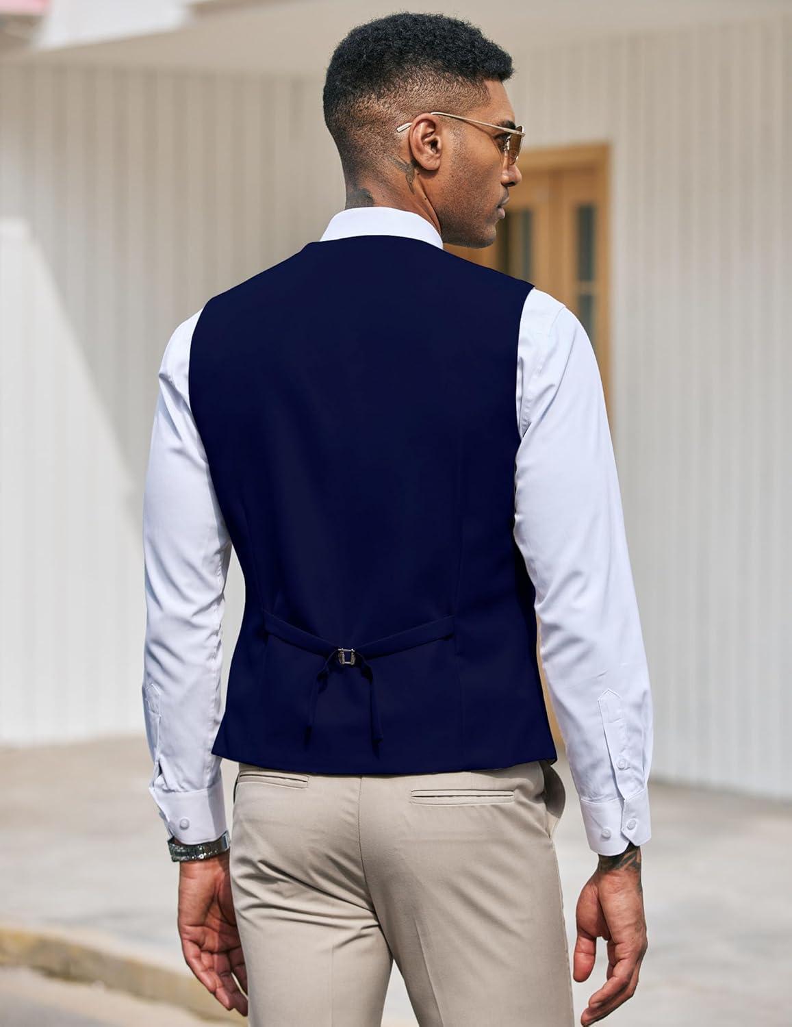COOFANDY Men’s Suit Vest Slim Fit Formal Dress Waistcoat Casual Business Vests for Suit or Tuxedo(Navy Blue)