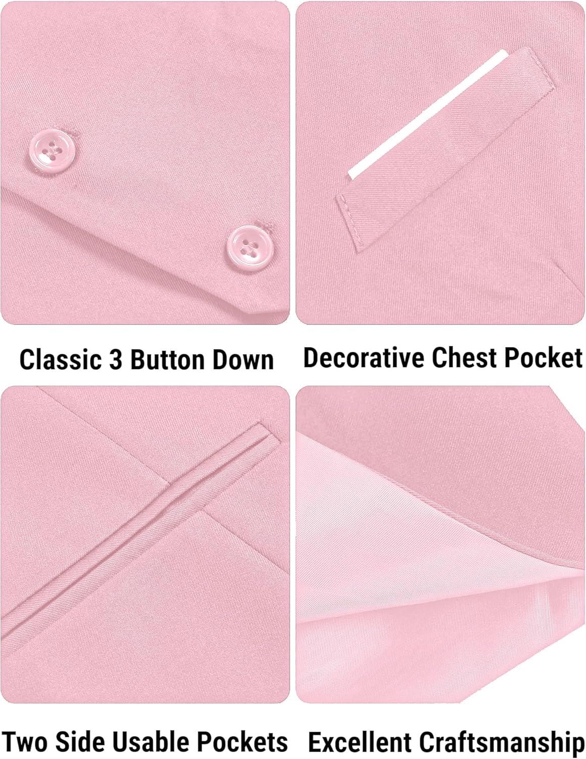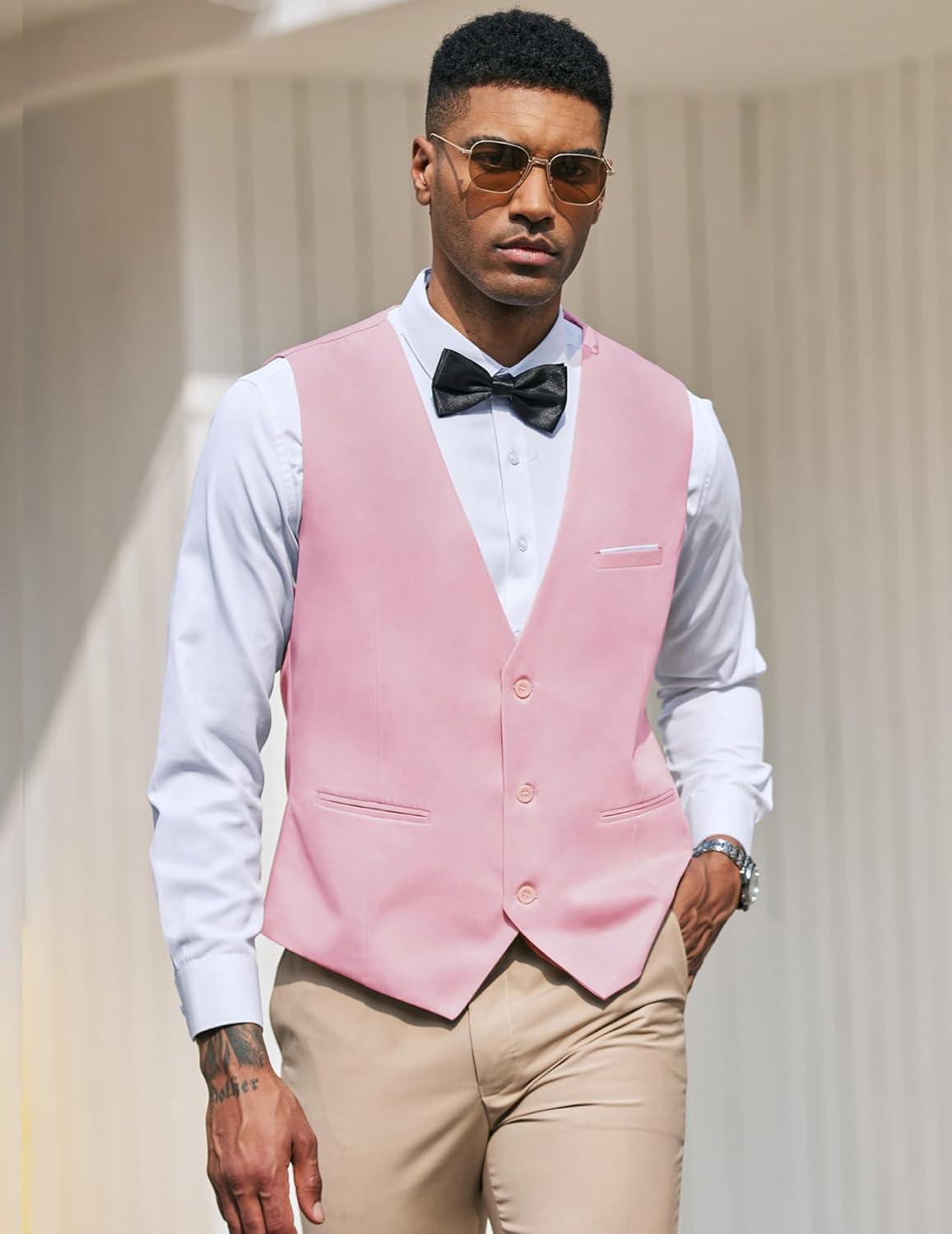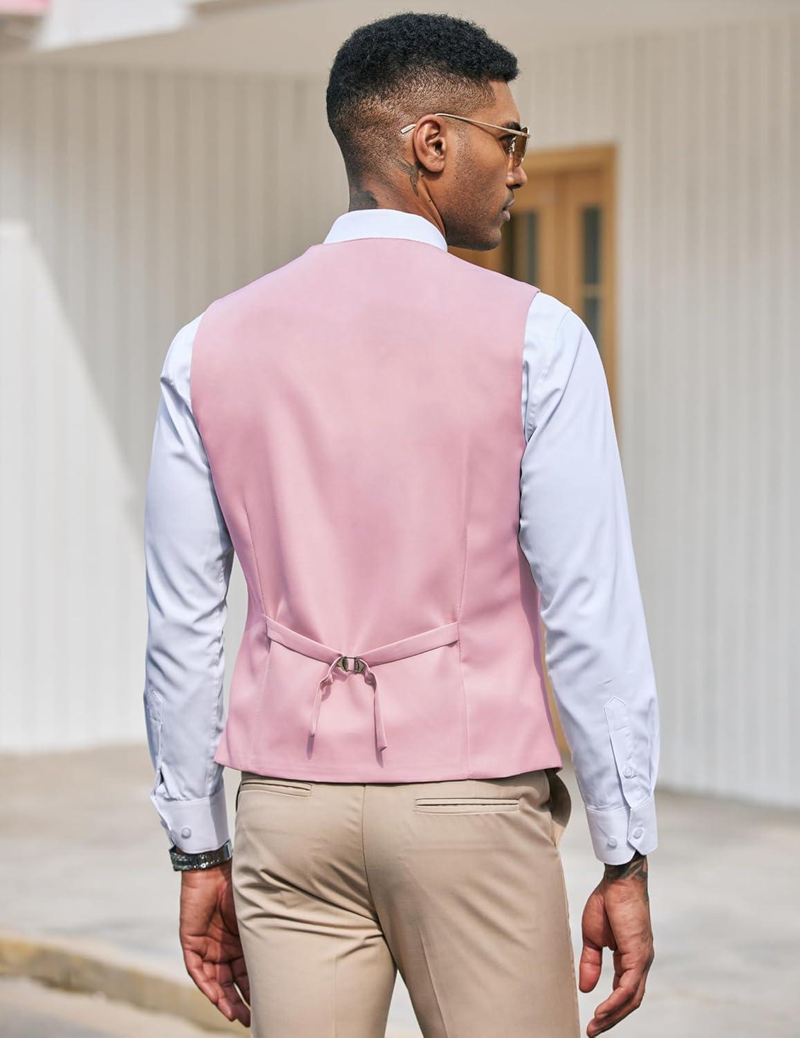 COOFANDY Men’s Suit Vest Slim Fit Formal Dress Waistcoat Casual Business Vests for Suit or Tuxedo(Pink)