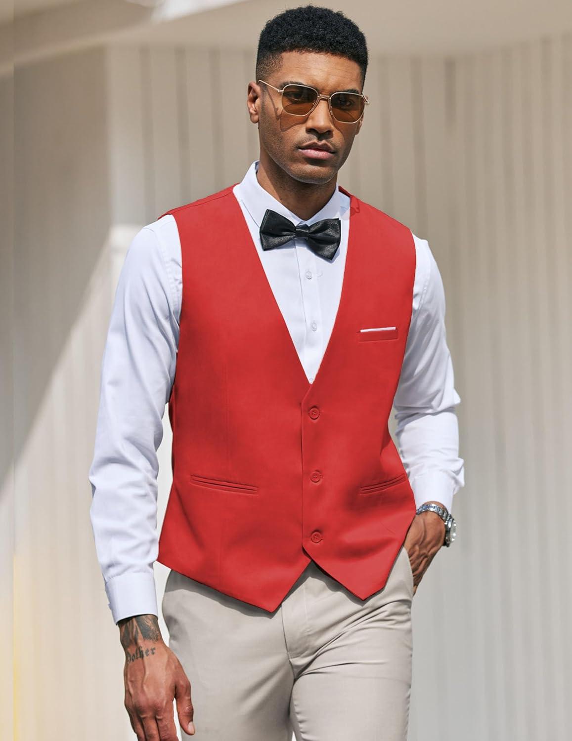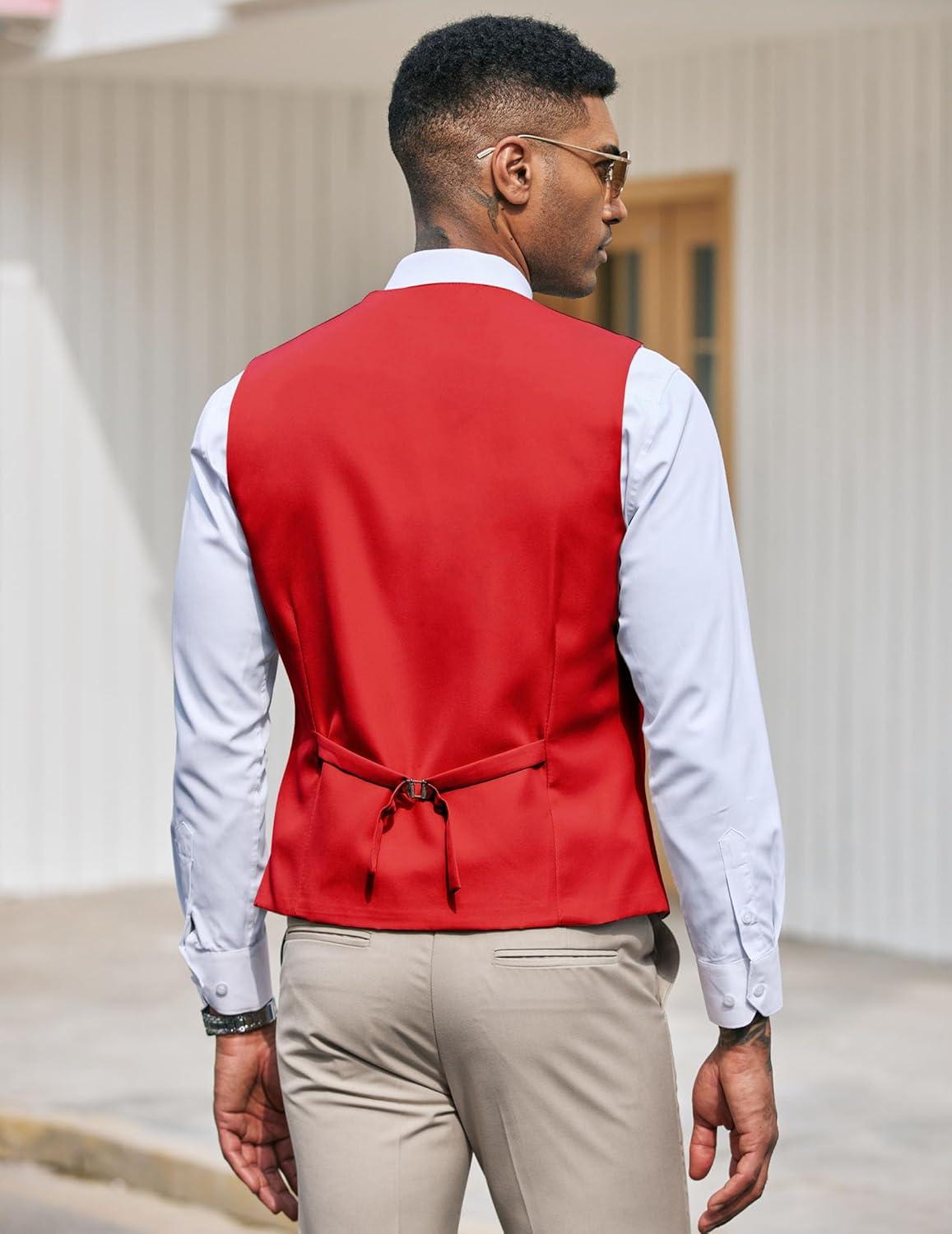 COOFANDY Men’s Suit Vest Slim Fit Formal Dress Waistcoat Casual Business Vests for Suit or Tuxedo(Red)