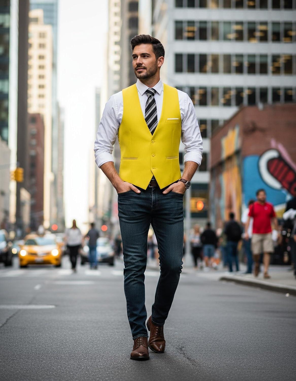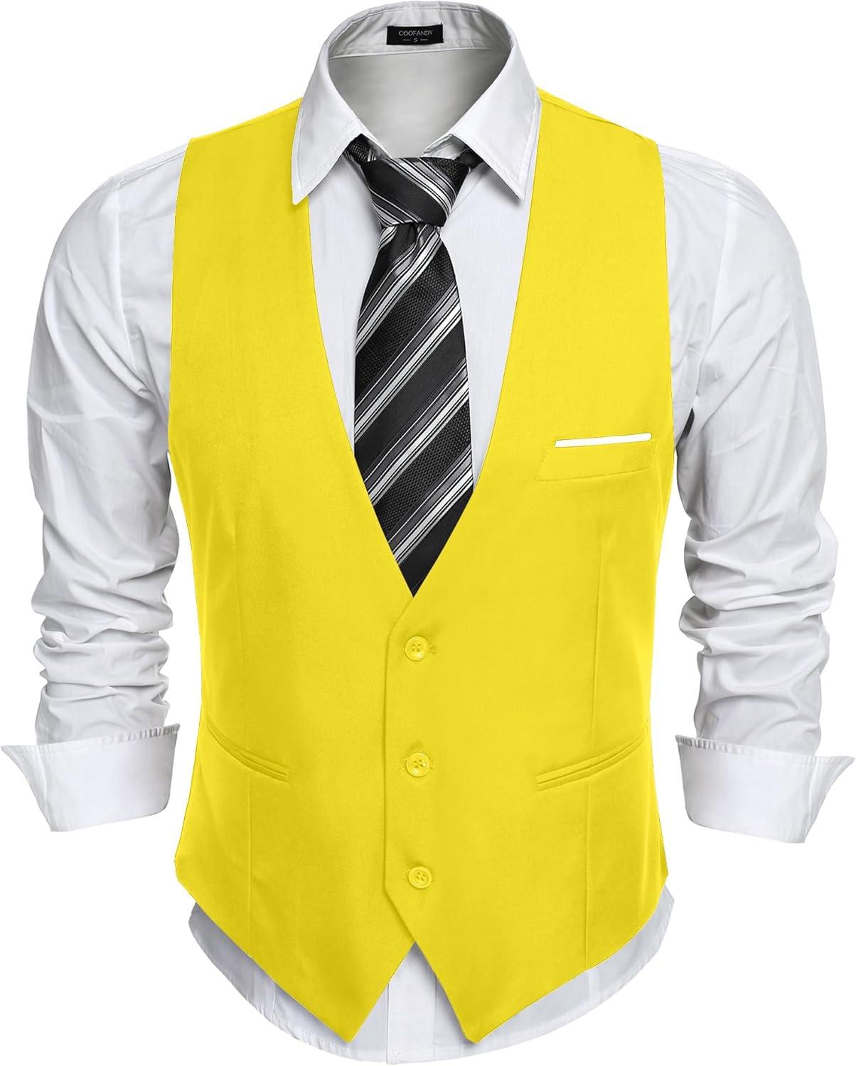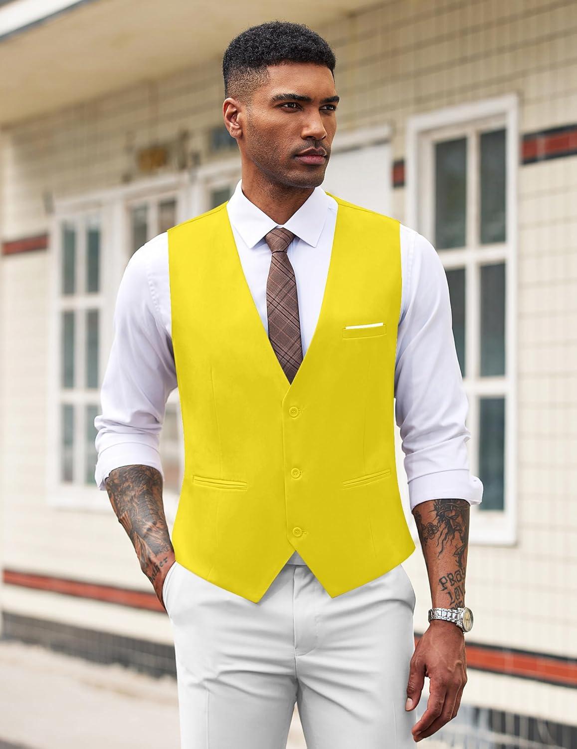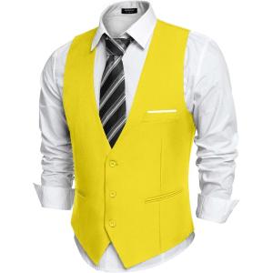 COOFANDY Men’s Suit Vest Slim Fit Formal Dress Waistcoat Casual Business Vests for Suit or Tuxedo(Yellow)