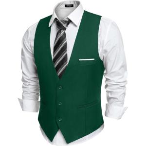 COOFANDY Men’s Suit Vest Slim Fit Formal Dress Waistcoat Casual Business Vests for Suit or Tuxedo(Green)