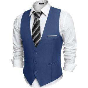 COOFANDY Men’s Suit Vest Slim Fit Formal Dress Waistcoat Casual Business Vests for Suit or Tuxedo(Royal Blue)