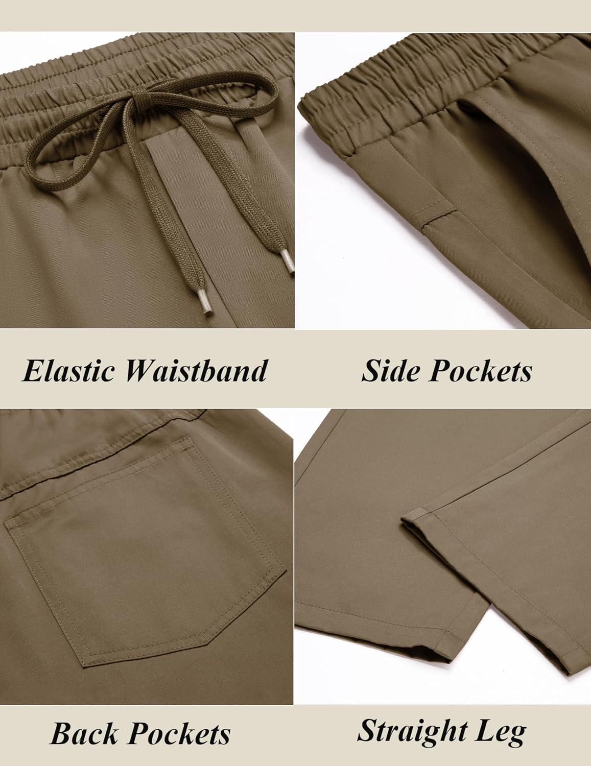 COOFANDY Men’s Casual Cotton Pants Regular Fit Elastic Waist Drawstring Twill Pants Straight Leg Chino Pants(Khaki)