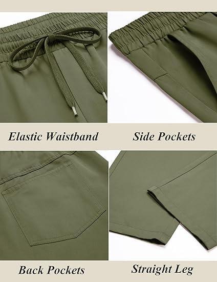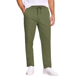 COOFANDY Men’s Casual Cotton Pants Regular Fit Elastic Waist Drawstring Twill Pants Straight Leg Chino Pants(Dark Green)