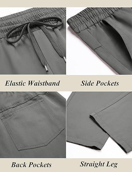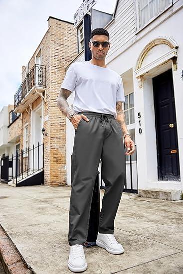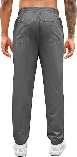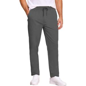 COOFANDY Men’s Casual Cotton Pants Regular Fit Elastic Waist Drawstring Twill Pants Straight Leg Chino Pants(Dark Grey)