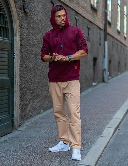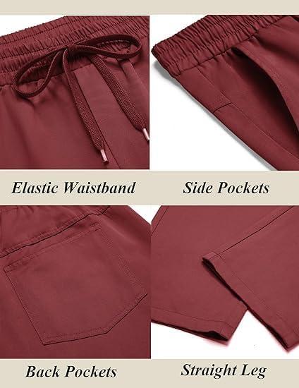 COOFANDY Men’s Casual Cotton Pants Regular Fit Elastic Waist Drawstring Twill Pants Straight Leg Chino Pants(Wine Red)