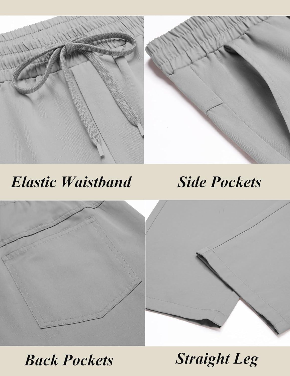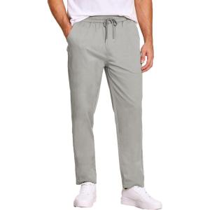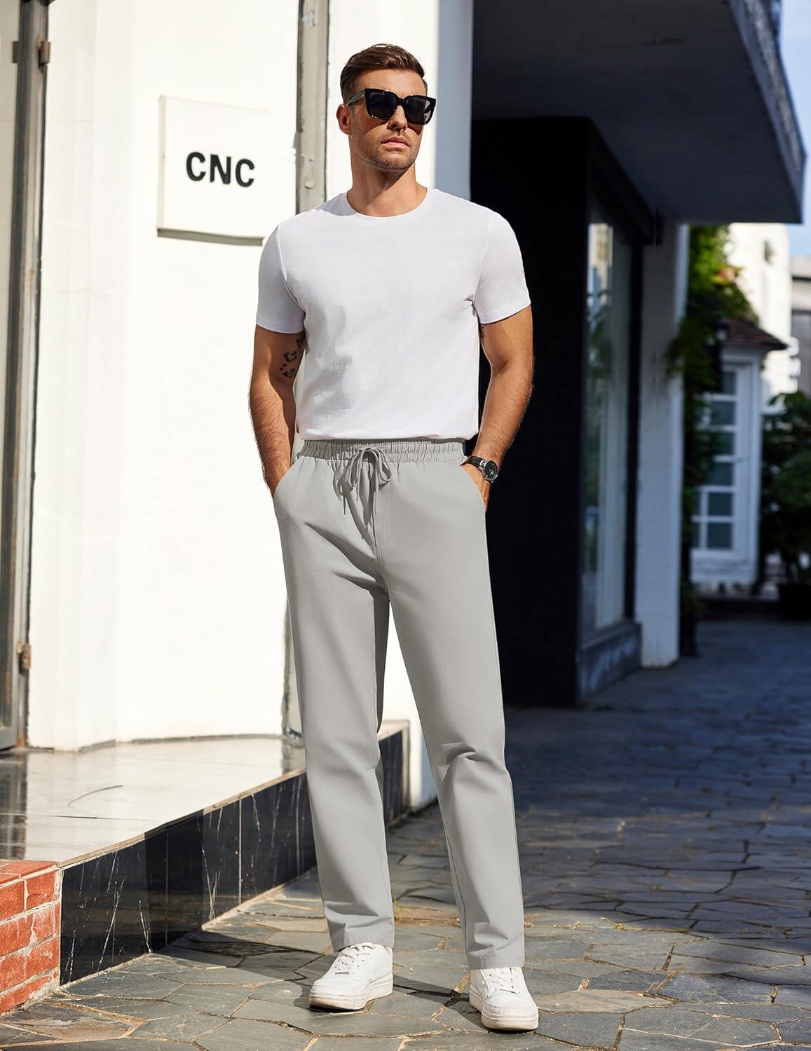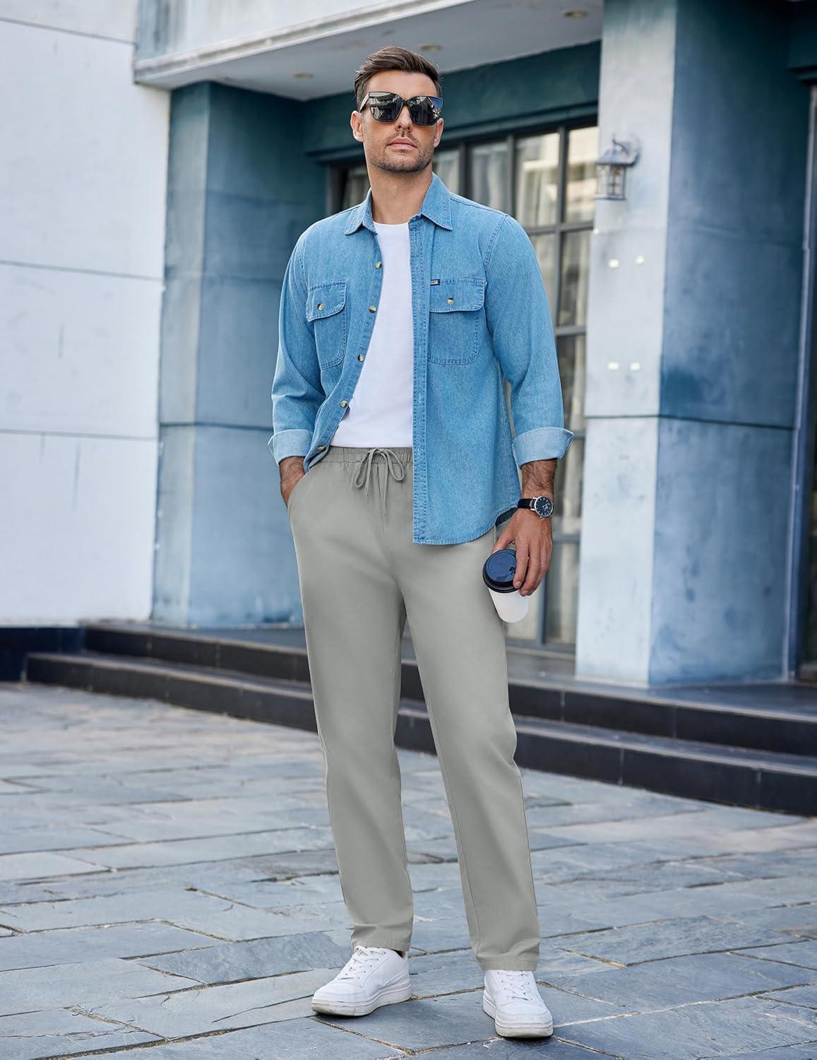 COOFANDY Men’s Casual Cotton Pants Regular Fit Elastic Waist Drawstring Twill Pants Straight Leg Chino Pants(Light Grey)