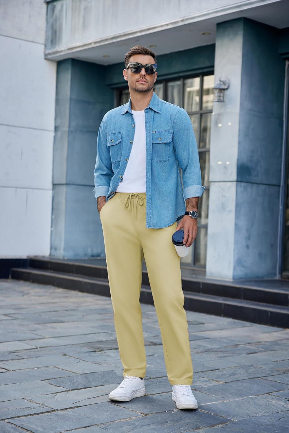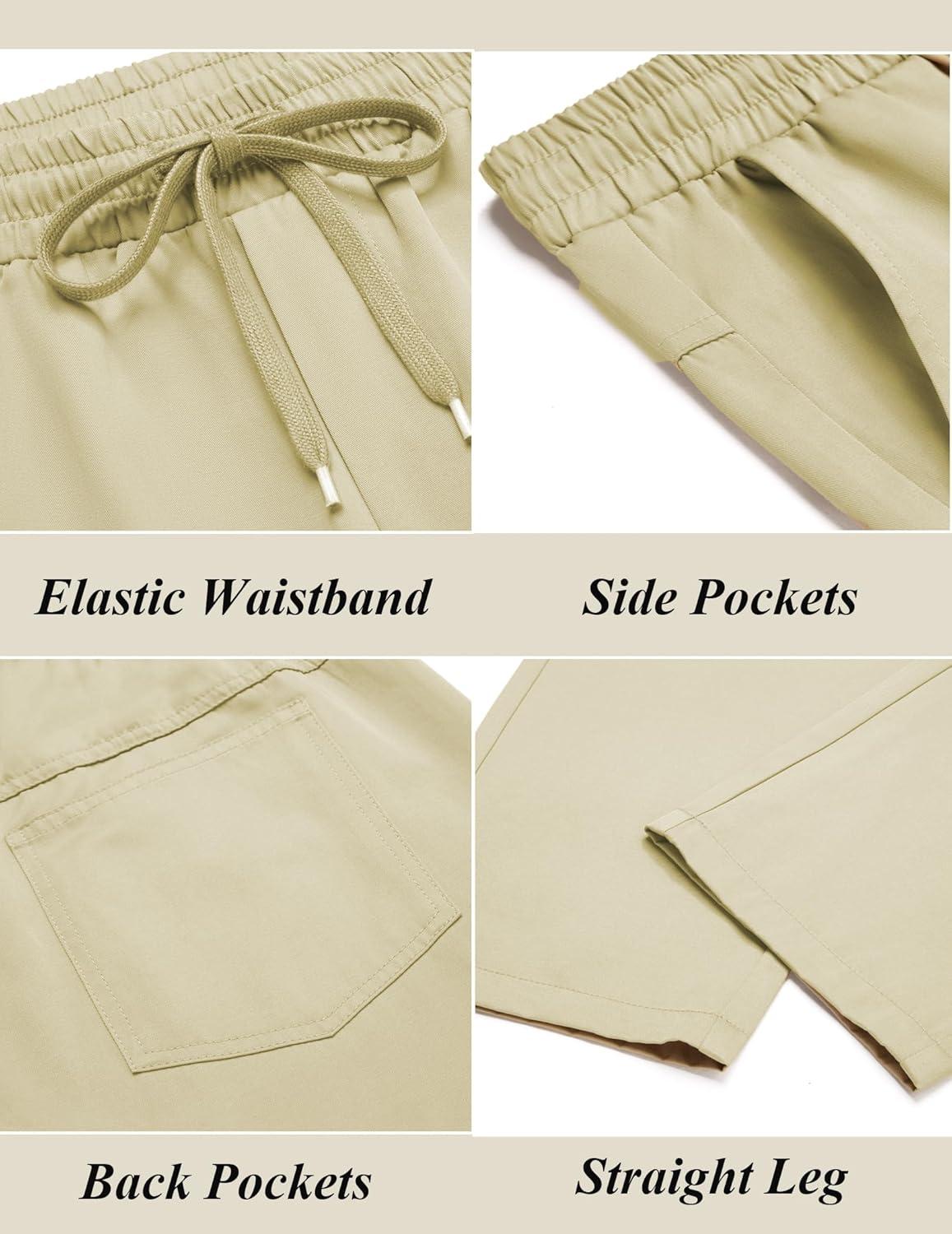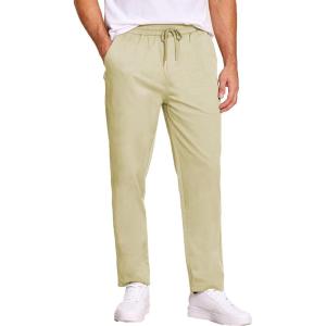 COOFANDY Men’s Casual Cotton Pants Regular Fit Elastic Waist Drawstring Twill Pants Straight Leg Chino Pants(Light Khaki)