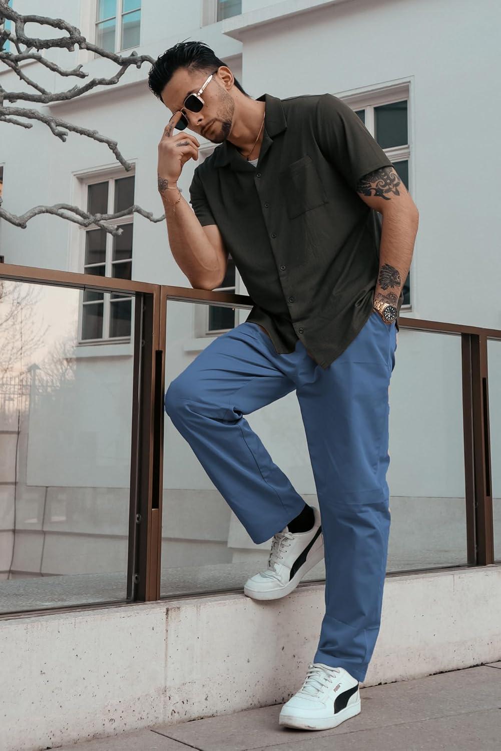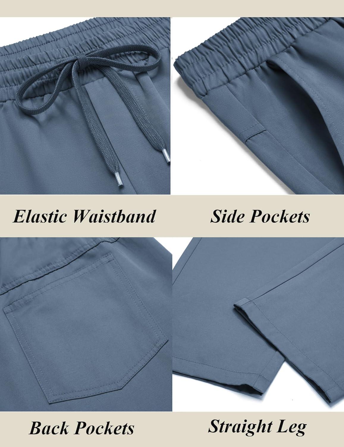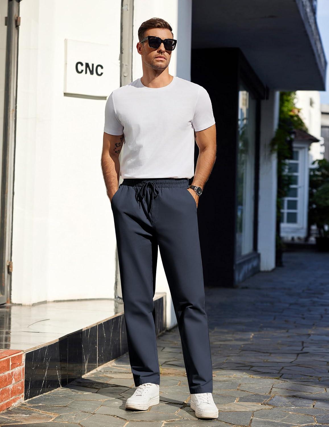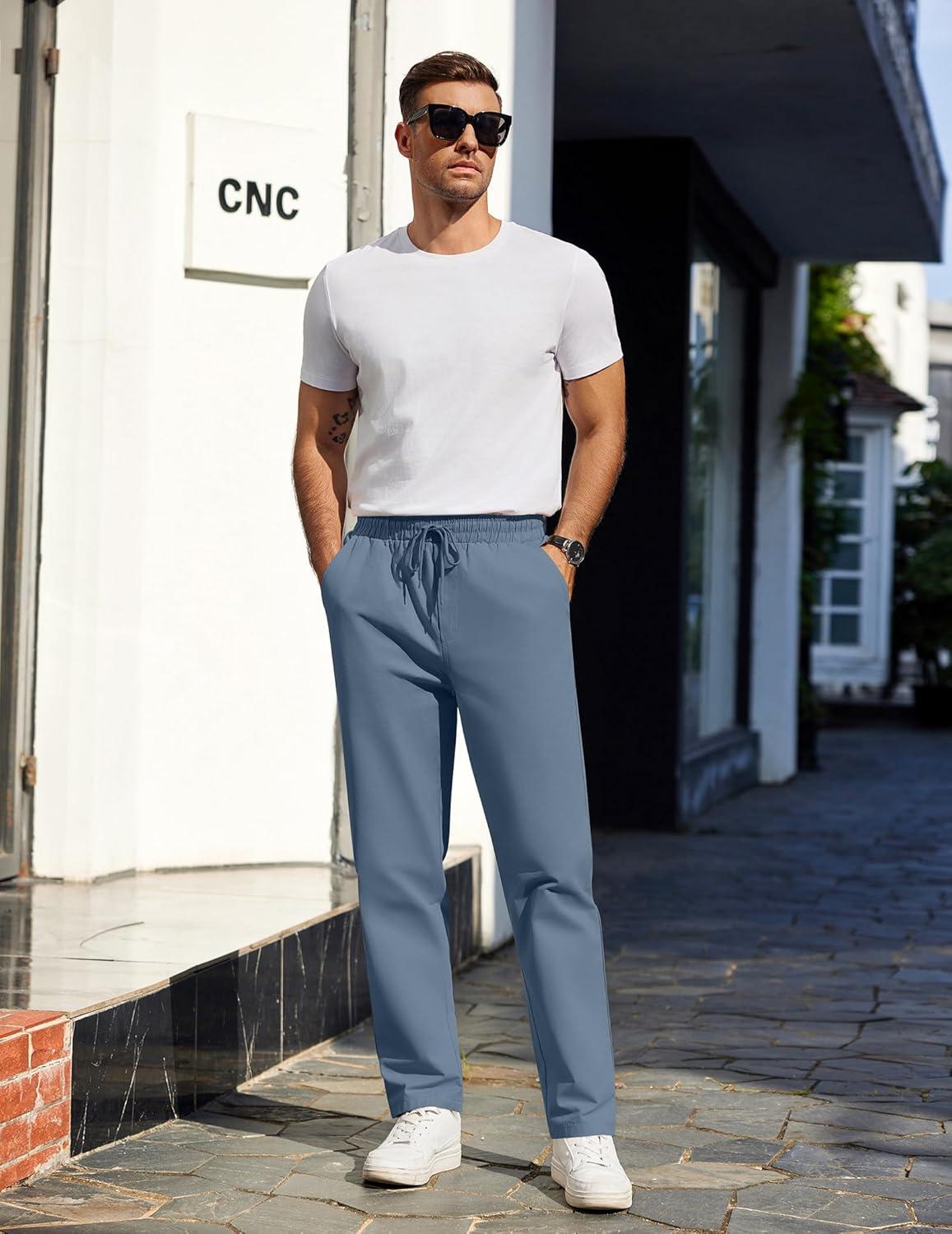 COOFANDY Men’s Casual Cotton Pants Regular Fit Elastic Waist Drawstring Twill Pants Straight Leg Chino Pants(Slate Blue)