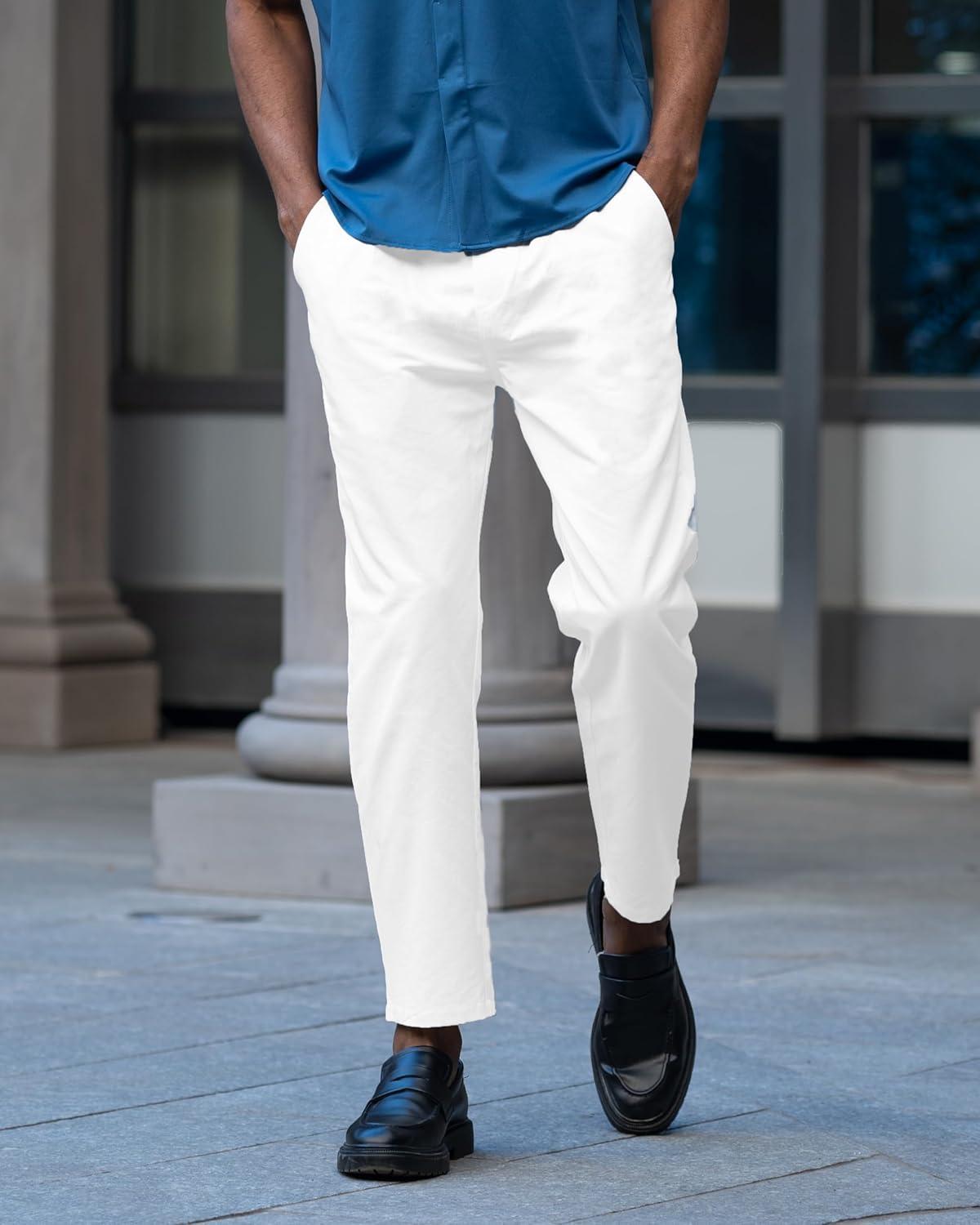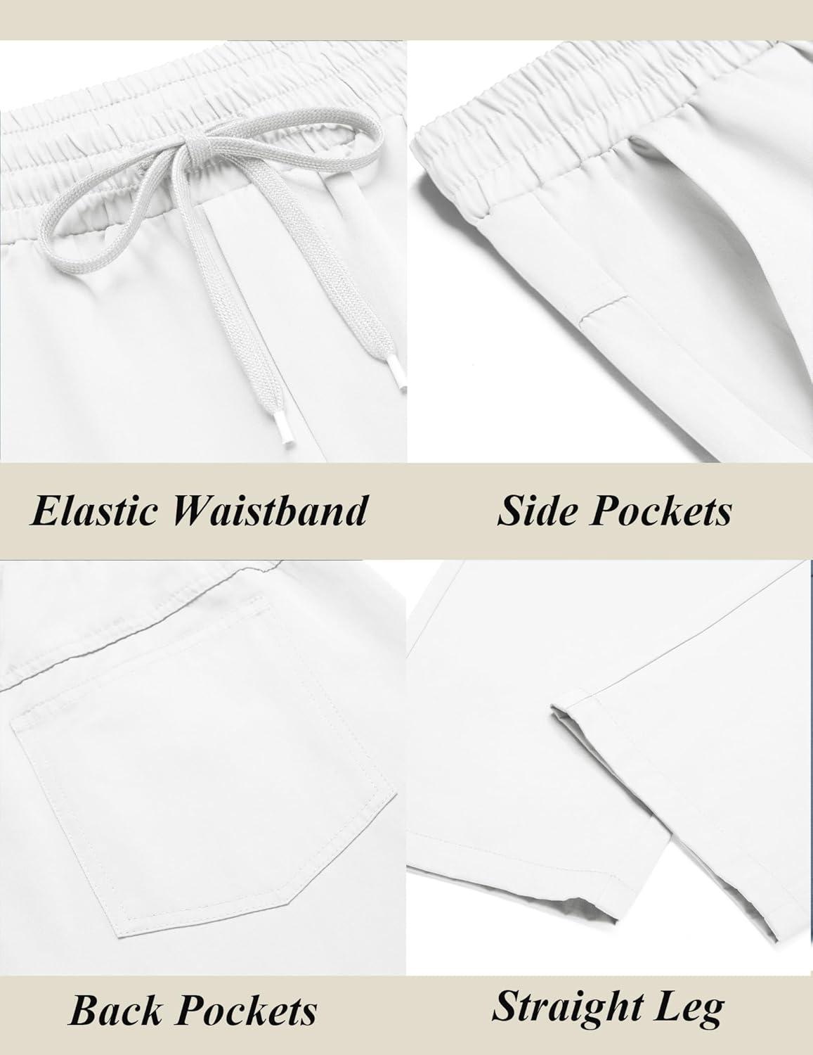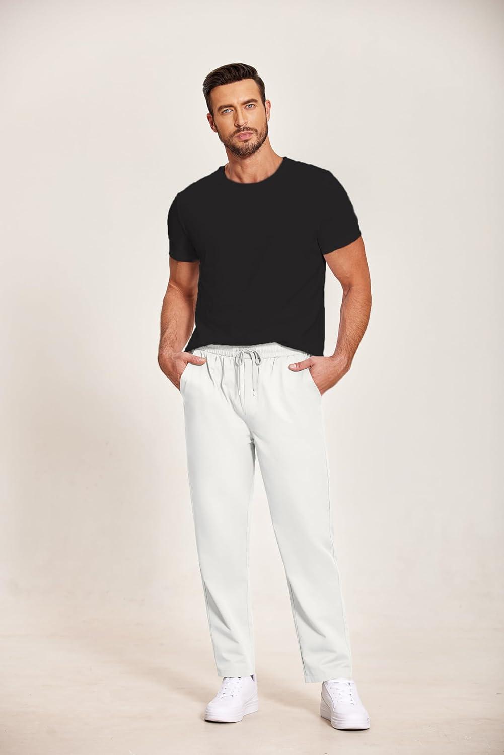 COOFANDY Men’s Casual Cotton Pants Regular Fit Elastic Waist Drawstring Twill Pants Straight Leg Chino Pants(White)