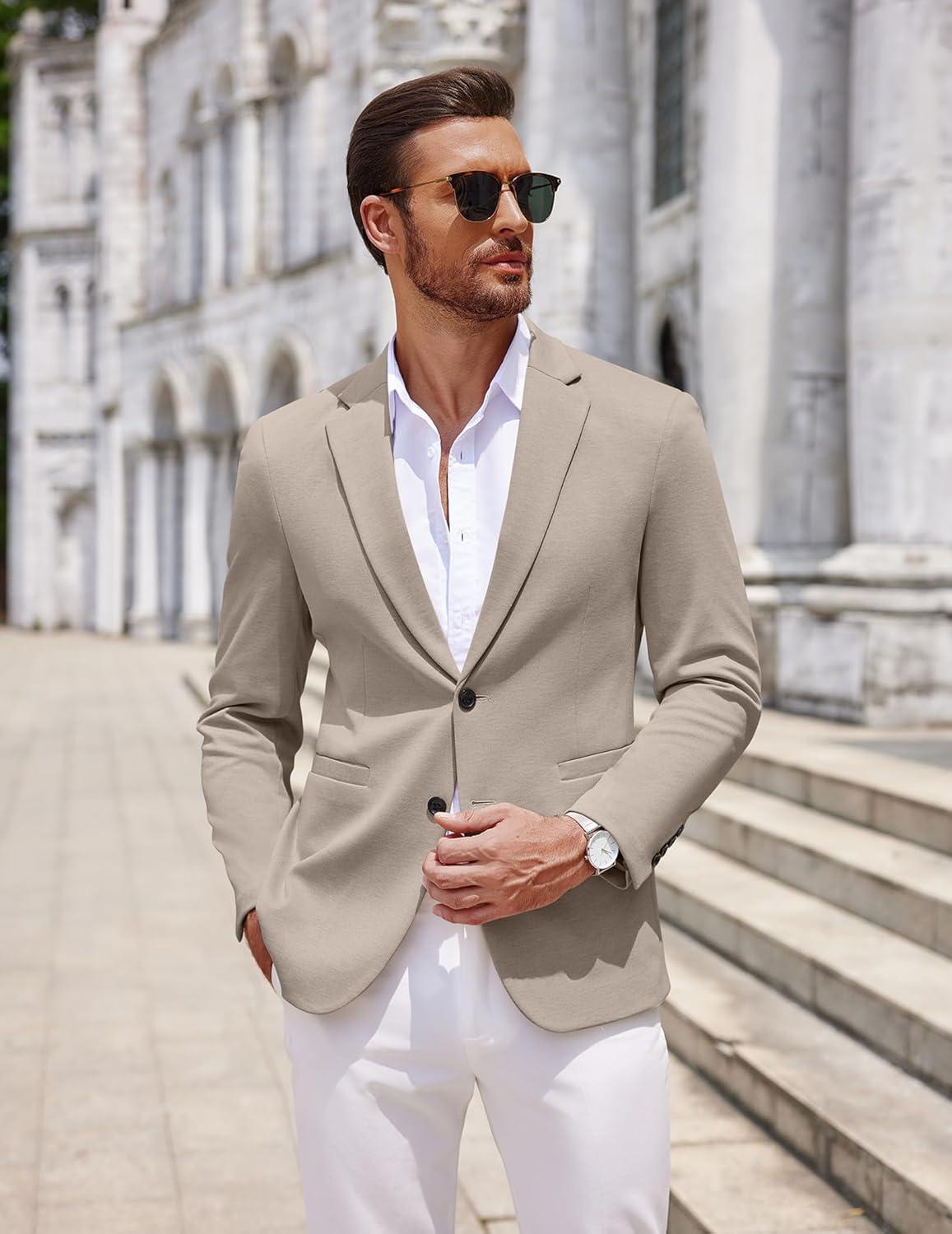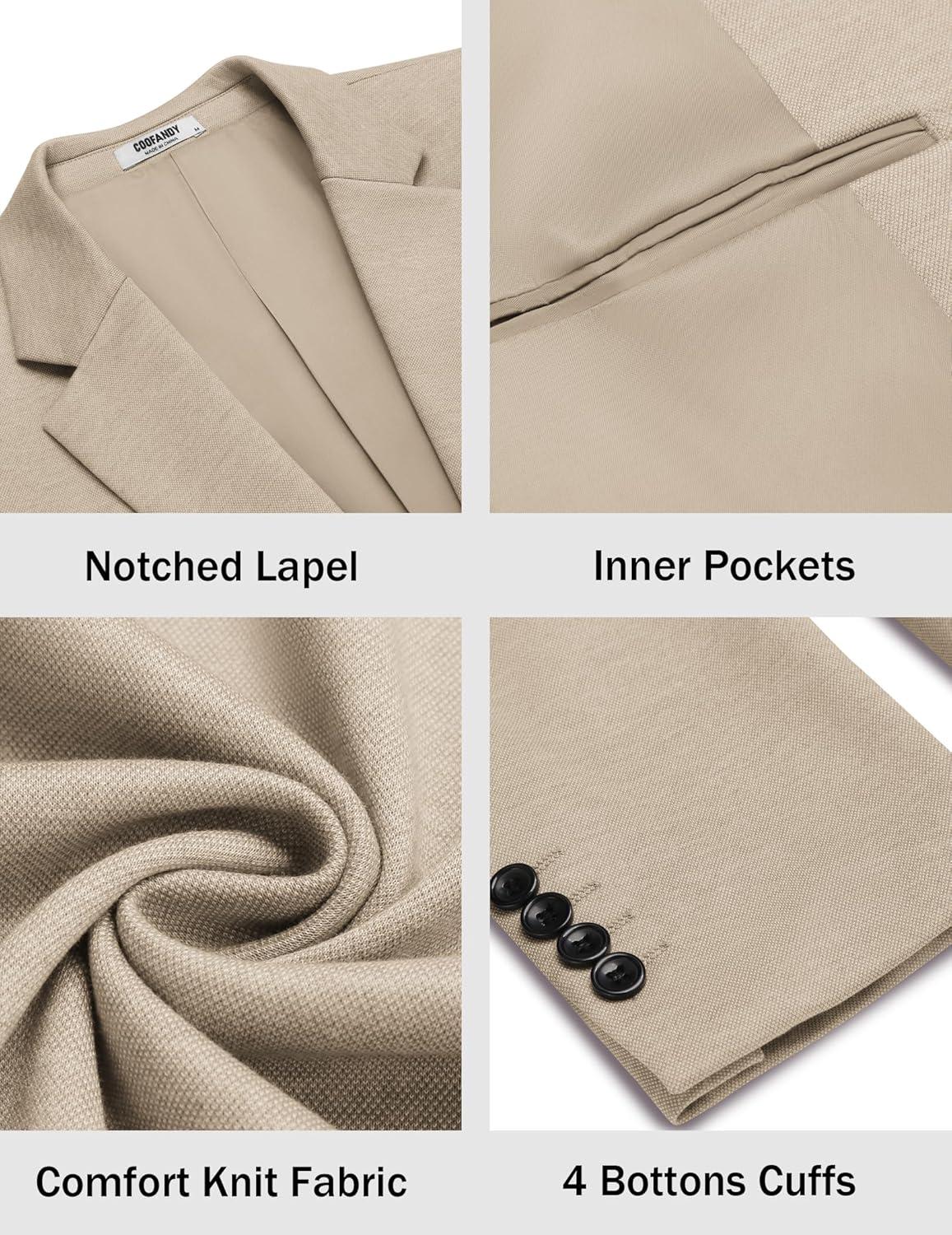 COOFANDY Men’s Casual Knit Blazer Two Button Lightweight Sport Coats Suit Jacket(02-light Khaki)