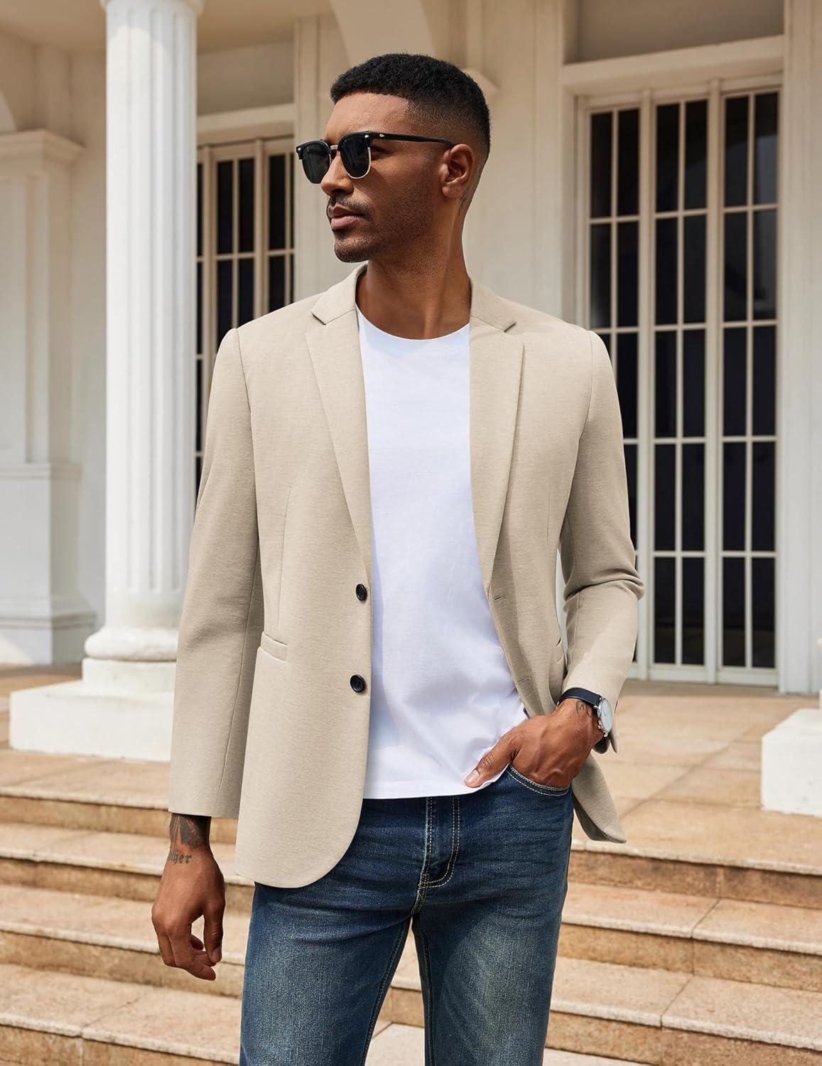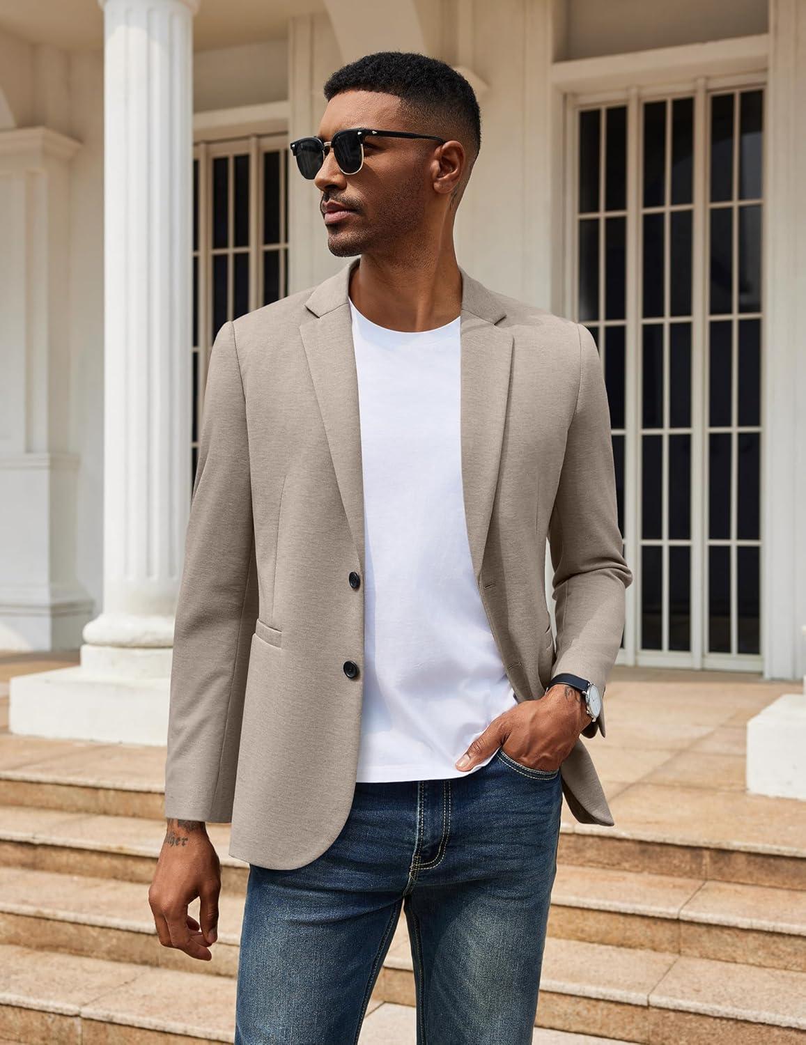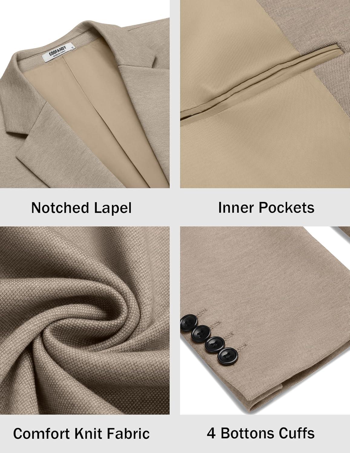 COOFANDY Men’s Casual Knit Blazer Two Button Lightweight Sport Coats Suit Jacket(Khaki Grey)