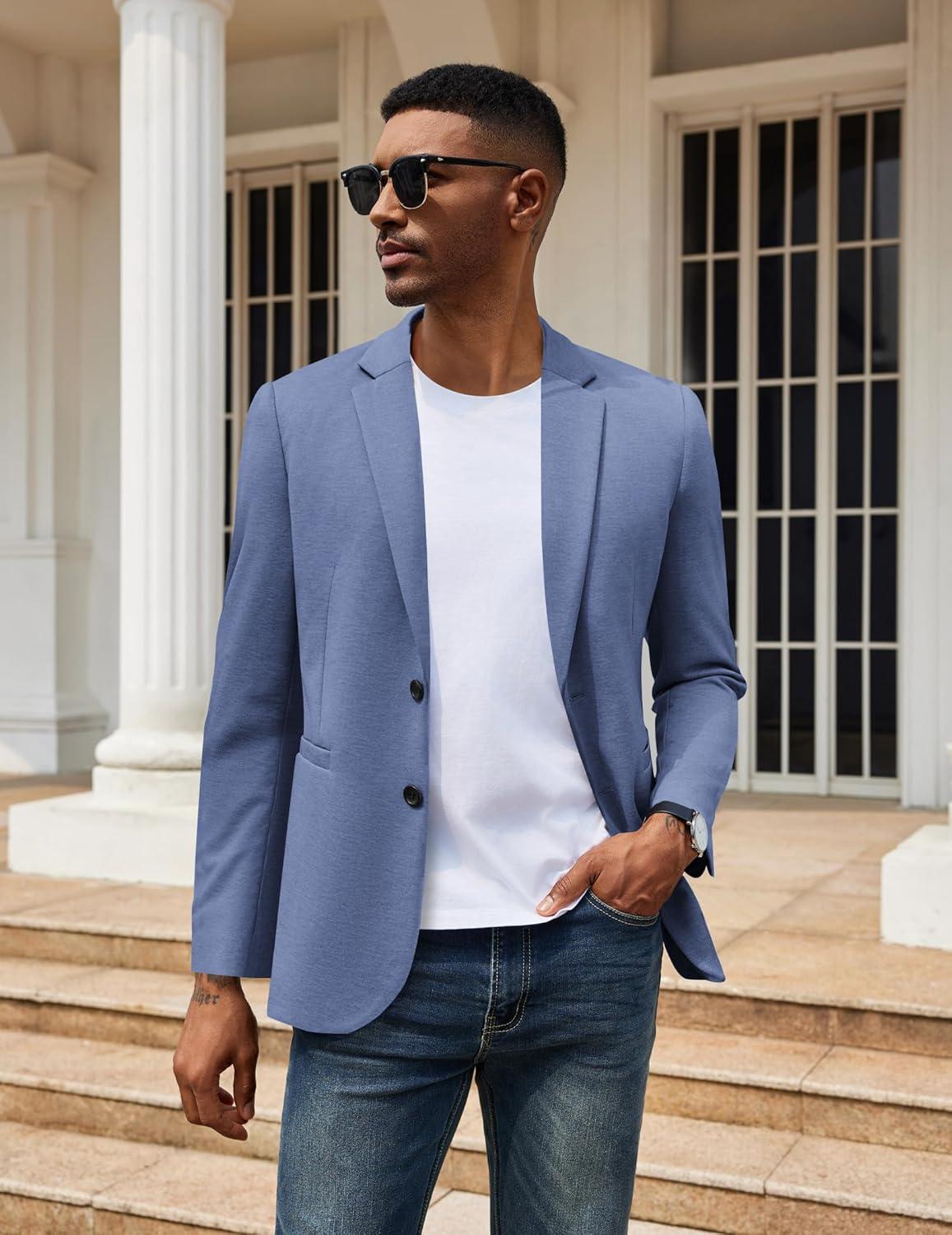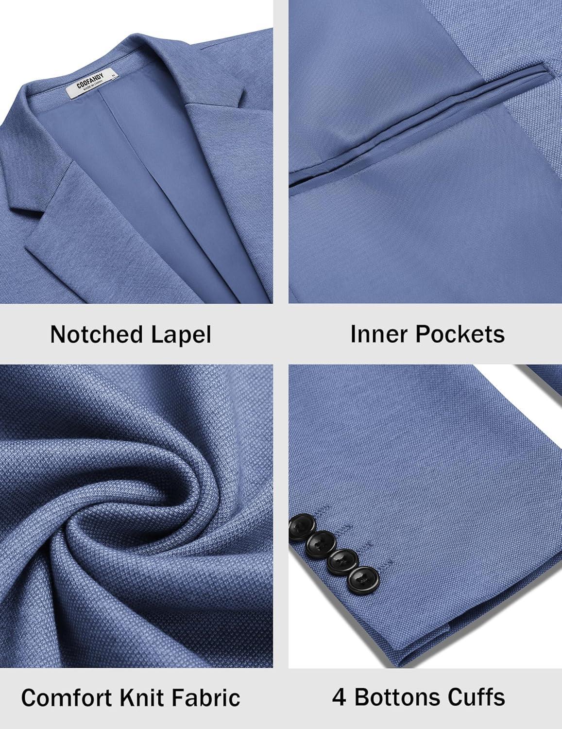 COOFANDY Men’s Casual Knit Blazer Two Button Lightweight Sport Coats Suit Jacket(Blue)