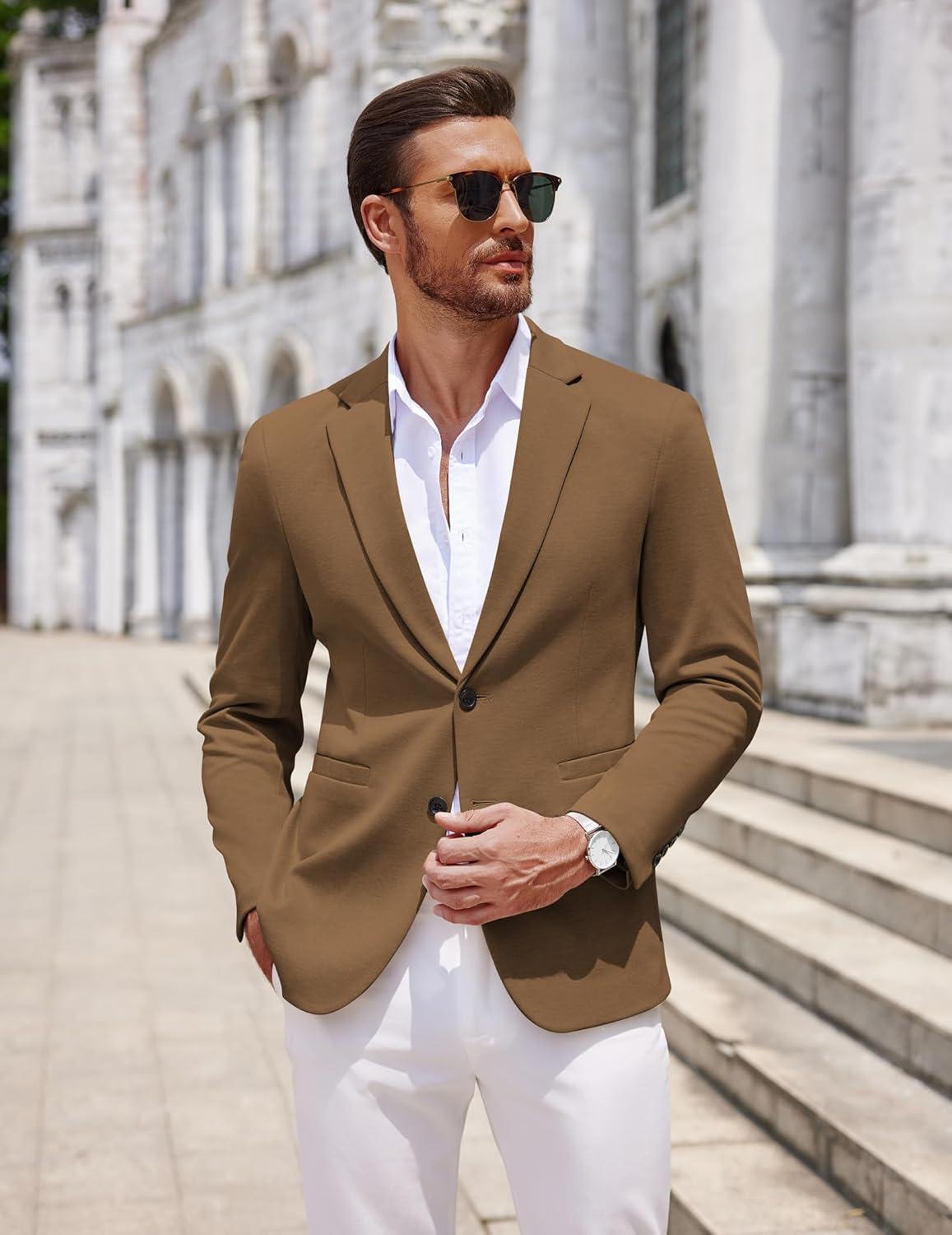 COOFANDY Men’s Casual Knit Blazer Two Button Lightweight Sport Coats Suit Jacket(Brown)