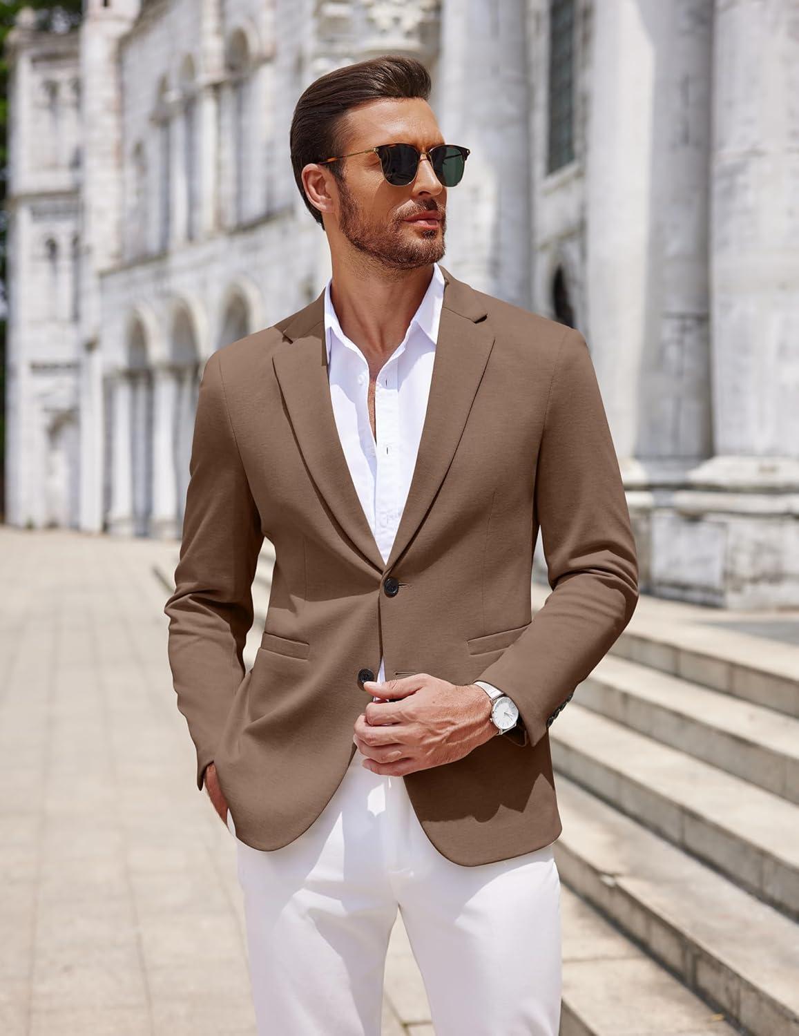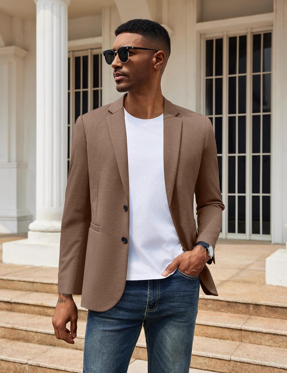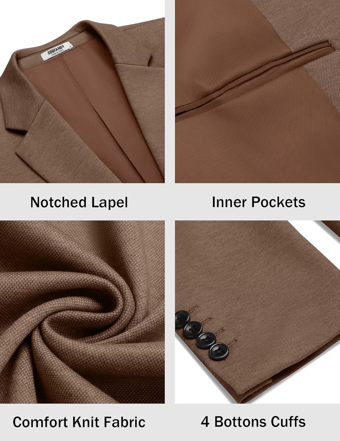 COOFANDY Men’s Casual Knit Blazer Two Button Lightweight Sport Coats Suit Jacket(Coffee)