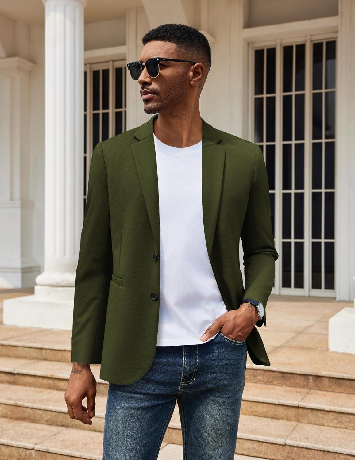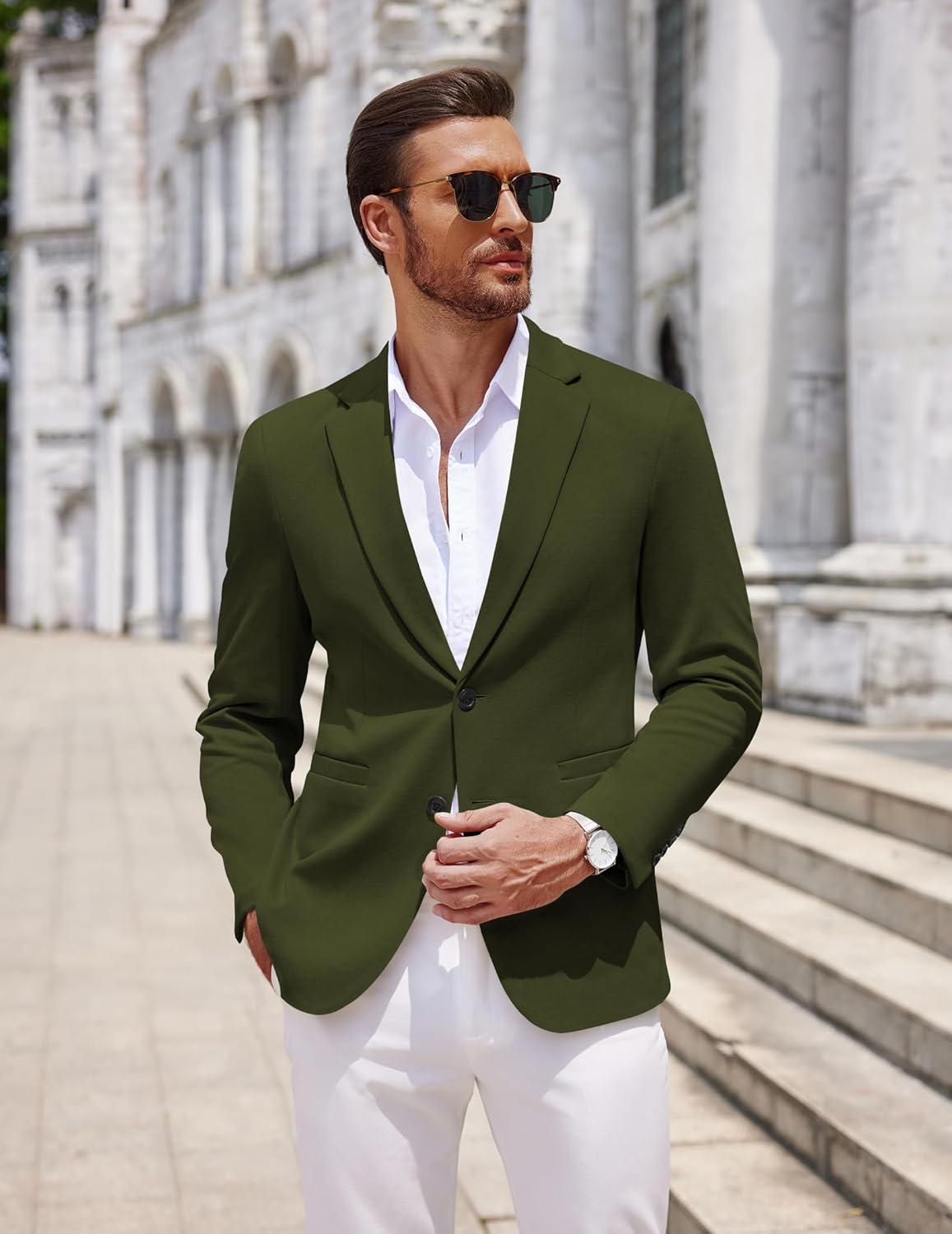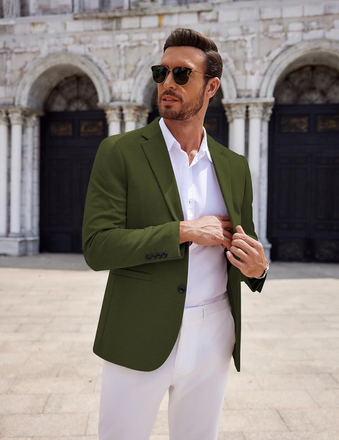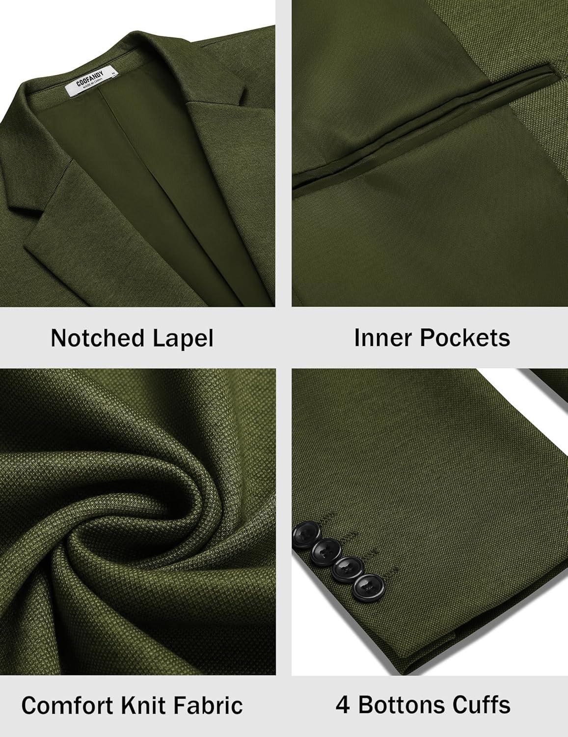 COOFANDY Men’s Casual Knit Blazer Two Button Lightweight Sport Coats Suit Jacket(Dark Green)
