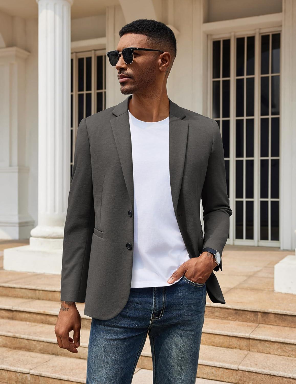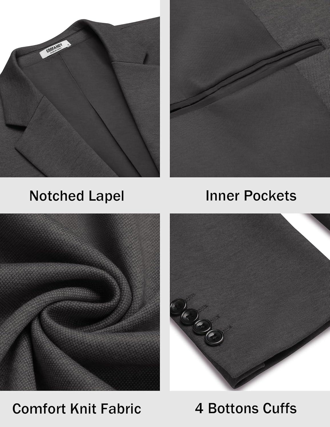 COOFANDY Men’s Casual Knit Blazer Two Button Lightweight Sport Coats Suit Jacket(Dark Grey)