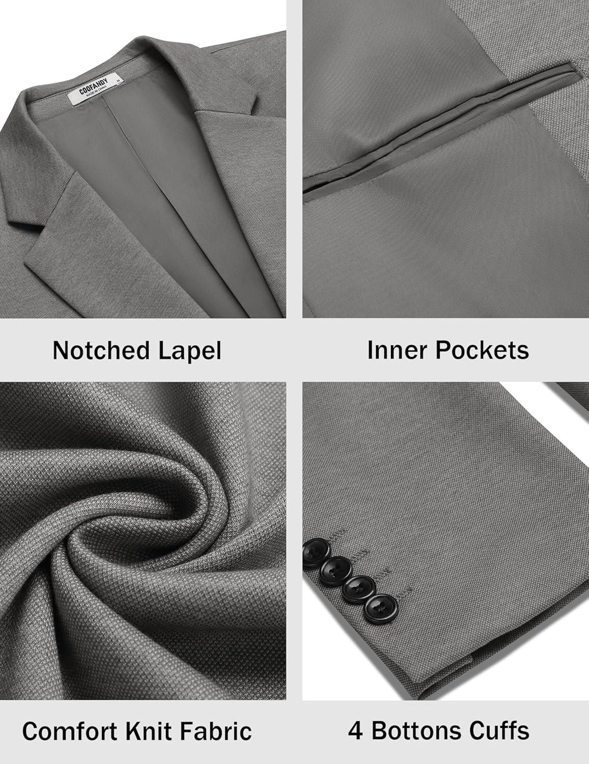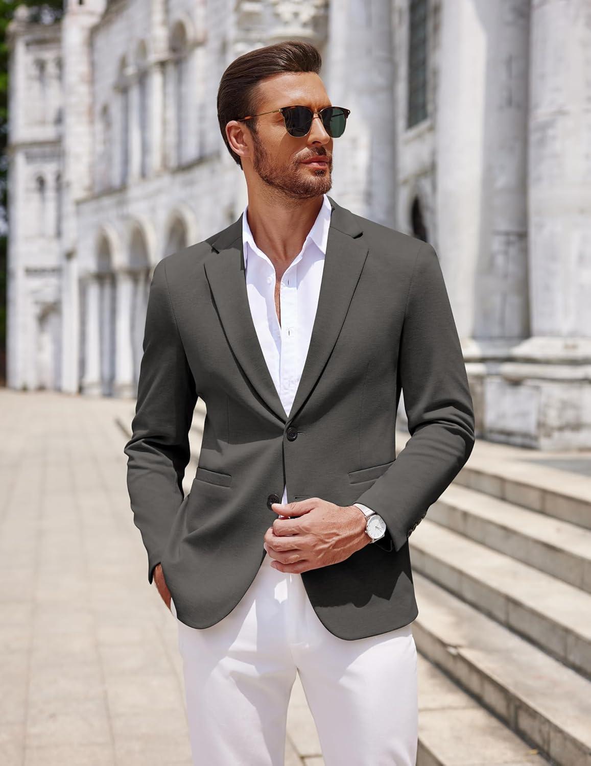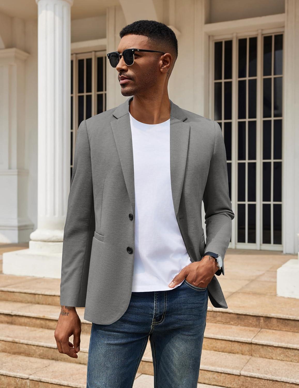 COOFANDY Men’s Casual Knit Blazer Two Button Lightweight Sport Coats Suit Jacket(Grey)