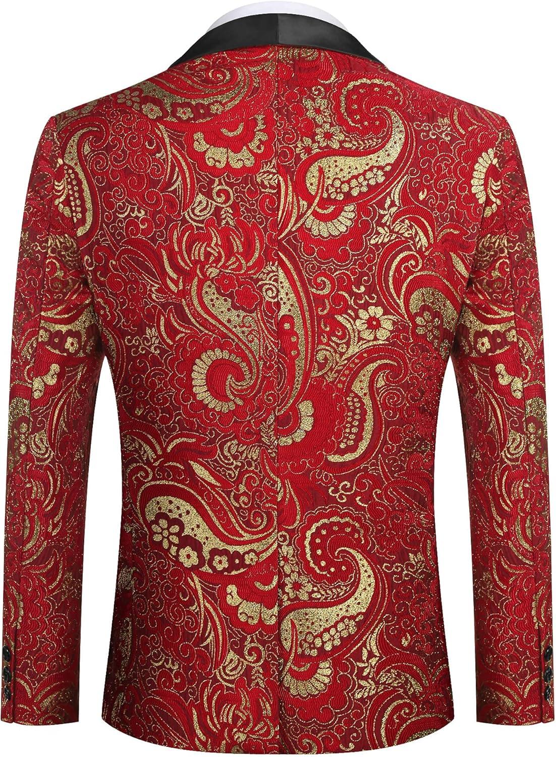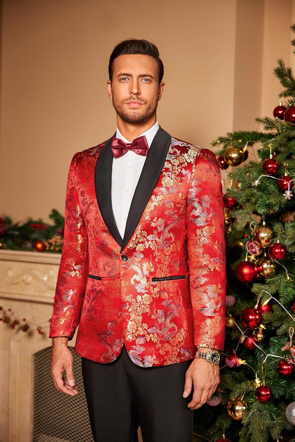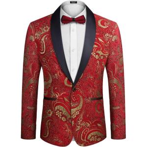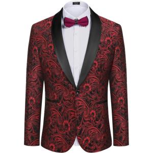 COOFANDY Men’s Floral Tuxedo Jacket Luxury Embroidered Wedding Blazer Dress Suit for Party Dinner(Red)