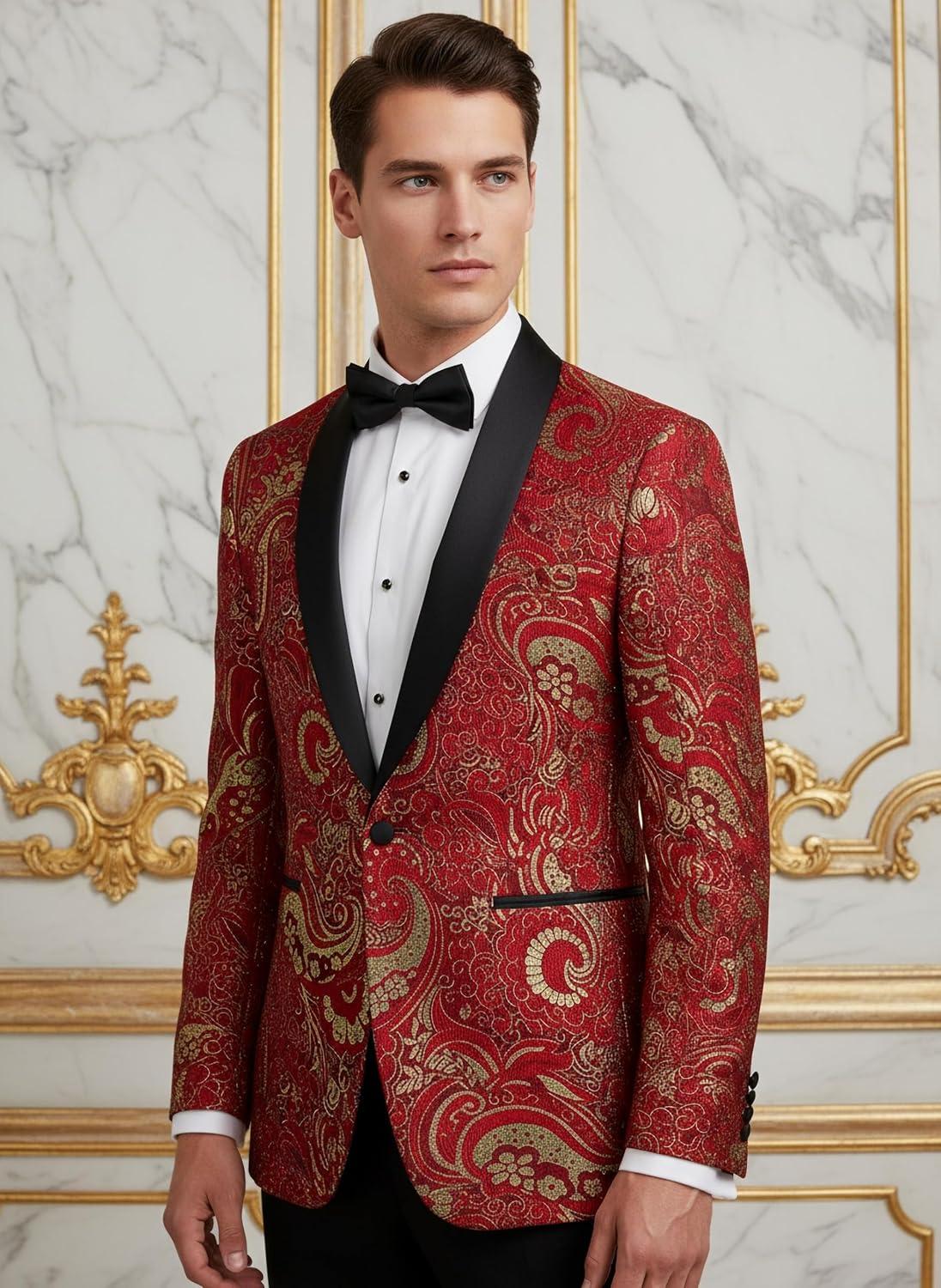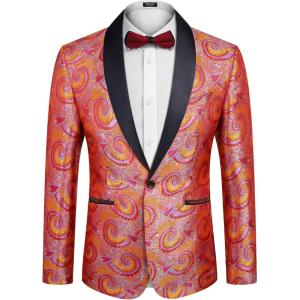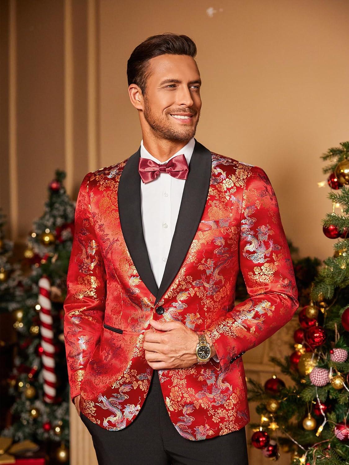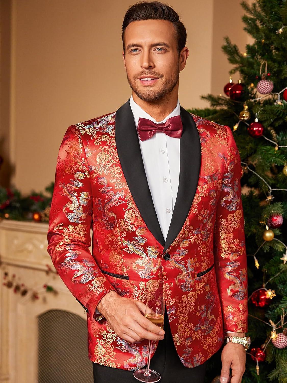 COOFANDY Men’s Floral Tuxedo Jacket Luxury Embroidered Wedding Blazer Dress Suit for Party Dinner(Red)