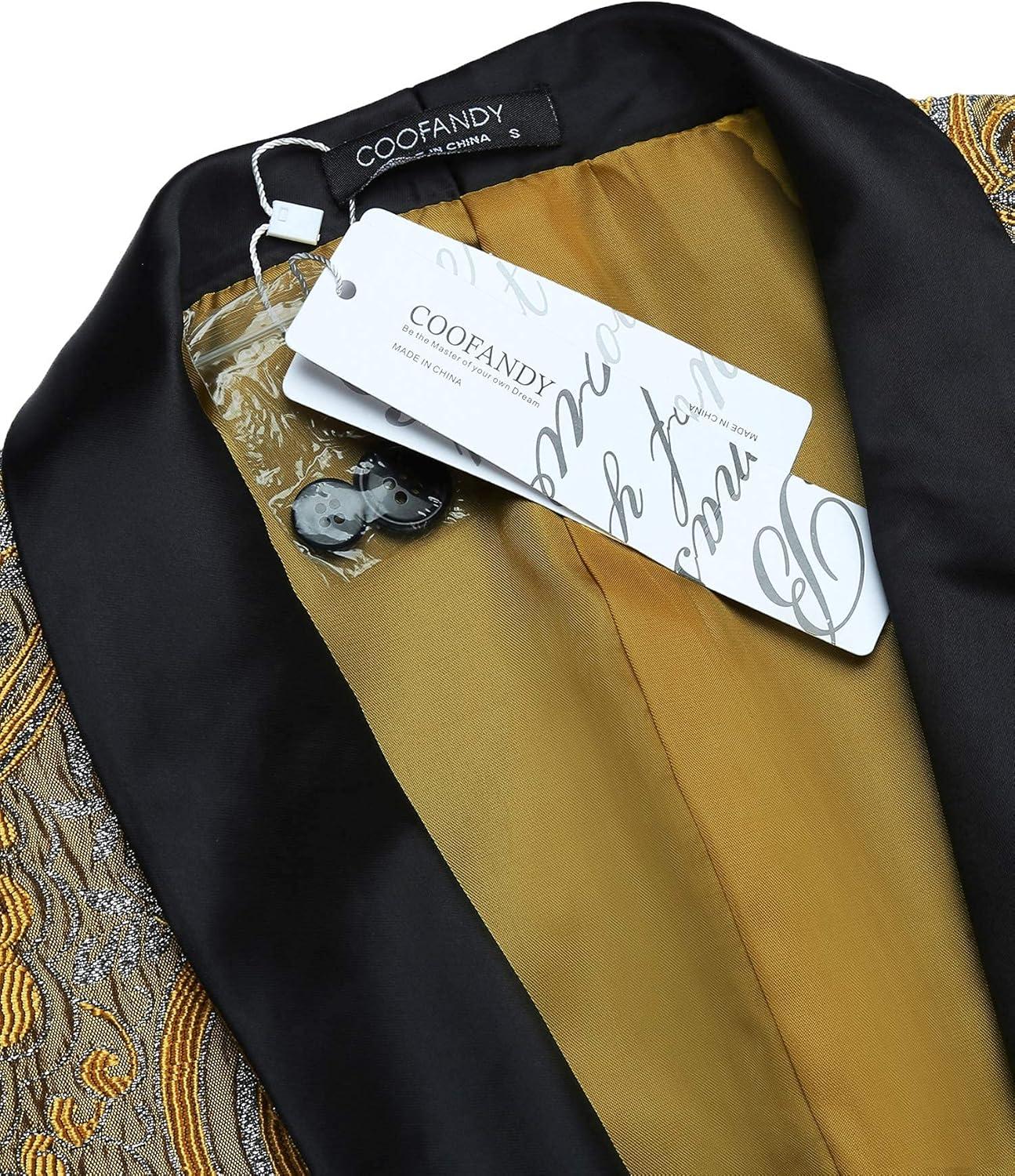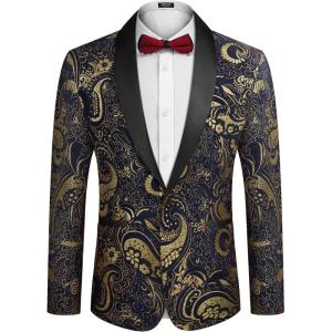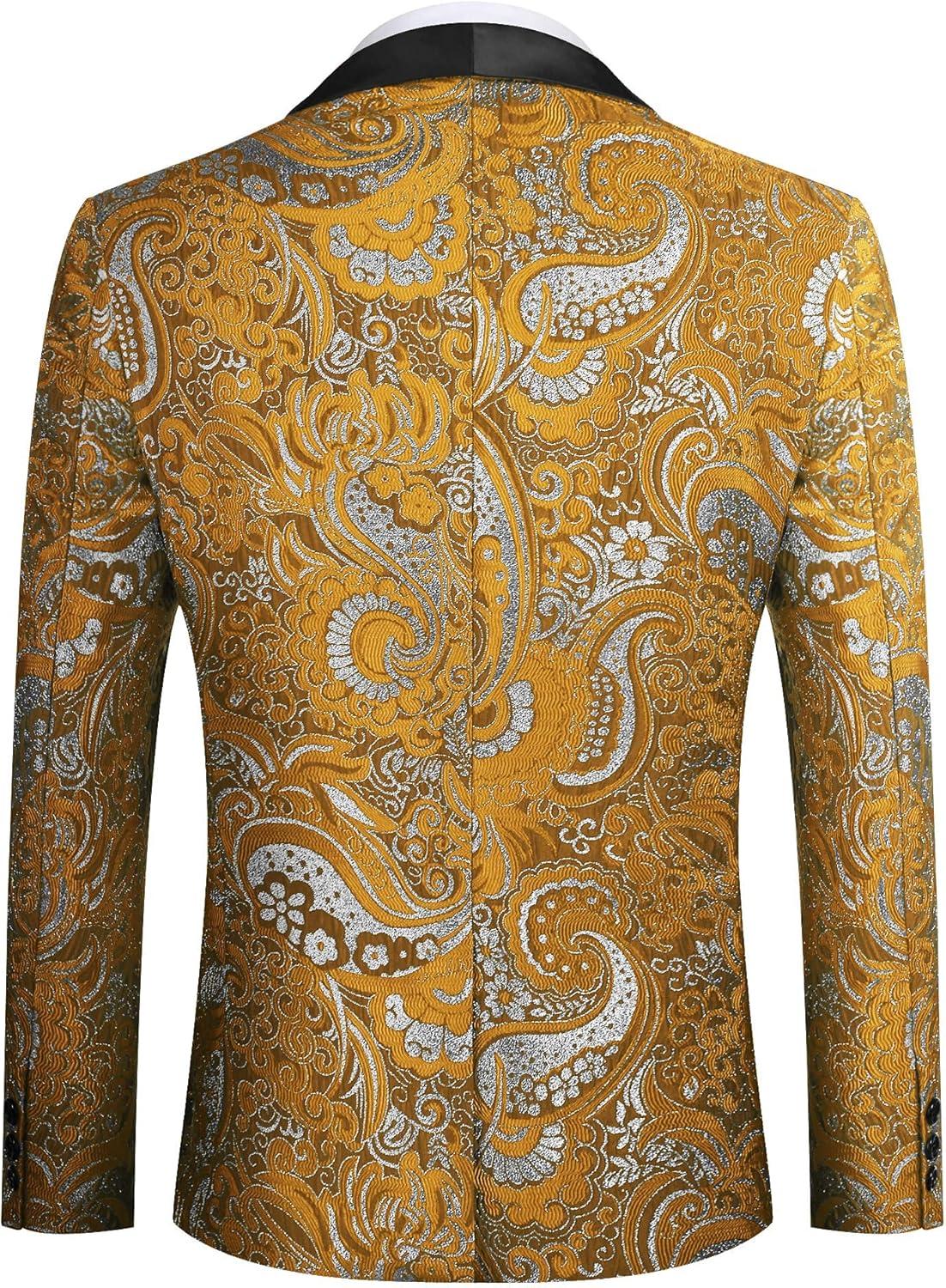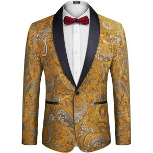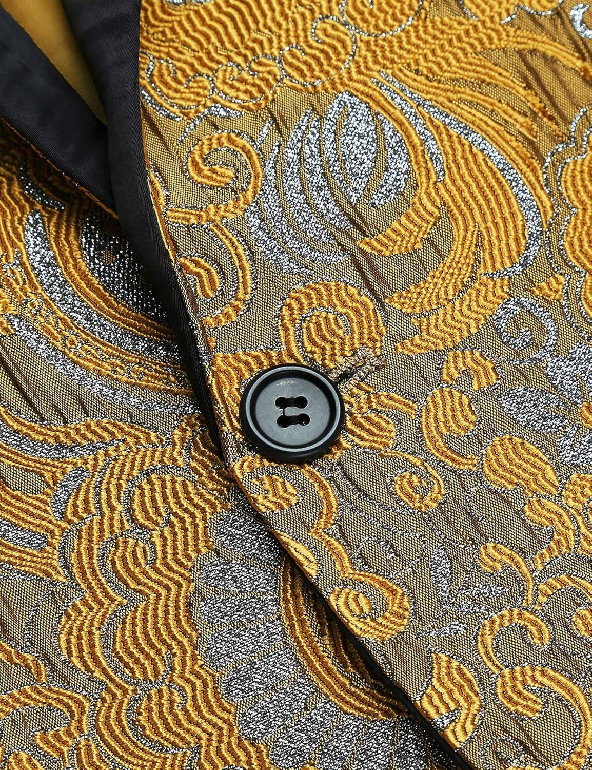 COOFANDY Men’s Floral Tuxedo Jacket Luxury Embroidered Wedding Blazer Dress Suit for Party Dinner(Golden Yellow)