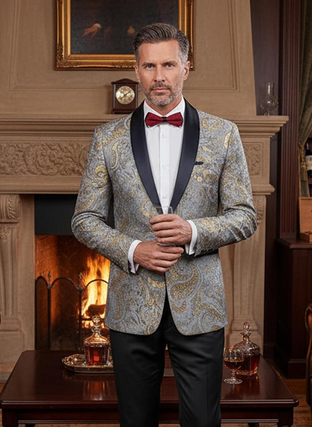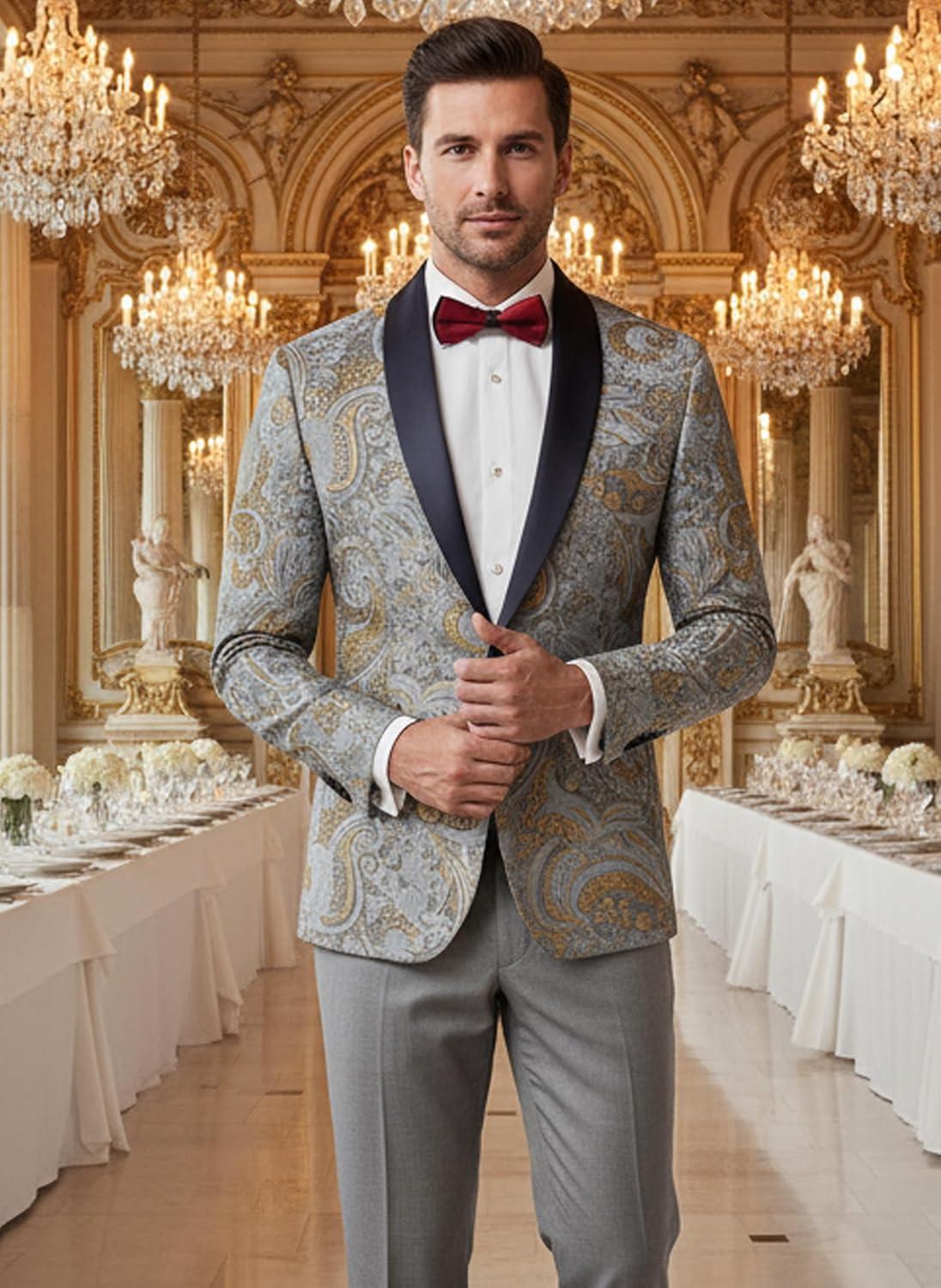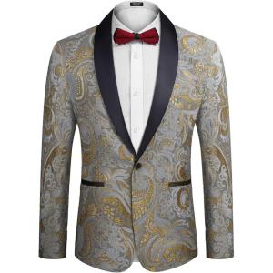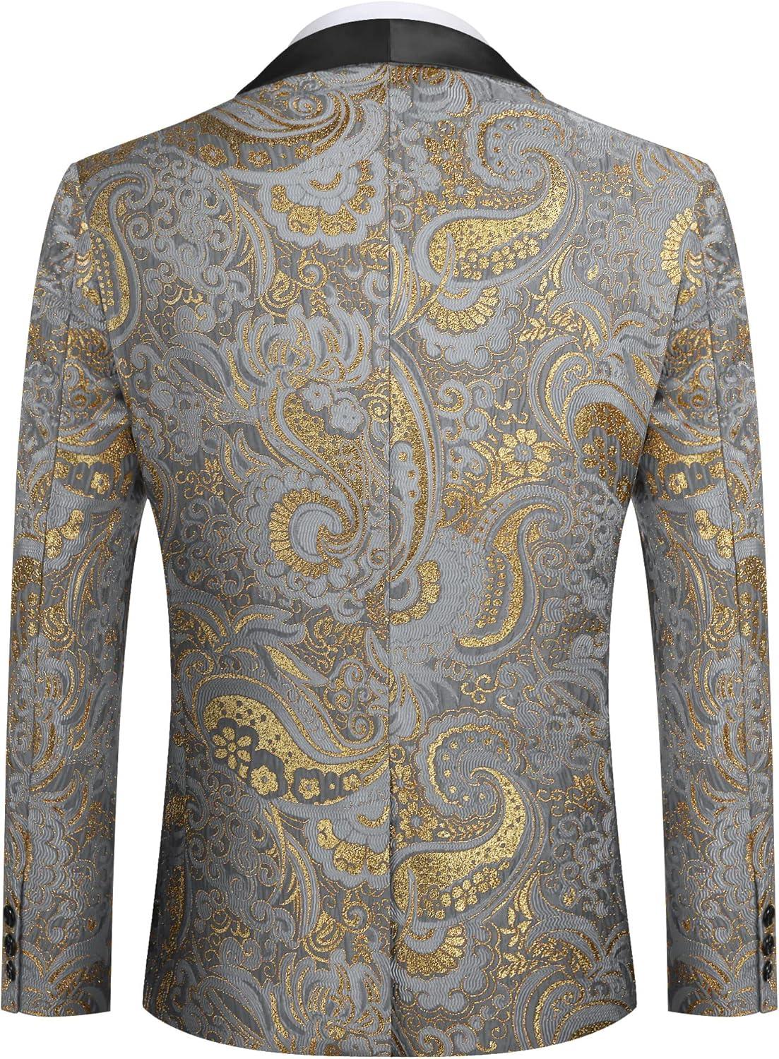 COOFANDY Men’s Floral Tuxedo Jacket Luxury Embroidered Wedding Blazer Dress Suit for Party Dinner(Grey)