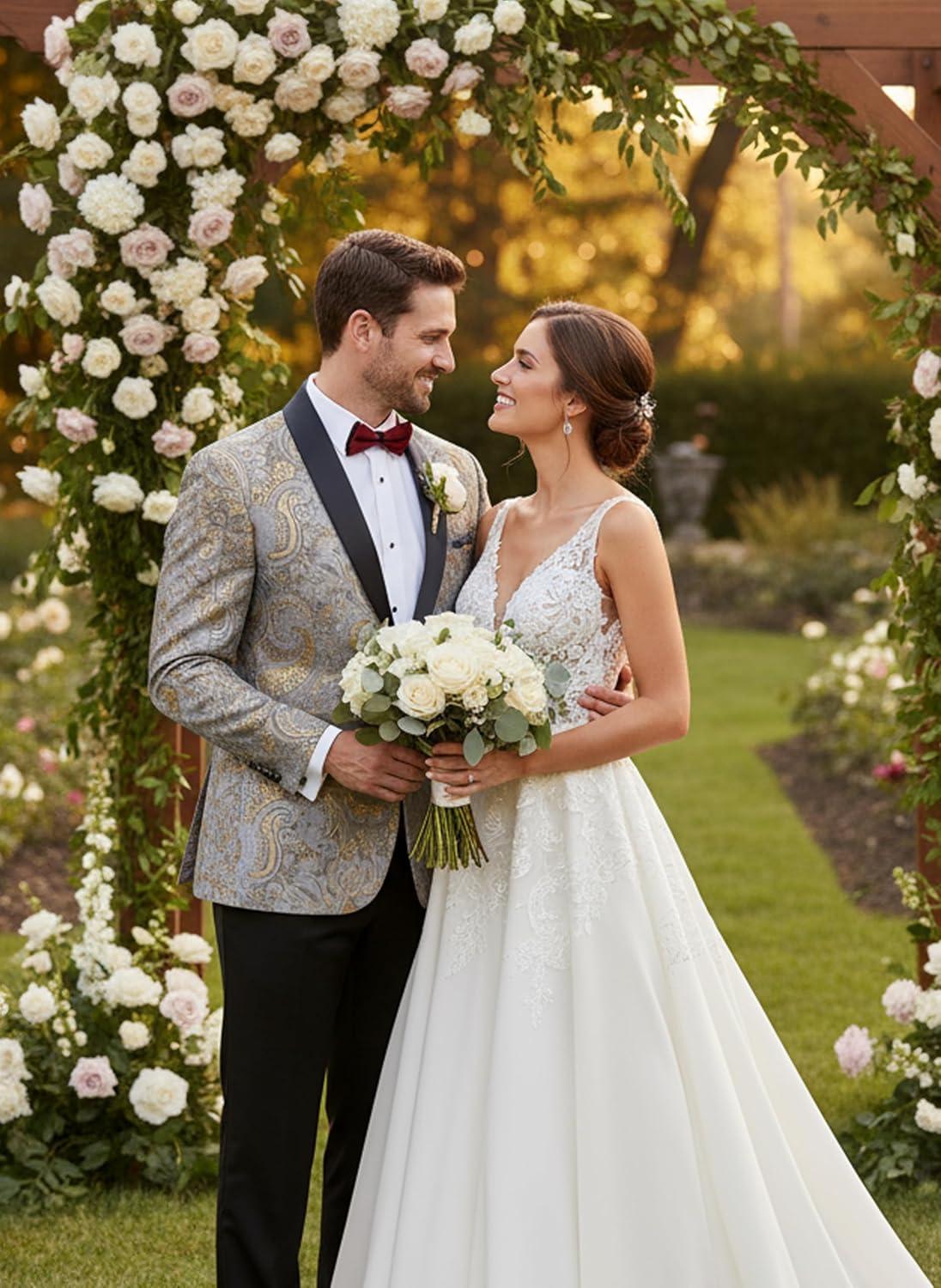 COOFANDY Men’s Floral Tuxedo Jacket Luxury Embroidered Stylish Suit Blazer Jacket for Wedding Party Dinner(Luxury-silver)