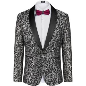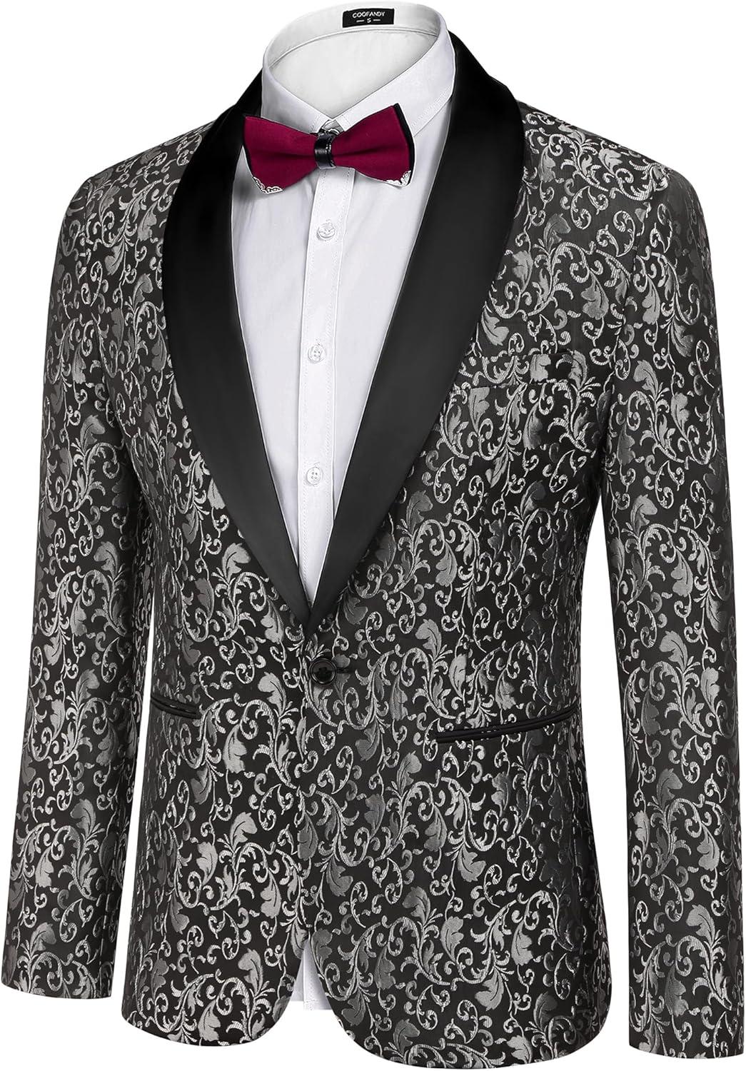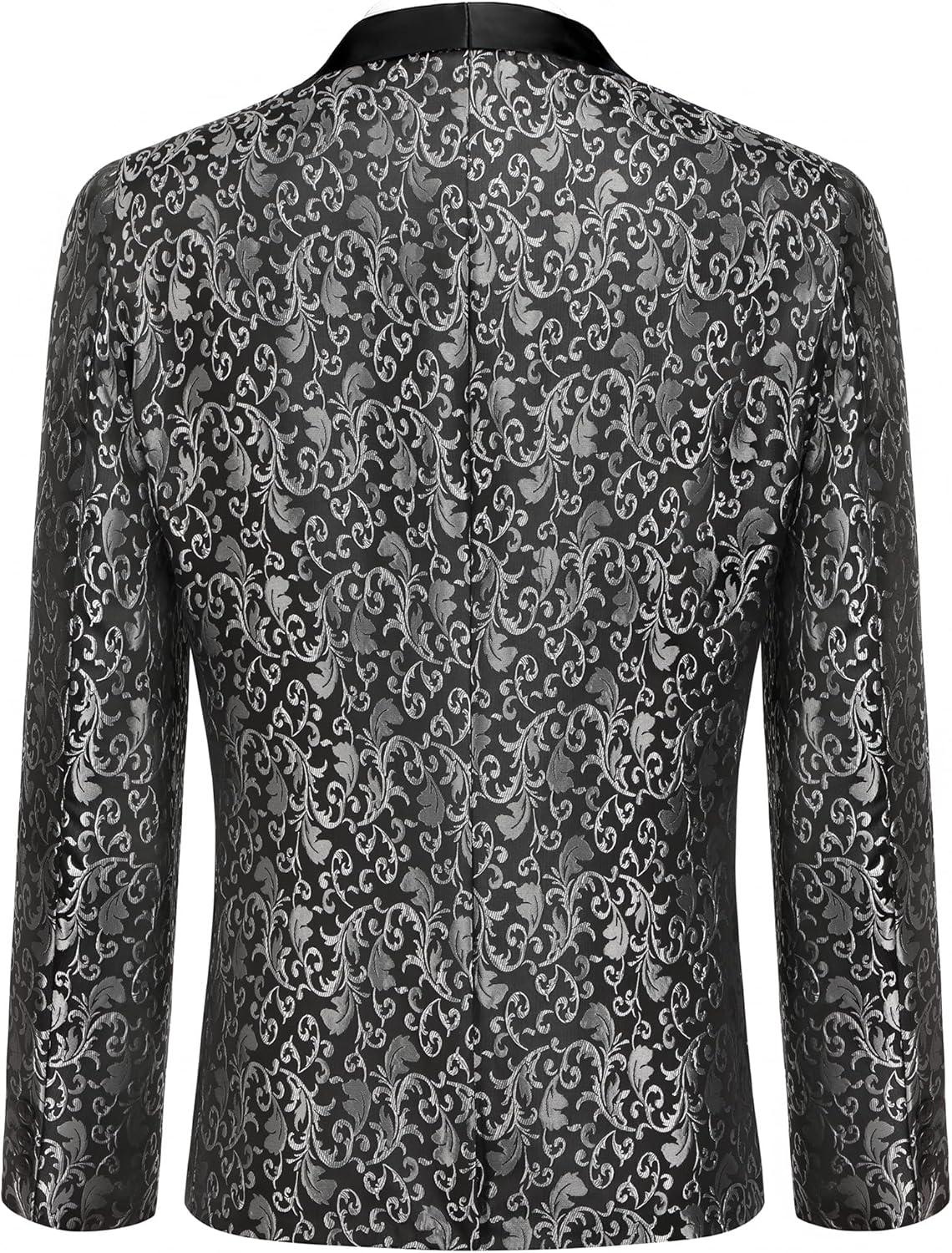 COOFANDY Men’s Floral Tuxedo Jacket Luxury Embroidered Wedding Blazer Dress Suit for Party Dinner(Grey Black)