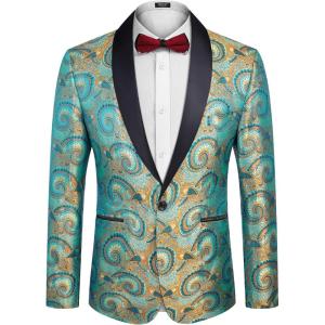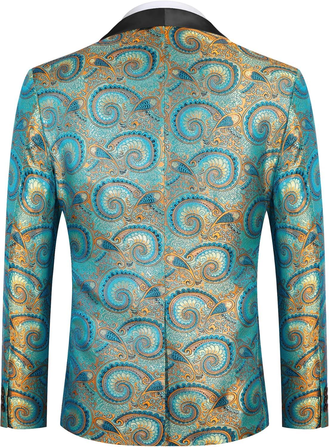 COOFANDY Men’s Floral Tuxedo Jacket Luxury Embroidered Wedding Blazer Dress Suit for Party Dinner(Lake Blue)