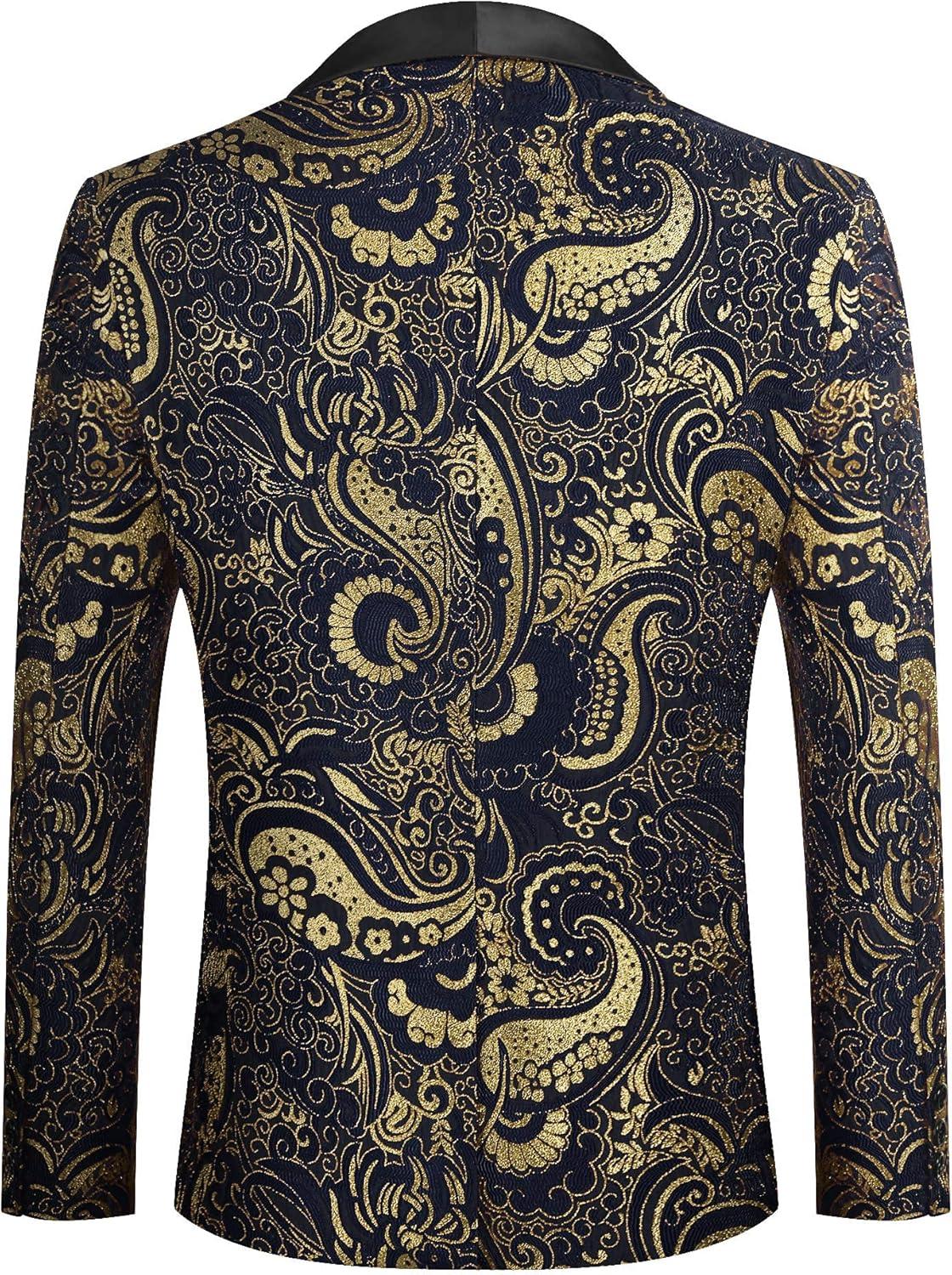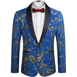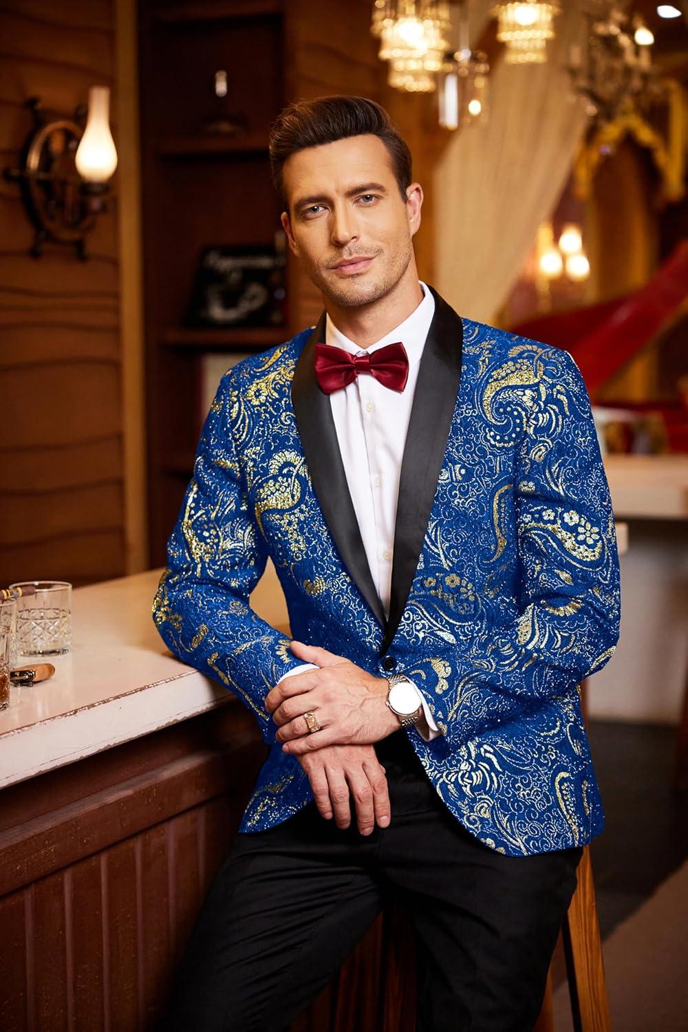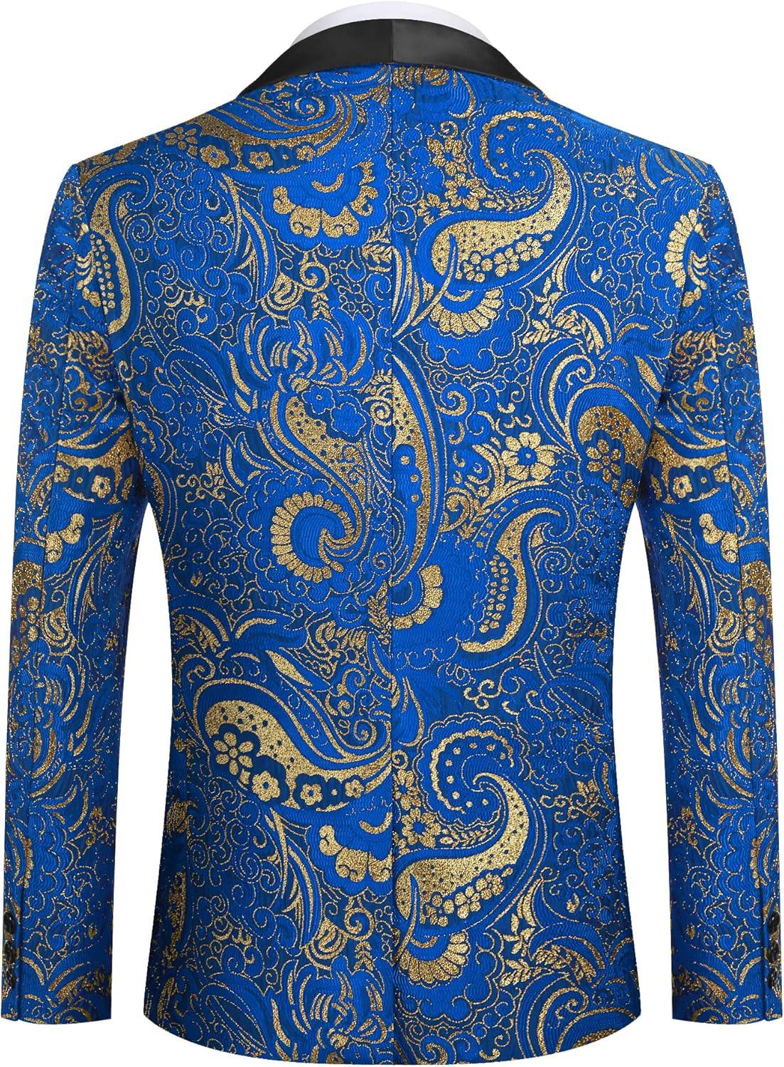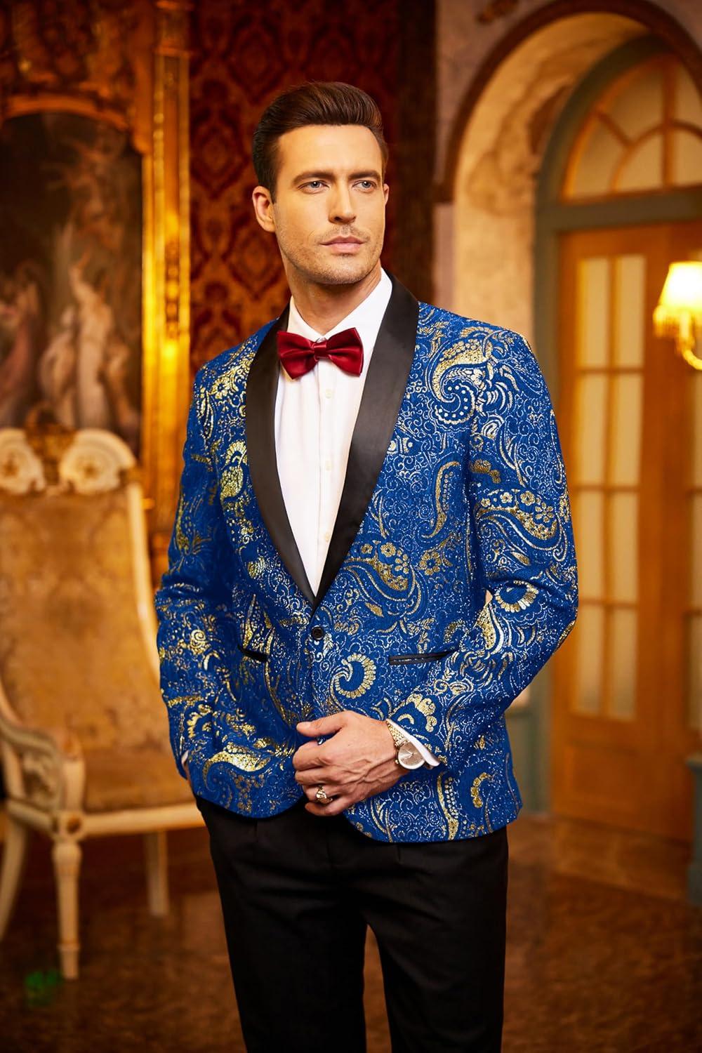 COOFANDY Men’s Floral Tuxedo Jacket Luxury Embroidered Wedding Blazer Dress Suit for Party Dinner(Royal Blue)
