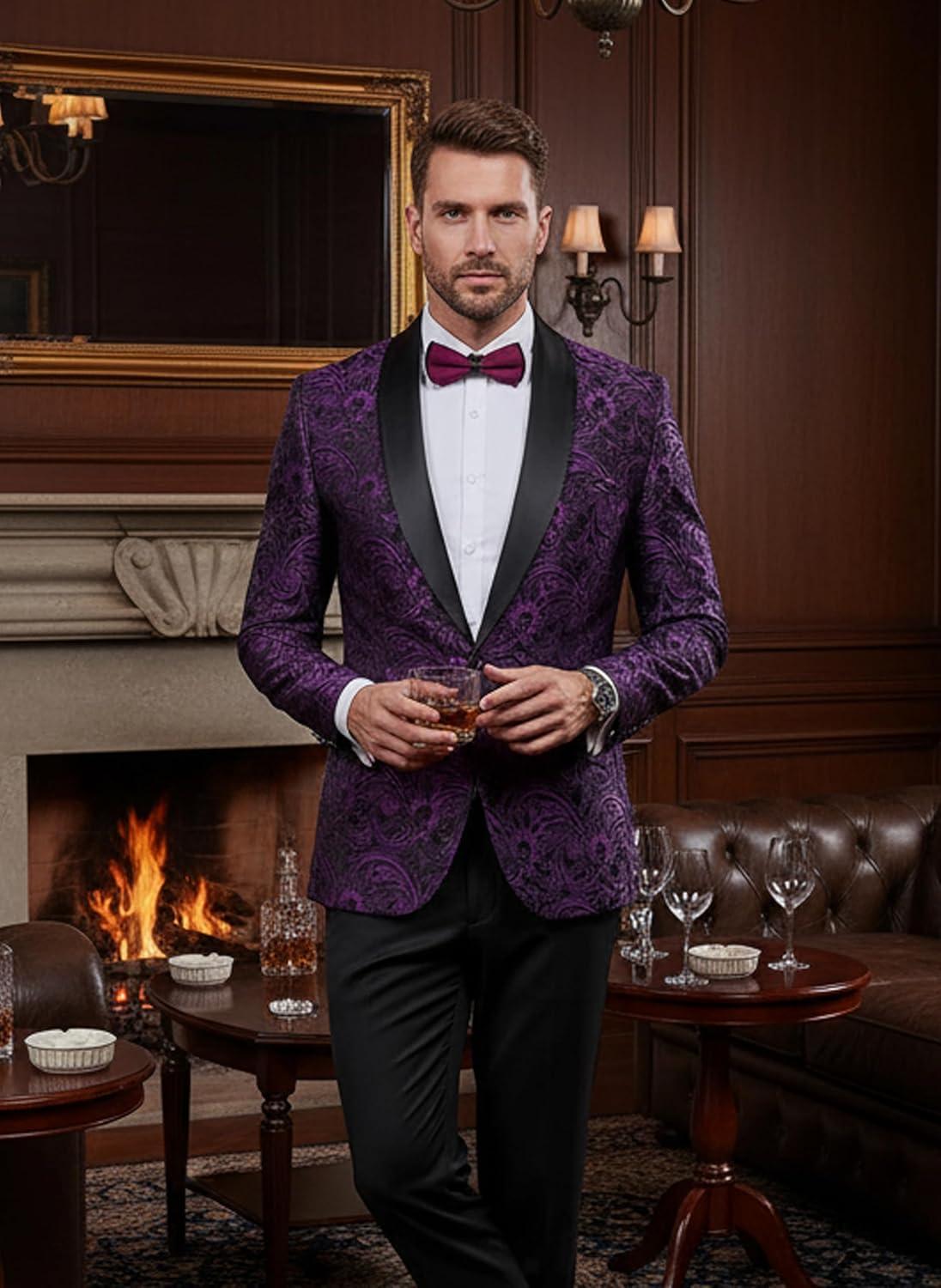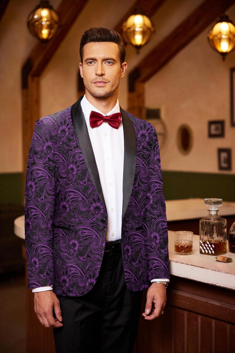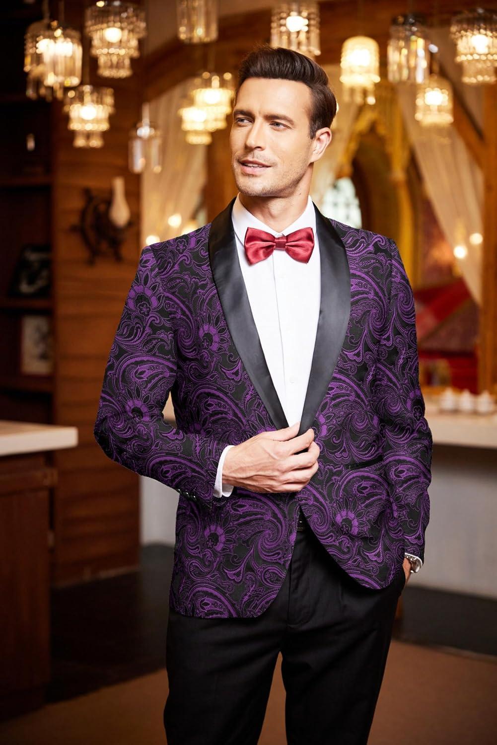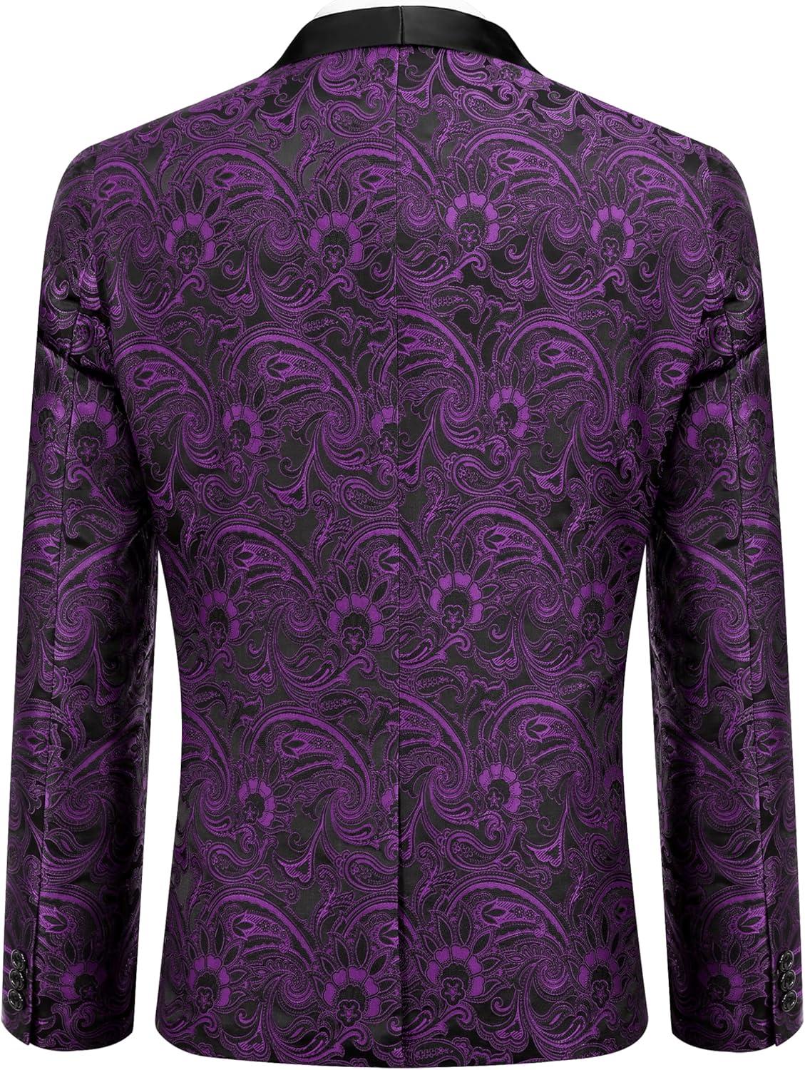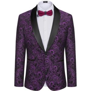 COOFANDY Men’s Floral Tuxedo Jacket Luxury Embroidered Wedding Blazer Dress Suit for Party Dinner(Purple)