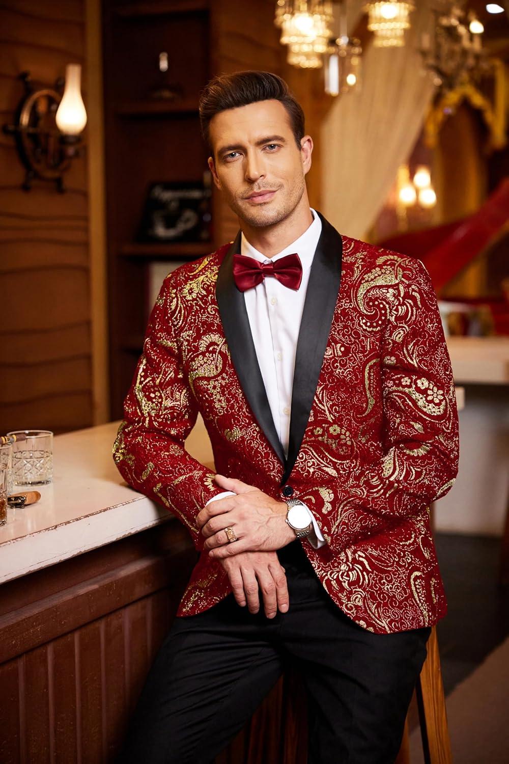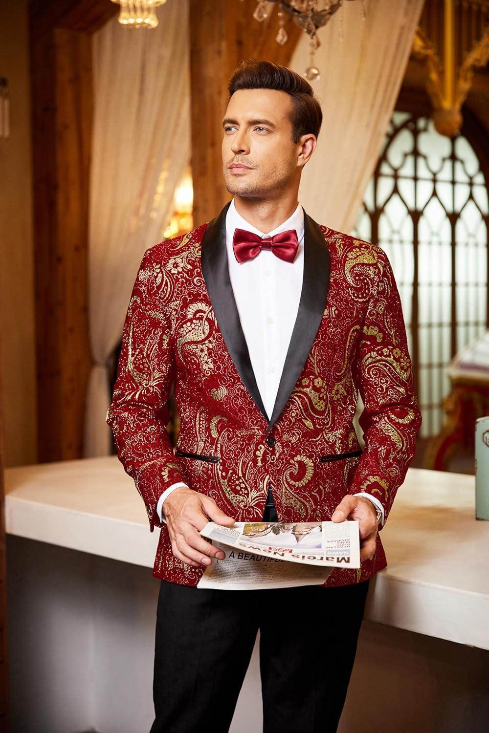 COOFANDY Men’s Floral Tuxedo Jacket Luxury Embroidered Wedding Blazer Dress Suit for Party Dinner(Wine Red)