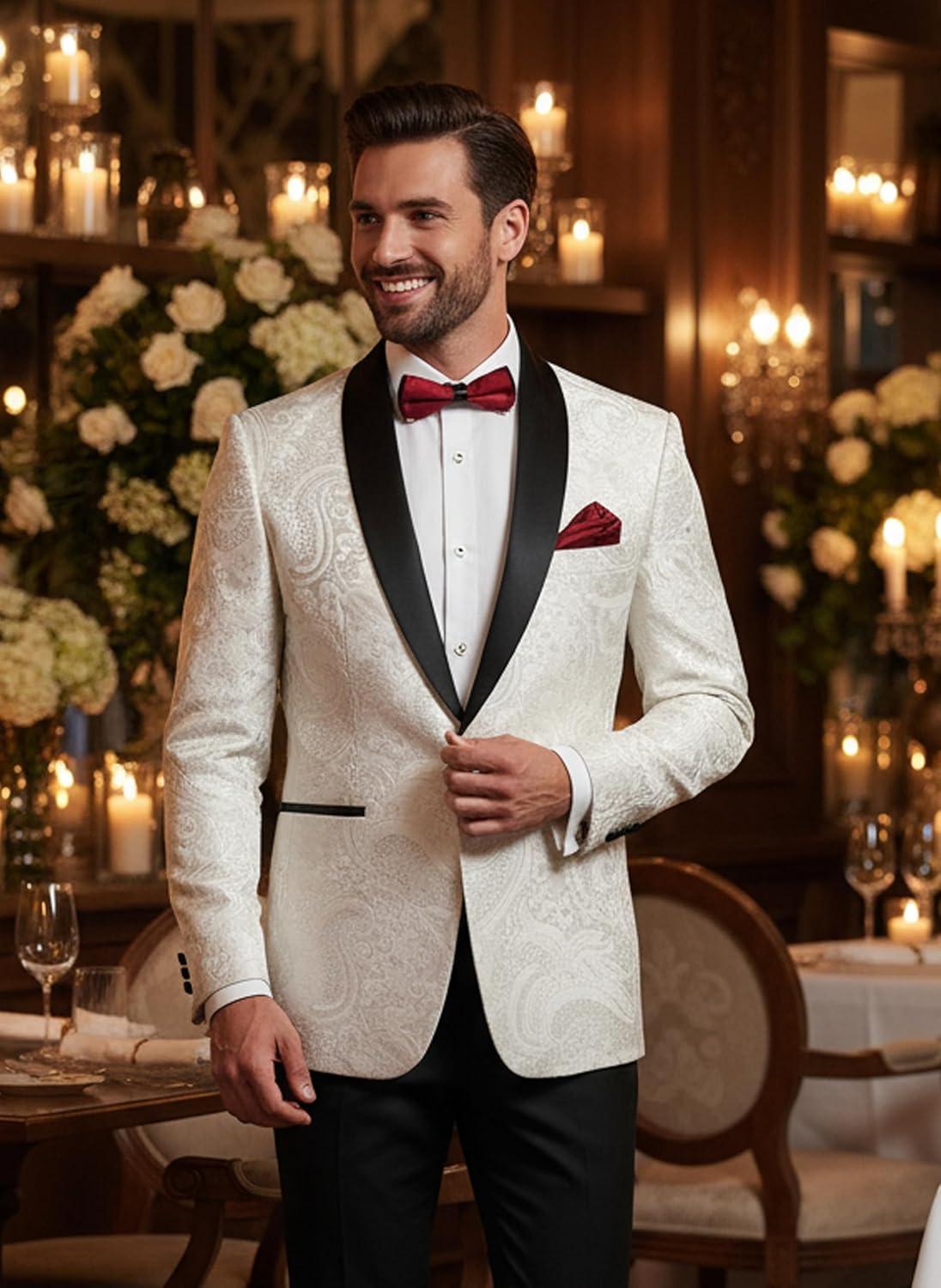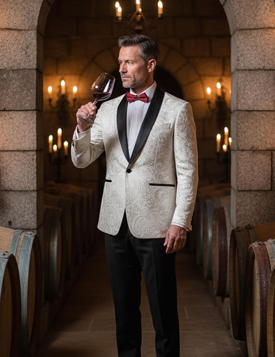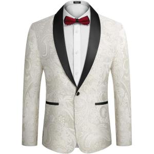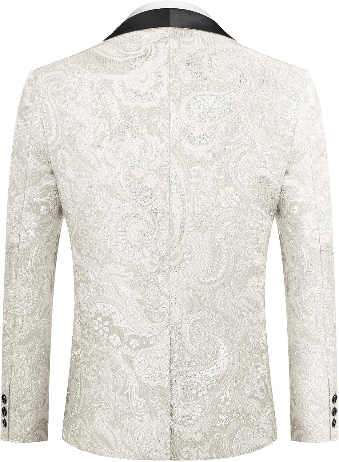 COOFANDY Men’s Floral Tuxedo Jacket Luxury Embroidered Wedding Blazer Dress Suit for Party Dinner(White)