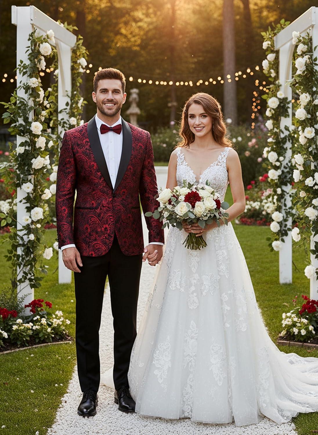 COOFANDY Men’s Floral Tuxedo Jacket Luxury Embroidered Wedding Blazer Dress Suit for Party Dinner(Rose Red)