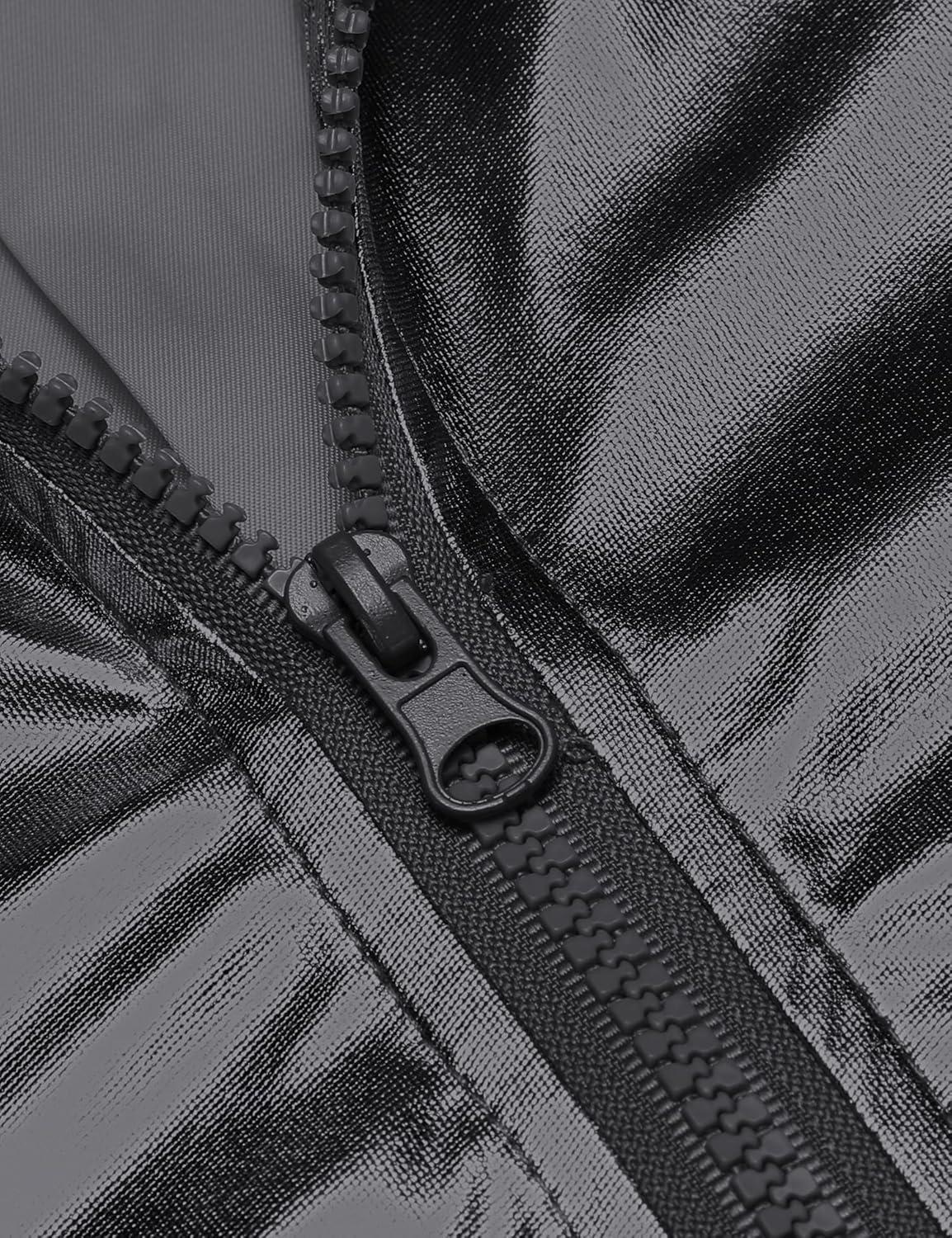 COOFANDY Men’s Metallic Jacket 70s Disco Dance Party Costume Shiny Varsity Zipper Baseball Bomber Jacket(Luxurious Grey)