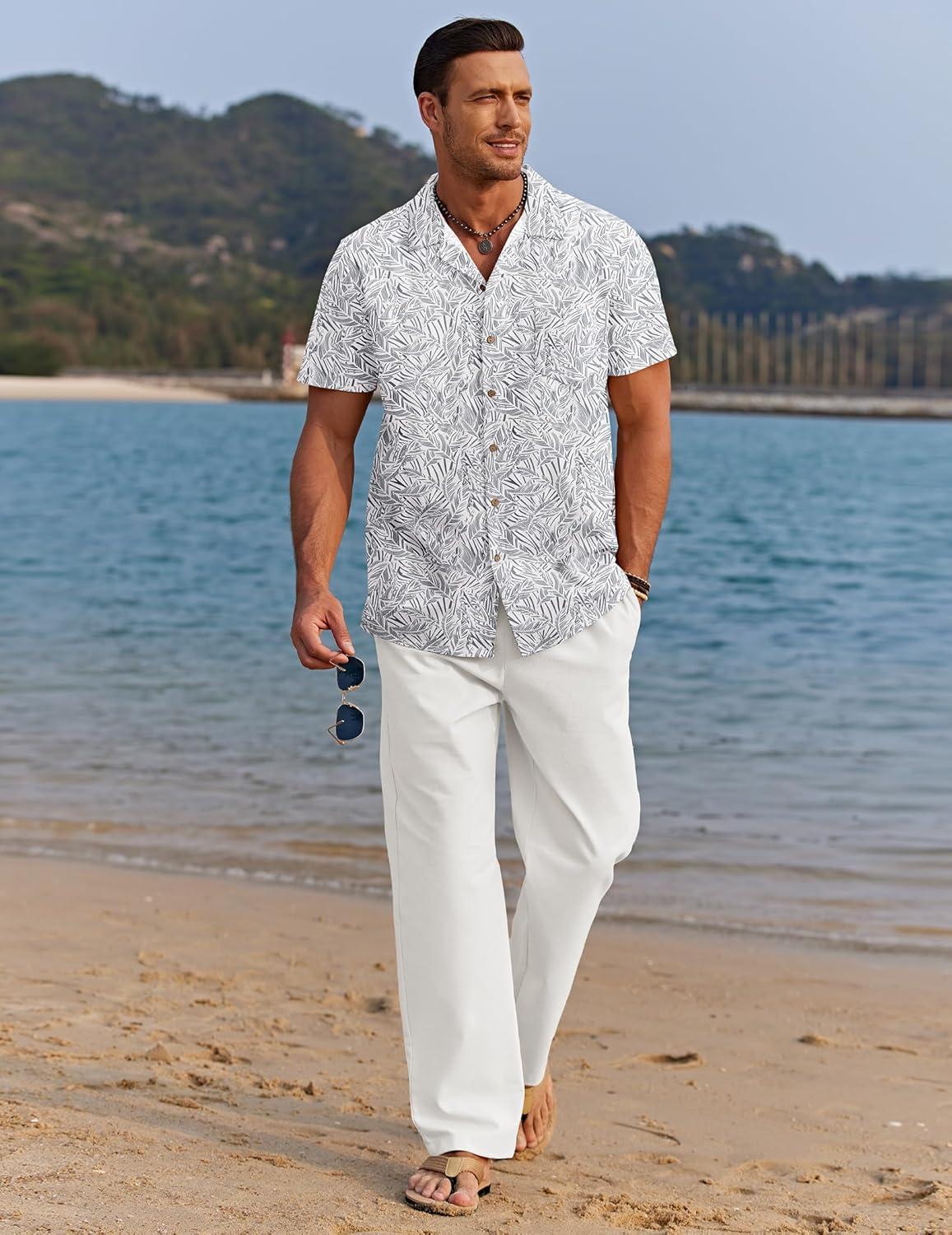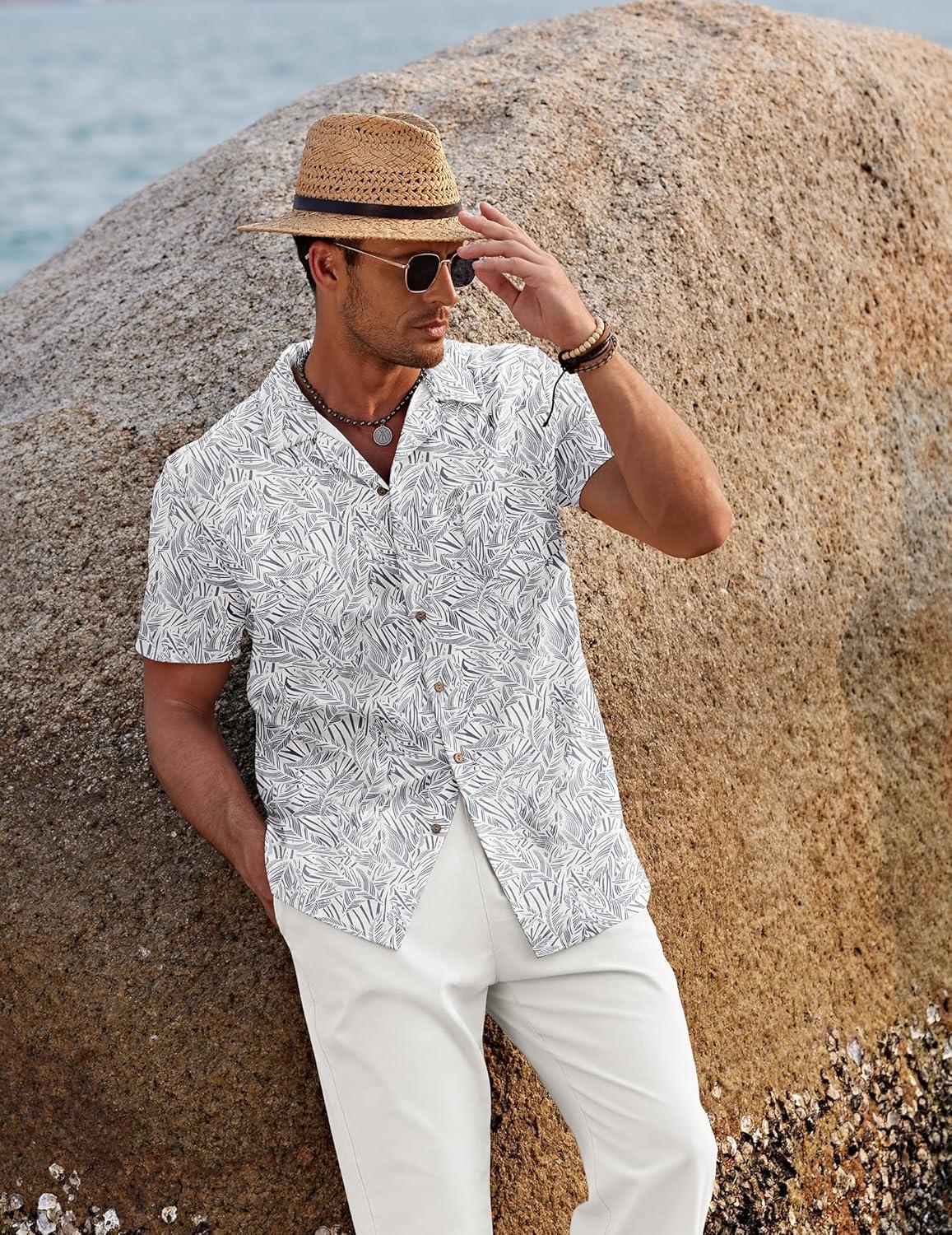 COOFANDY Men Hawaiian Floral Shirts Loose Fit Tropical Holiday Linen Beach Shirts