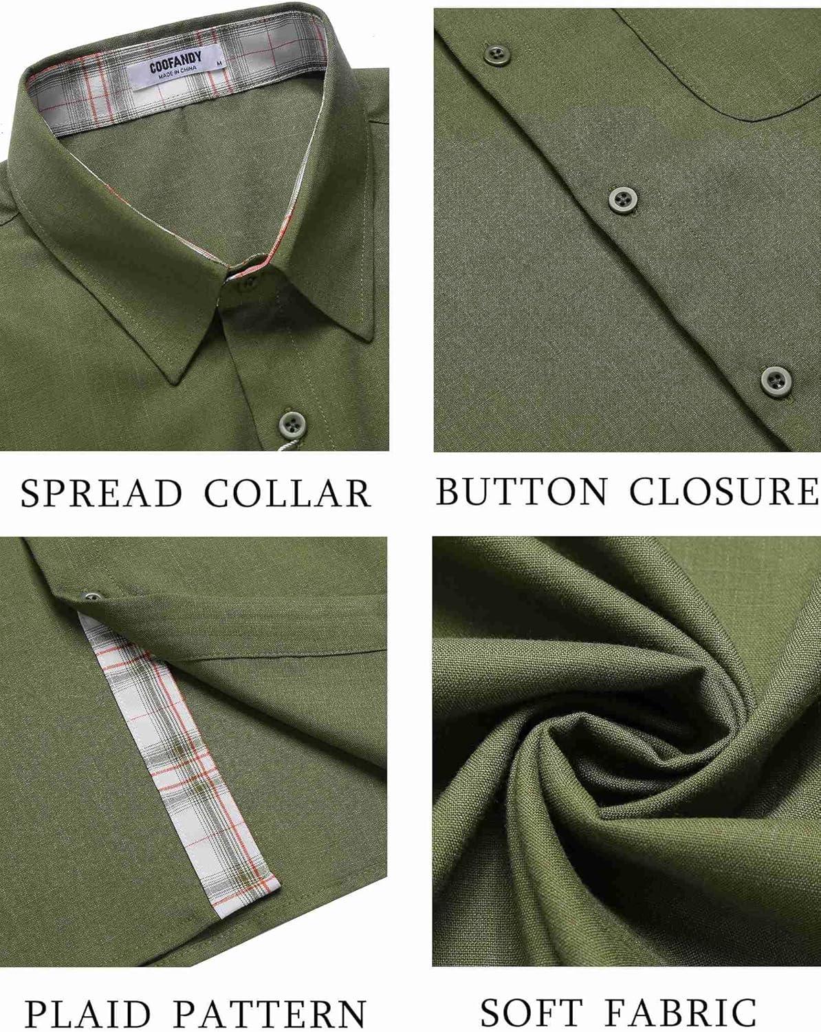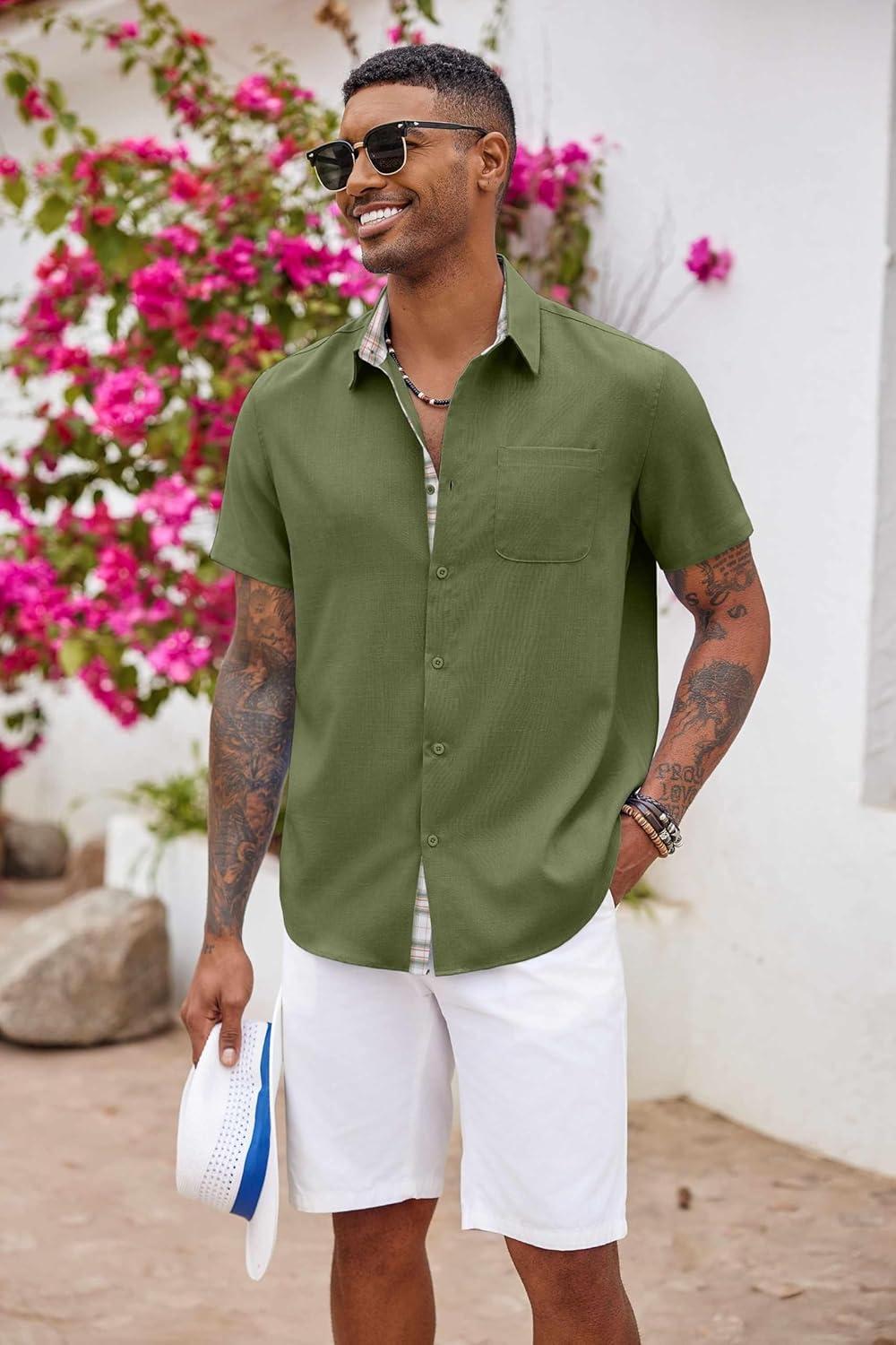 COOFANDY Men’s Button Down Shirts Short Sleeve Casual Shirts Summer Beach Shirts Vacation Wedding Shirts with Pocket(Army Green)